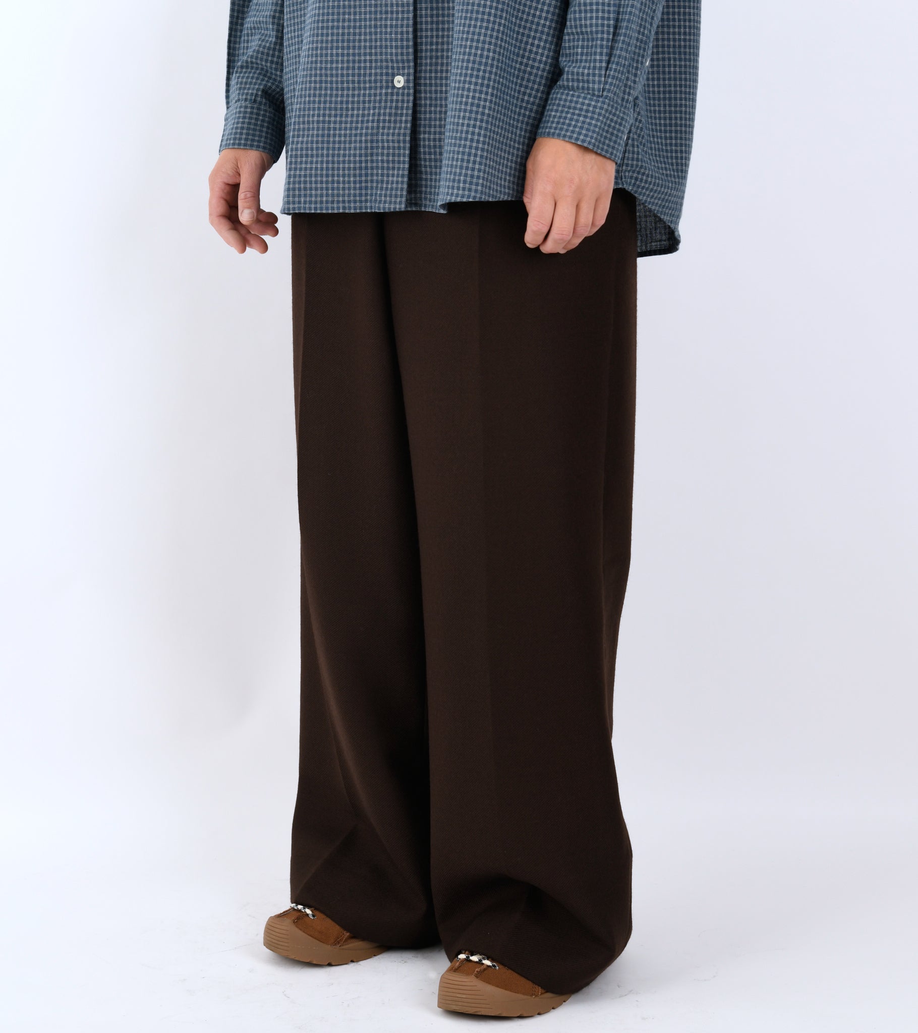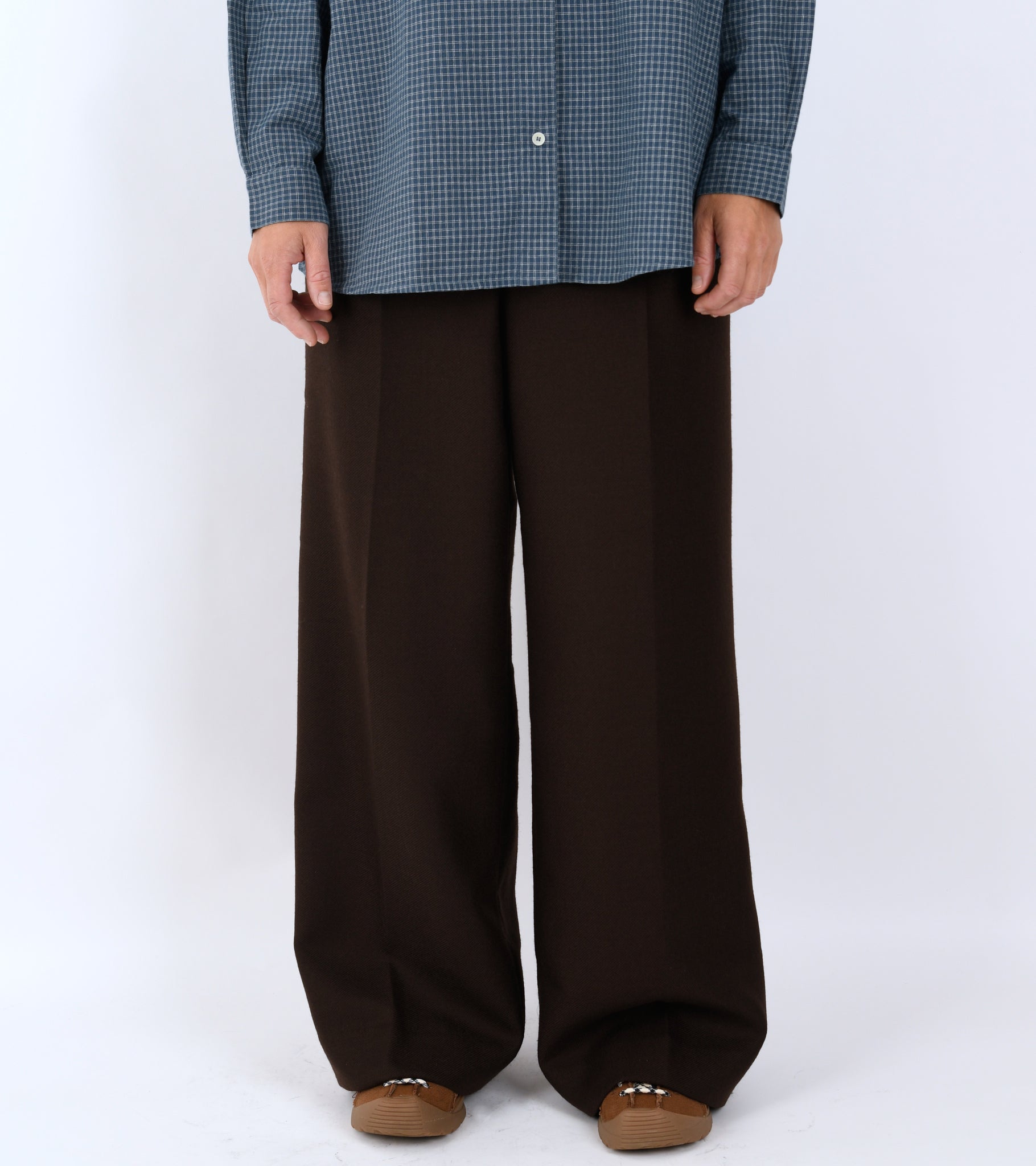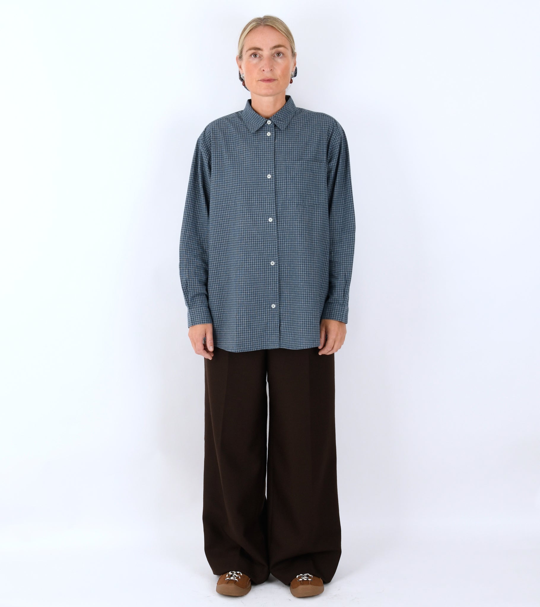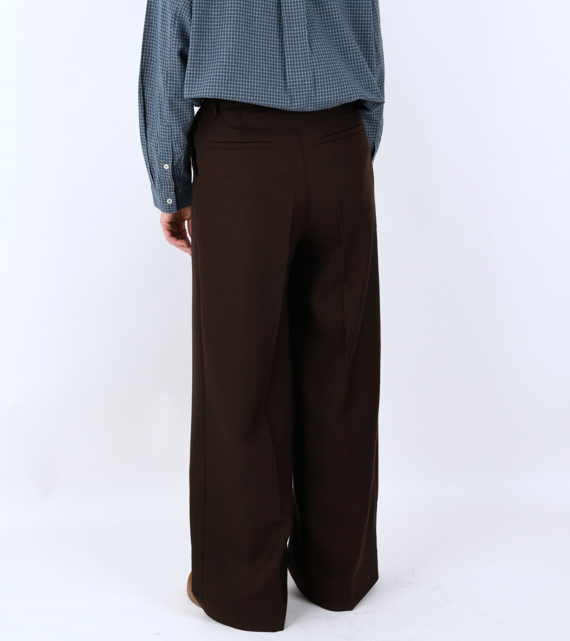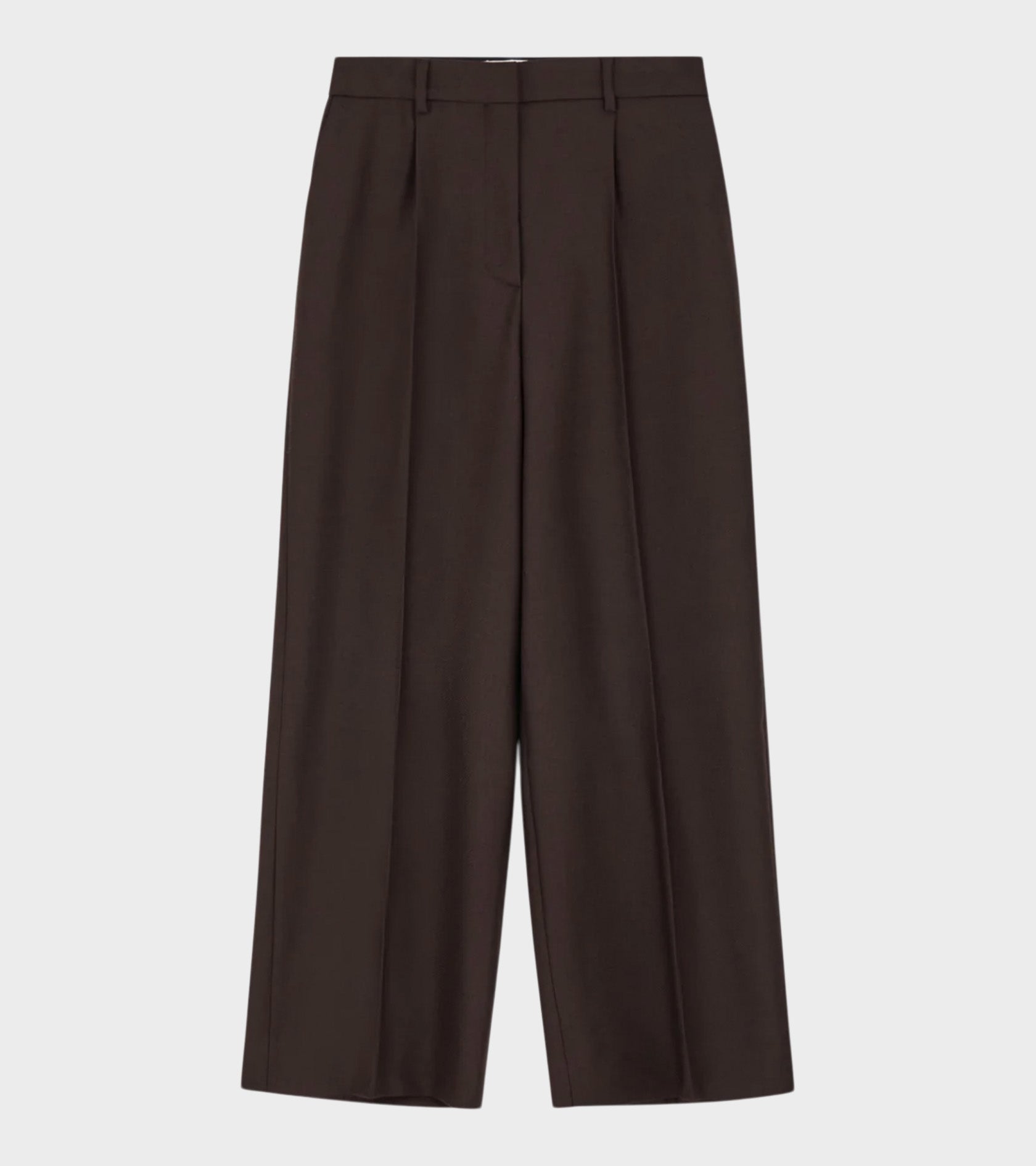 Brune uldbukser fra Skall Studio. Emmerson Trousers er et par herreinspirerede bukser med vidde i benene. Bukserne har bæltestropper, pressefolder, en skrålomme i hver side samt to stiklommer bagpå.