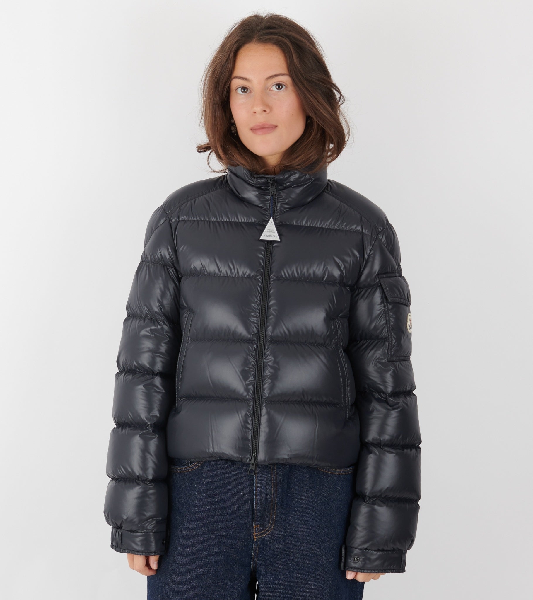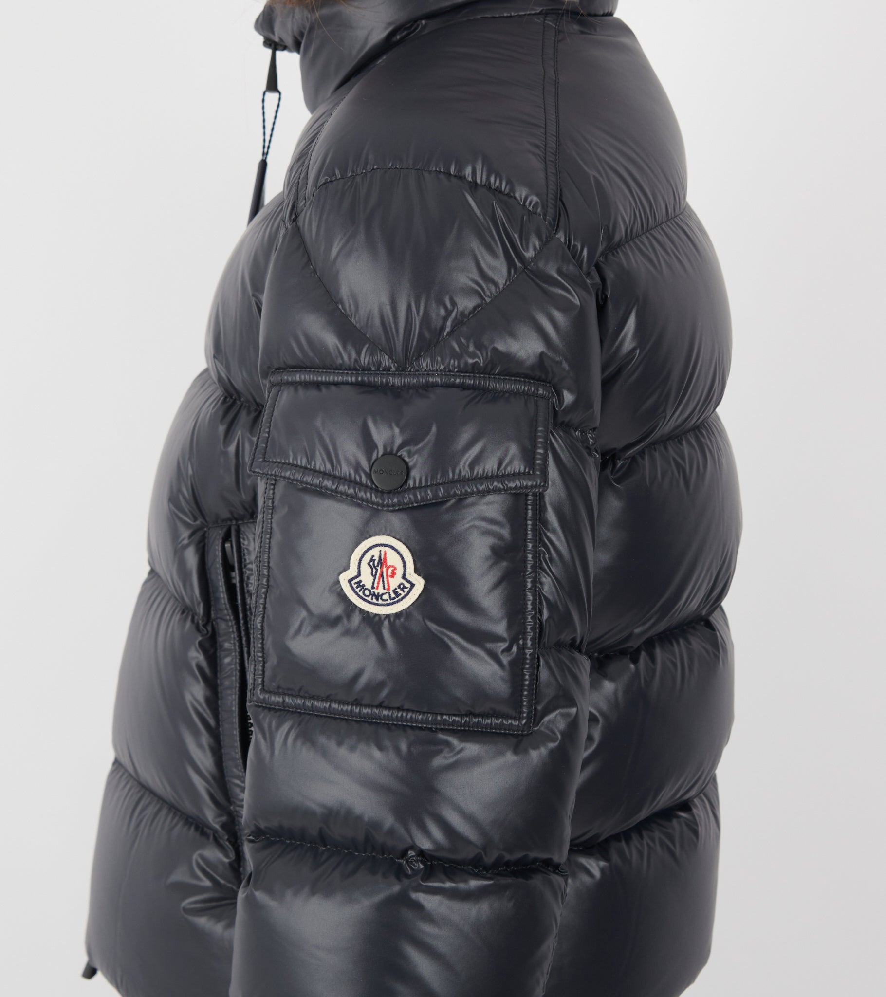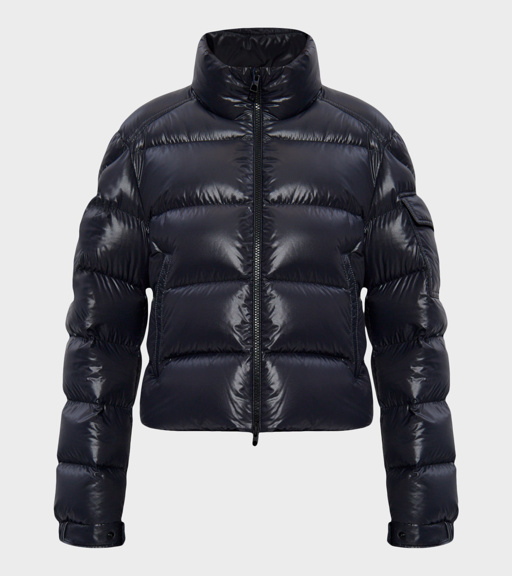 Sort dunjakke fra Moncler. Petra Down Jacket Black er fremstillet i en 'super laqué' nylonkvalitet og er foret med bløde dun og fjer. Jakken er vandafvisende og har en høj hals, en dobbeltgående lynlåslukning, en lynlåslomme i hver side og en lomme på venstre ærme - på lommen er det ikoniske logo i filt.