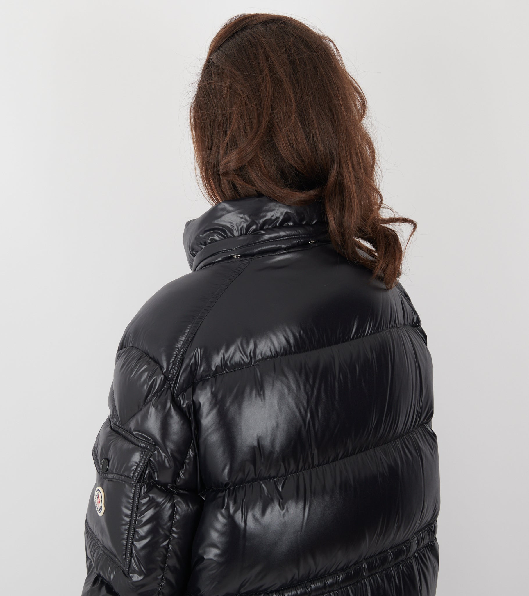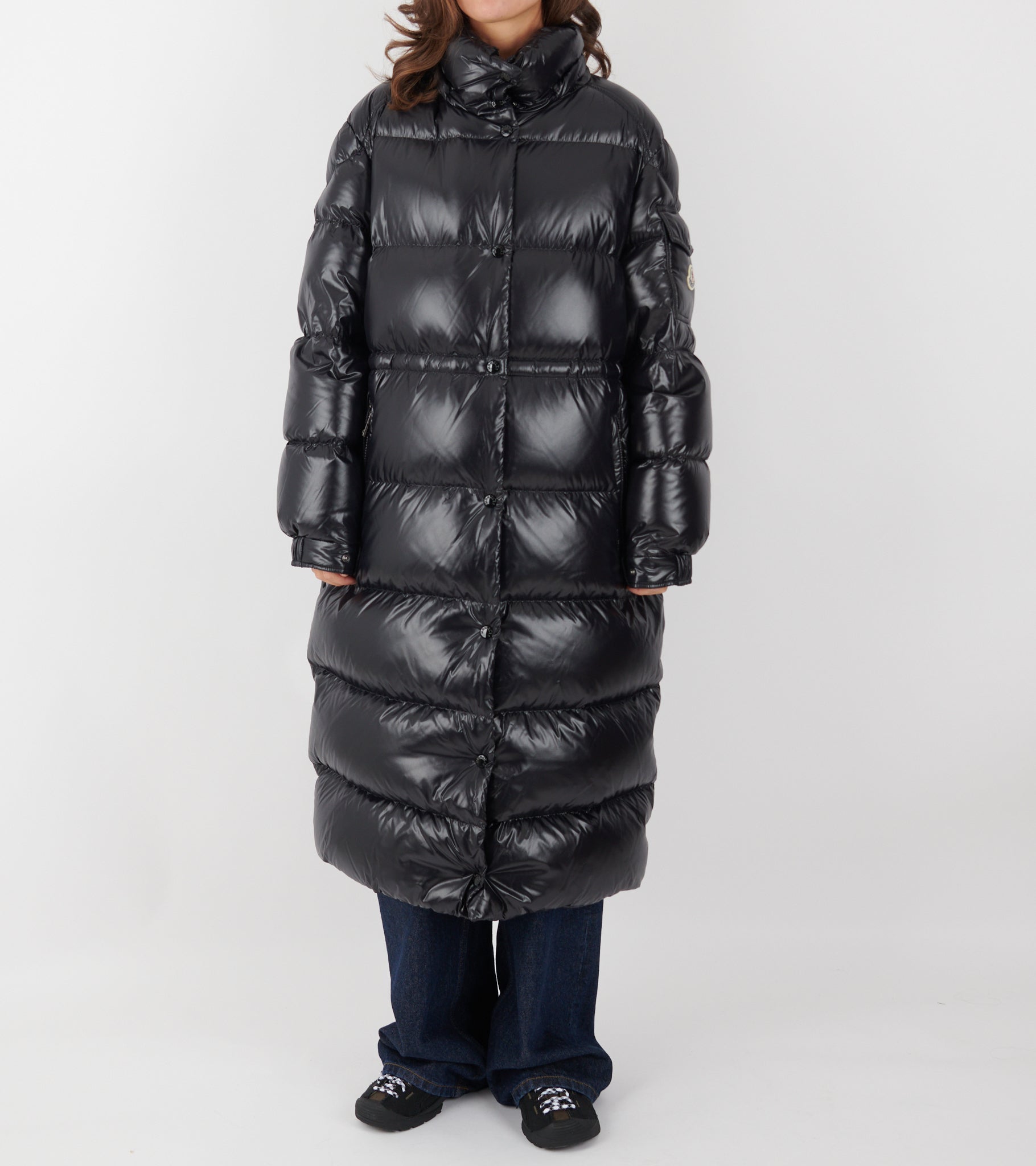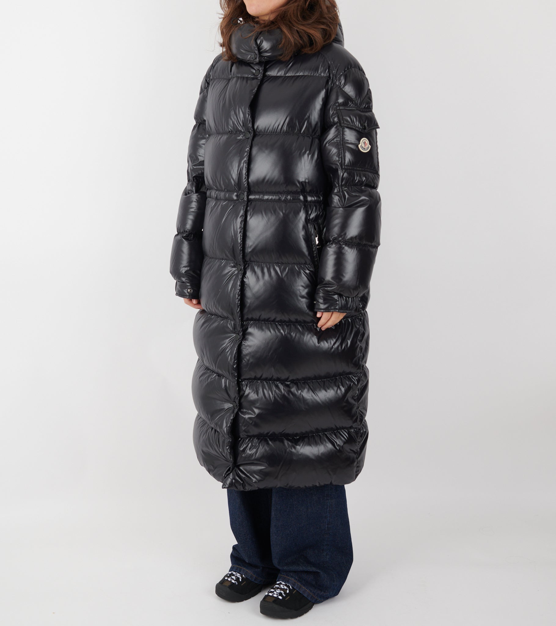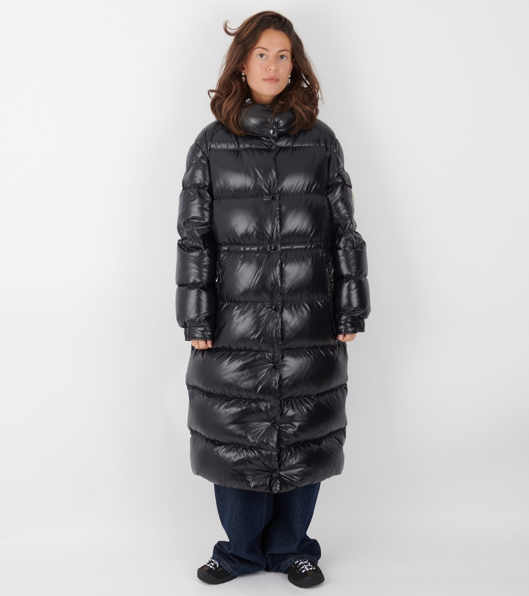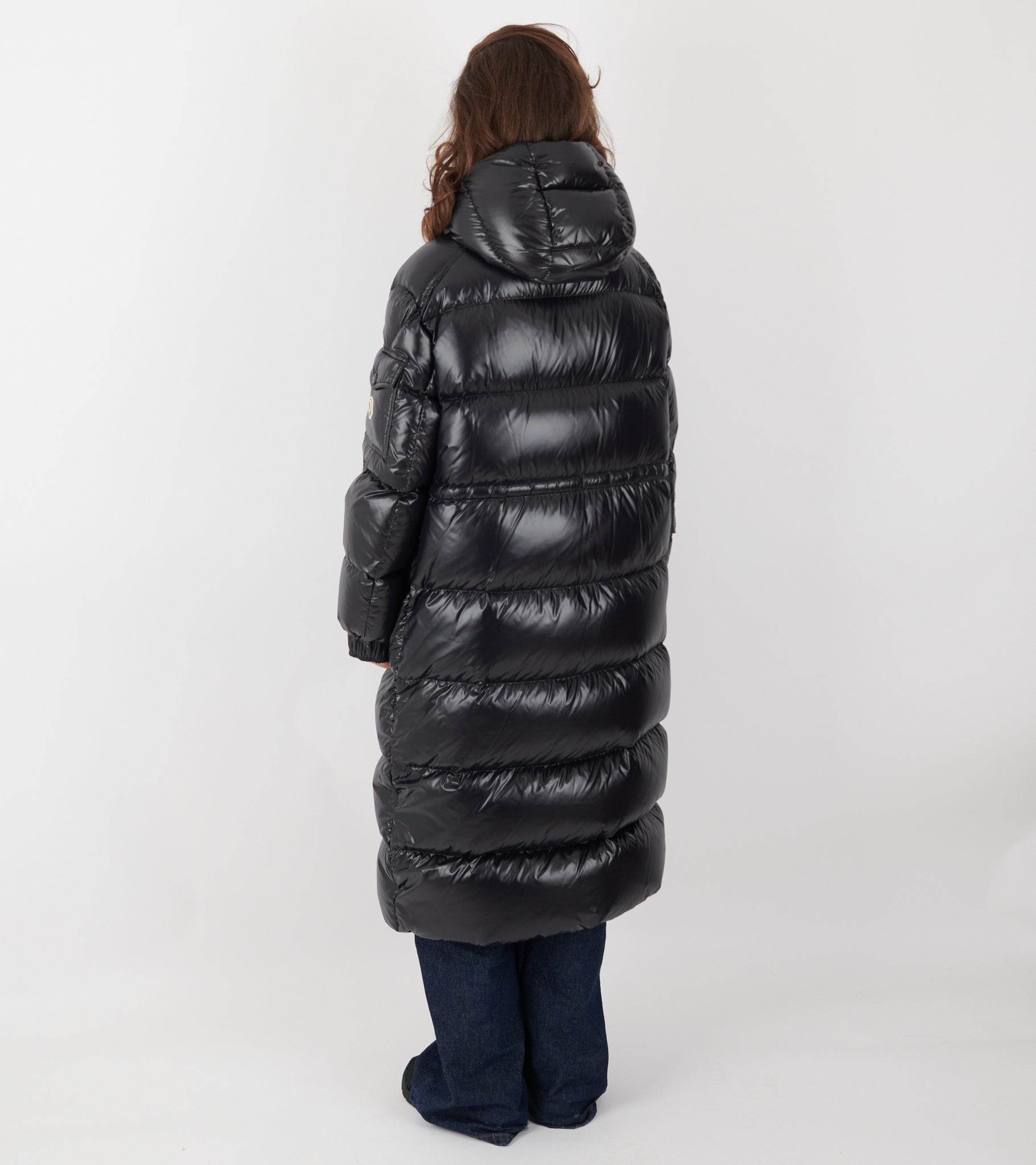 Lang sort dunjakke fra Moncler.