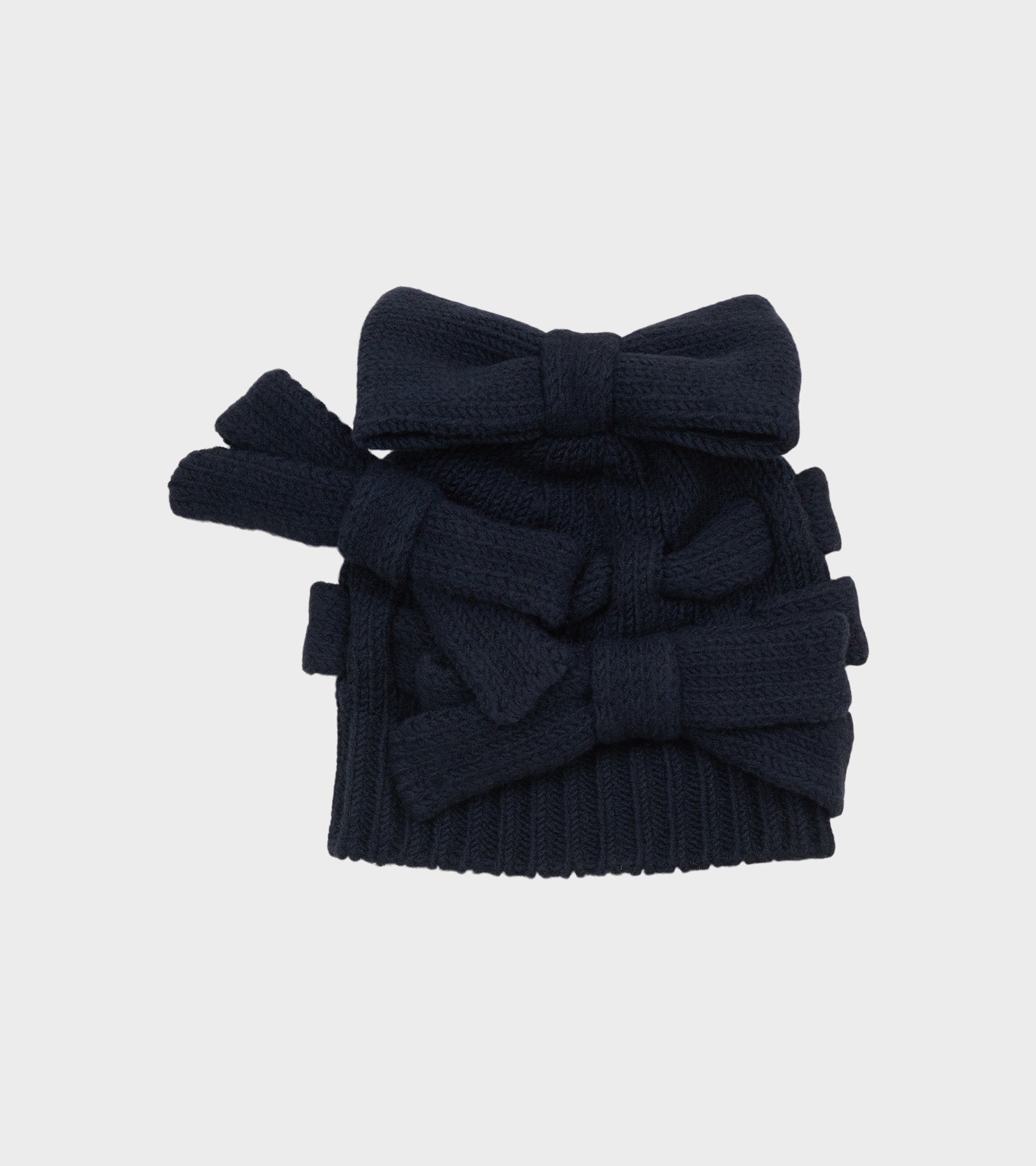 Blå strikhue i uld med sløjfe detaljer fra Comme des Garcons Girl.