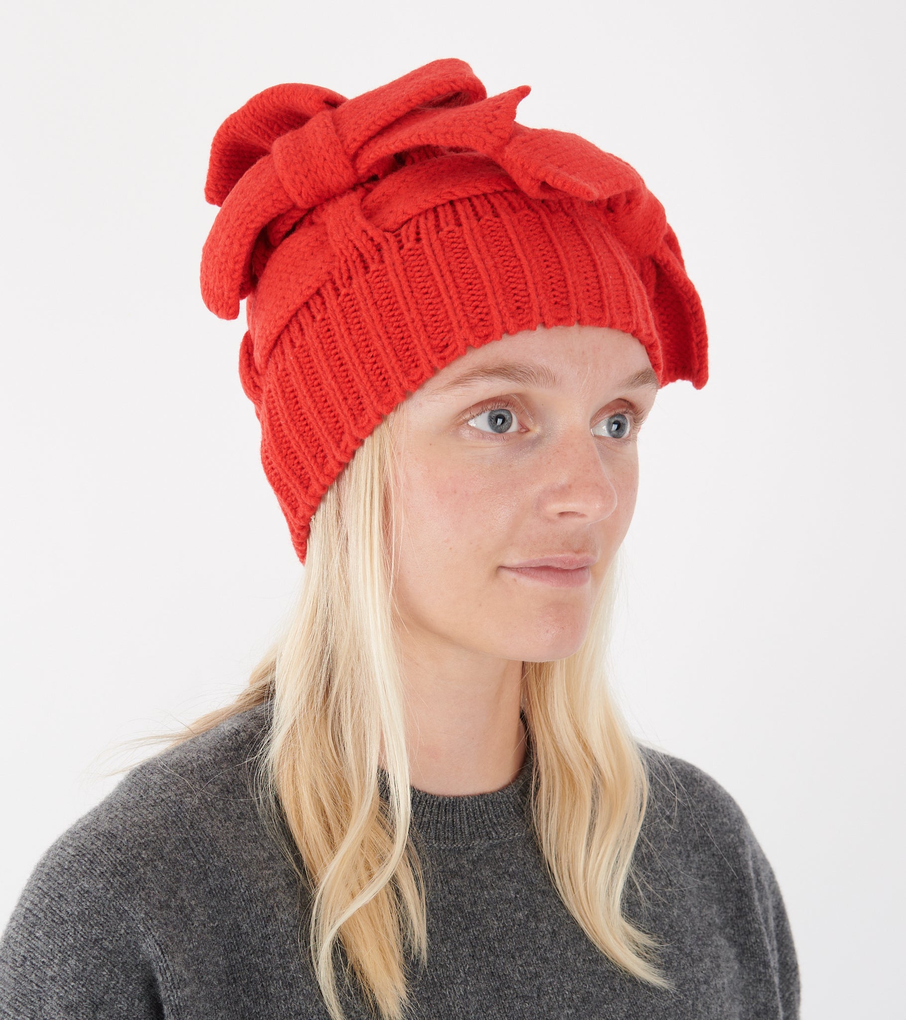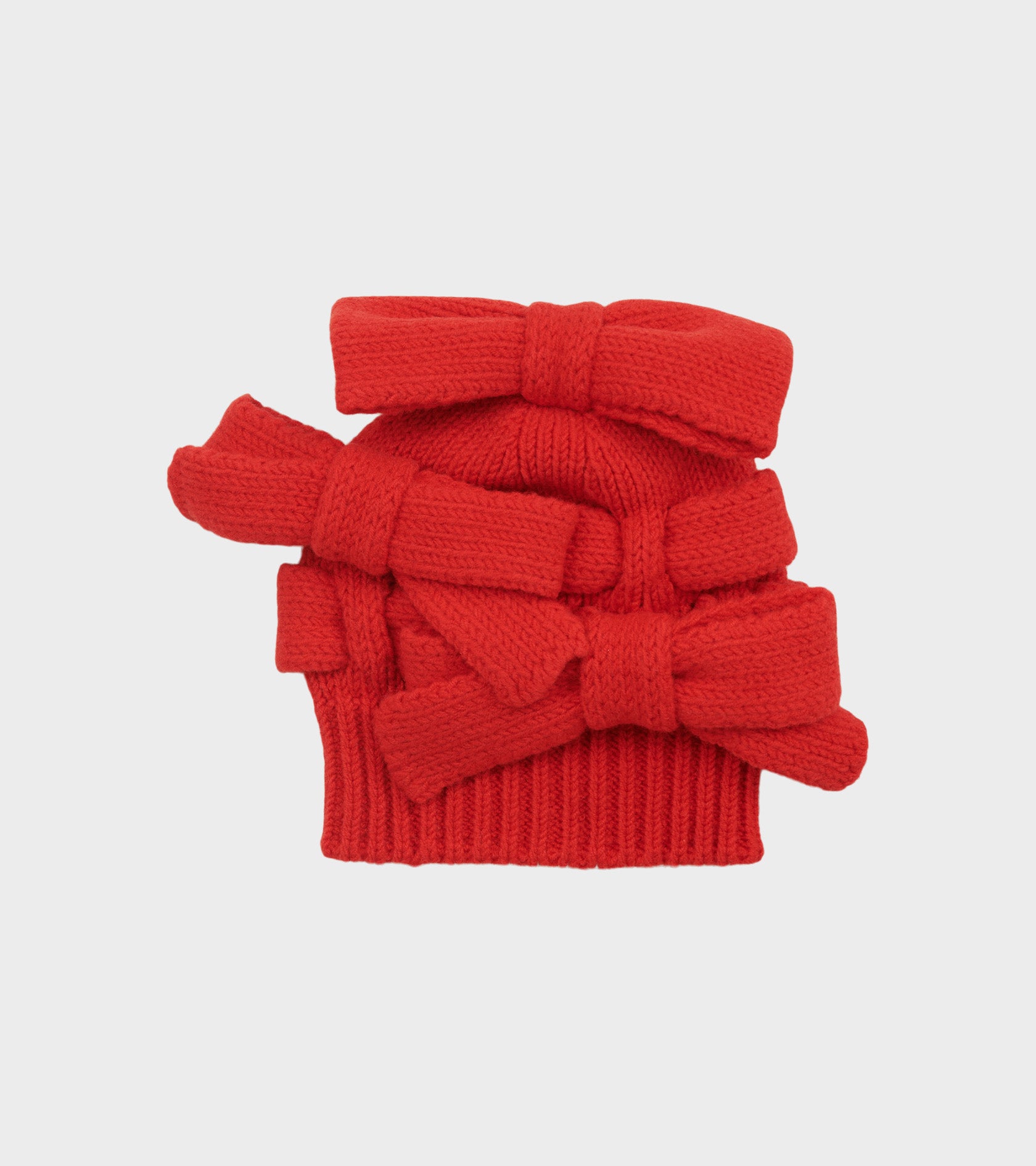 Rød strikhue i uld med sløjfe detaljer fra Comme des Garcons Girl.
