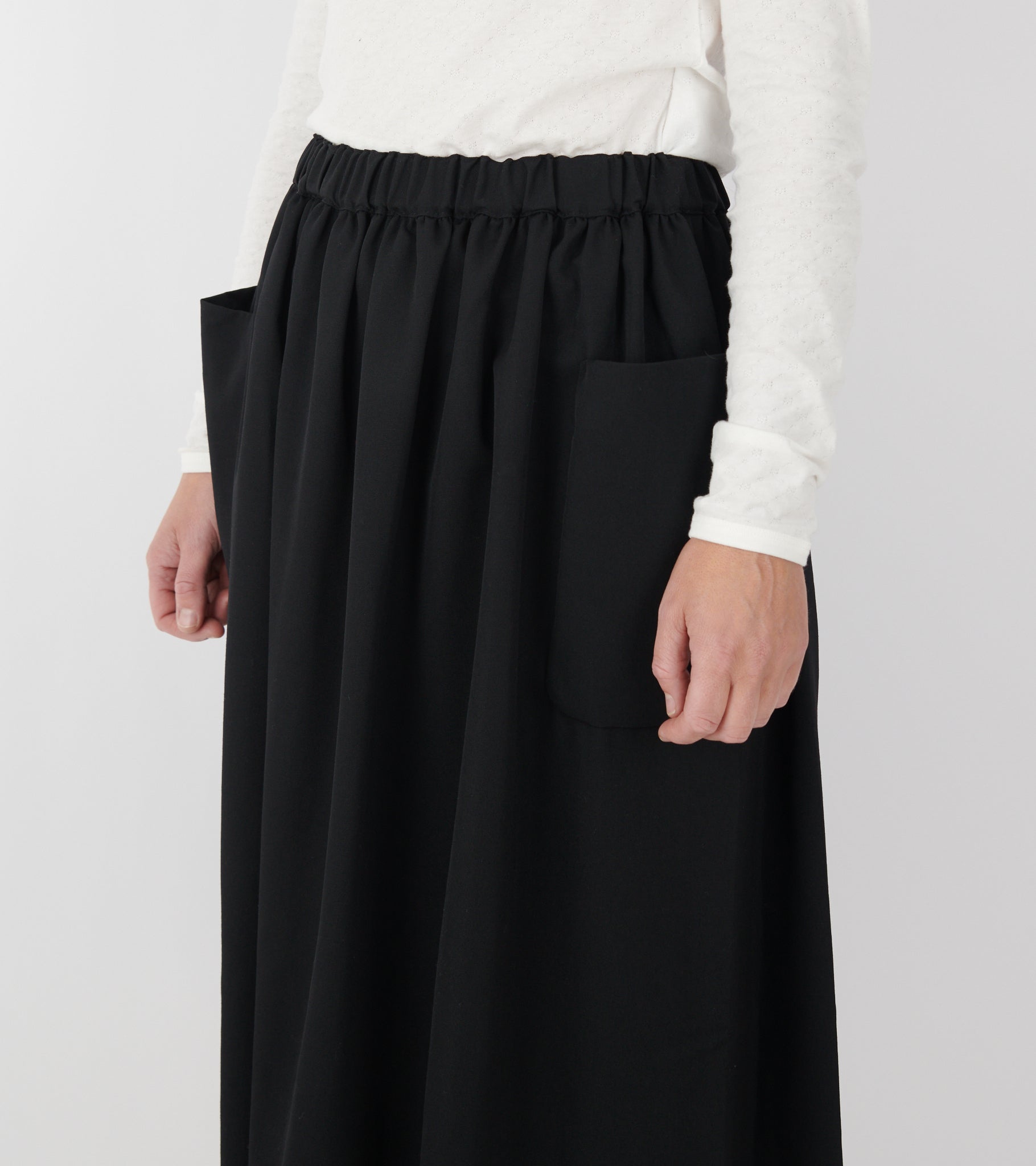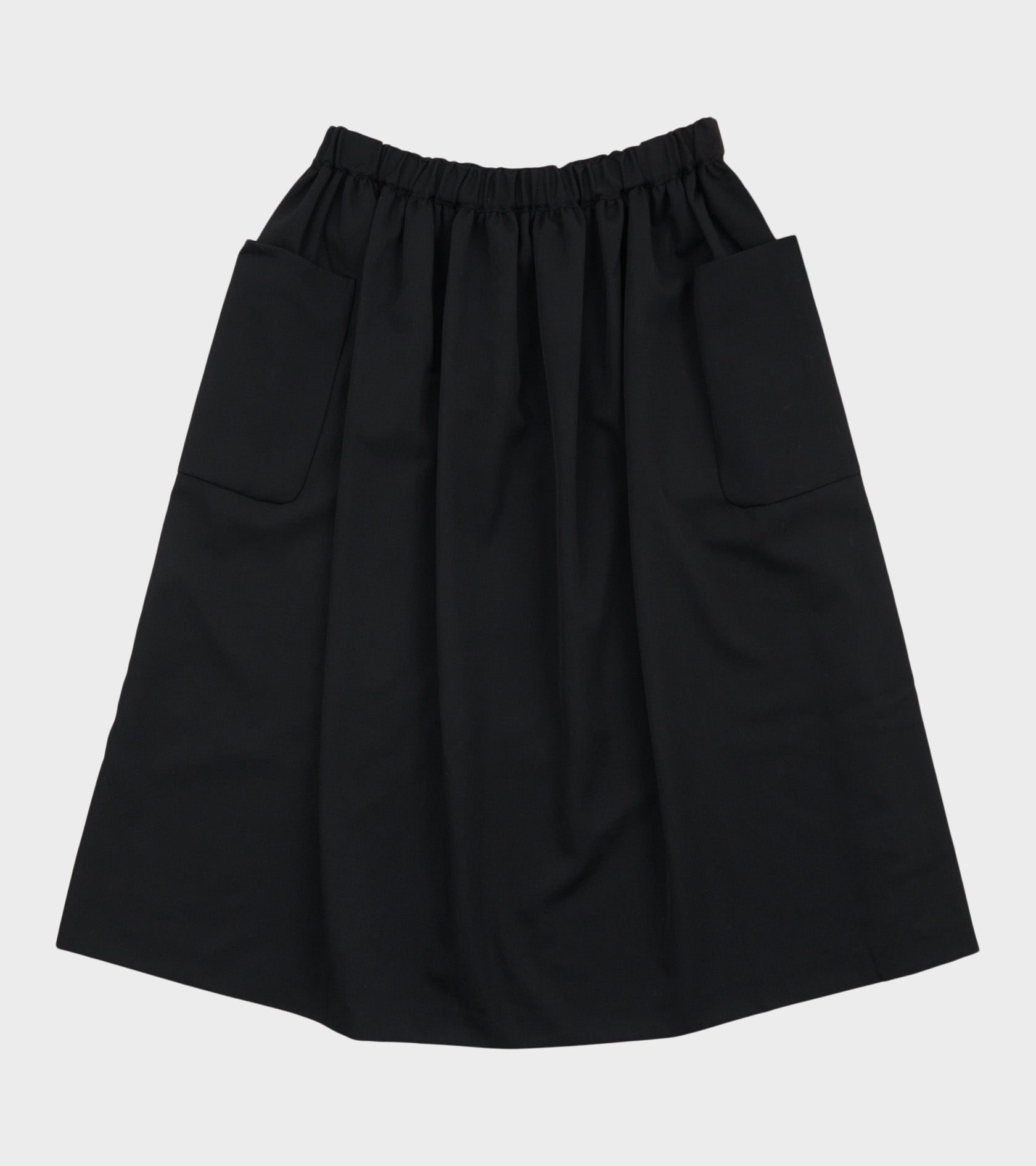 Sort nederdel i uld Comme des Garcons Girl. Nederdelen har to lommer på fronten samt elastik og et indvendigt bindebånd i livet.