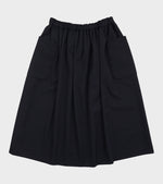 Navy nederdel i uld Comme des Garcons Girl. Nederdelen har to lommer på fronten samt elastik og et indvendigt bindebånd i livet.