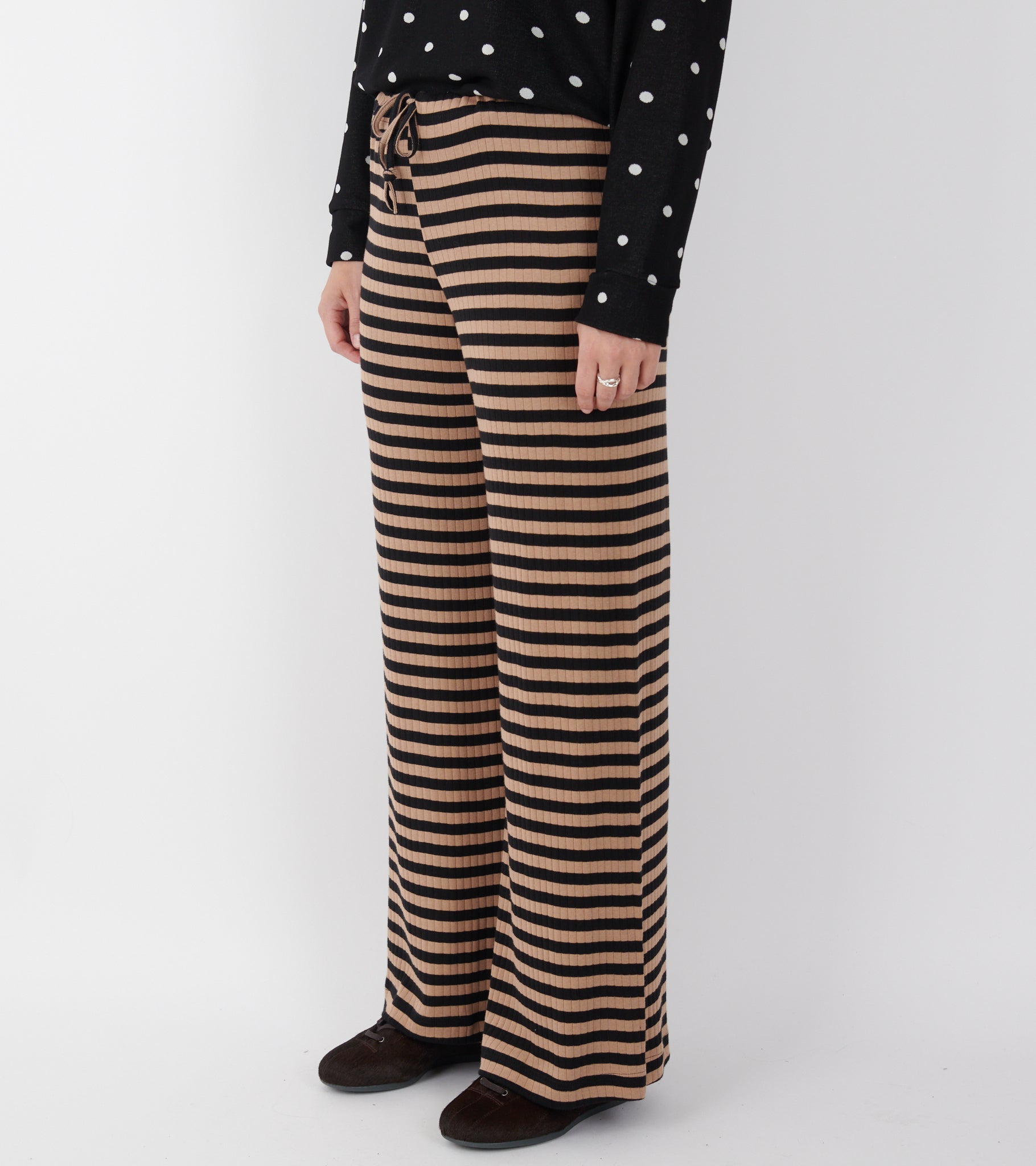 Stribede Nova Pants fra Nørgaard Paa Strøget. Nova Pants er et par afslappede bukser unden sidesøm og med et bindbånd i livet. Bukserne er syet i Danmark og måler 100 cm fra top til bund (str. 1)