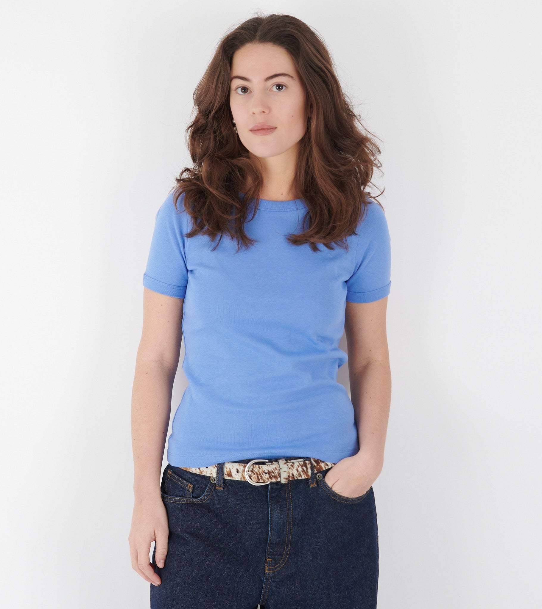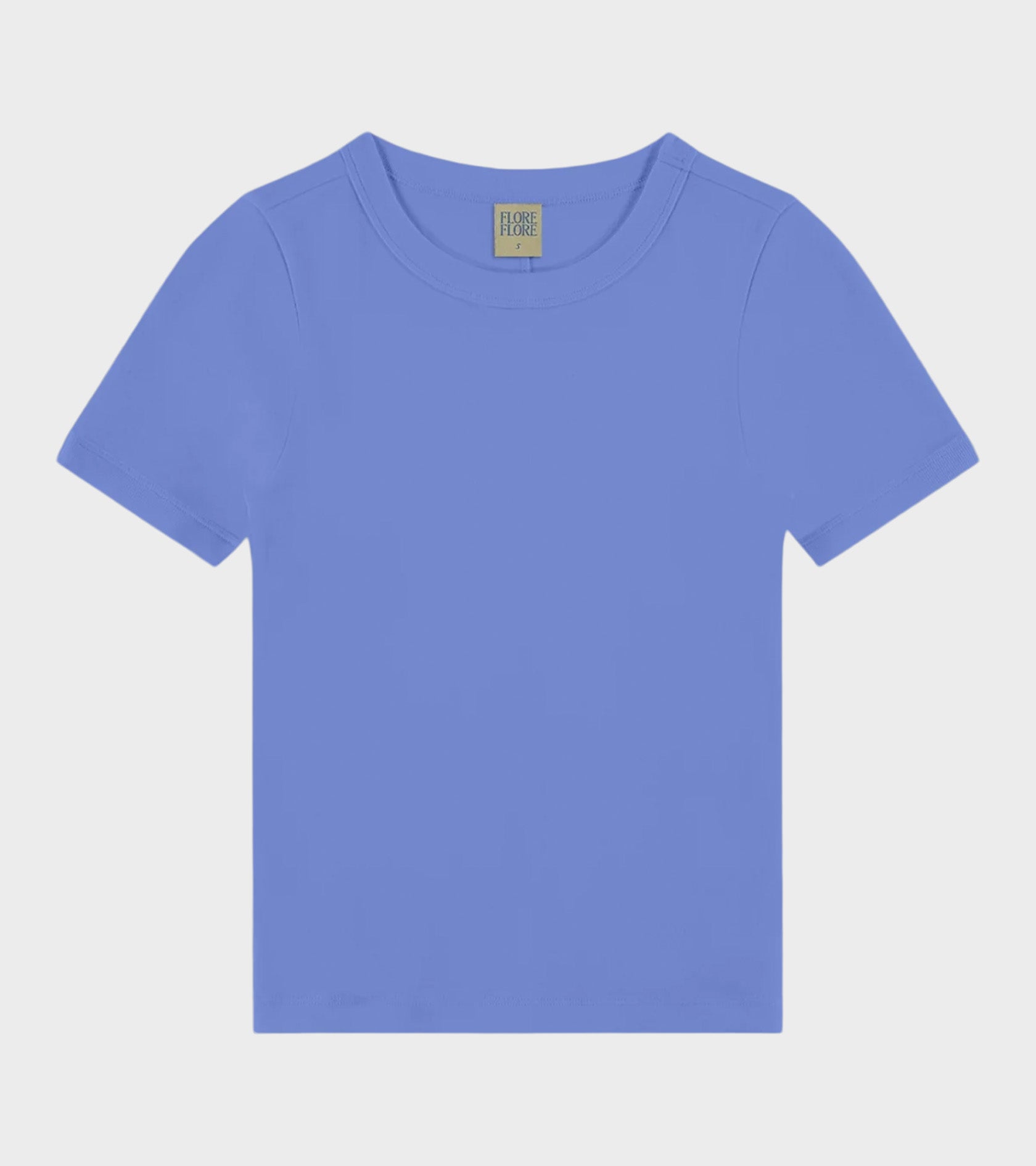 Blå t-shirt fra Flore Flore. Car Tee er fremstillet i en 'medium weight' økologisk bomuldskvalitet og har en rund hals.