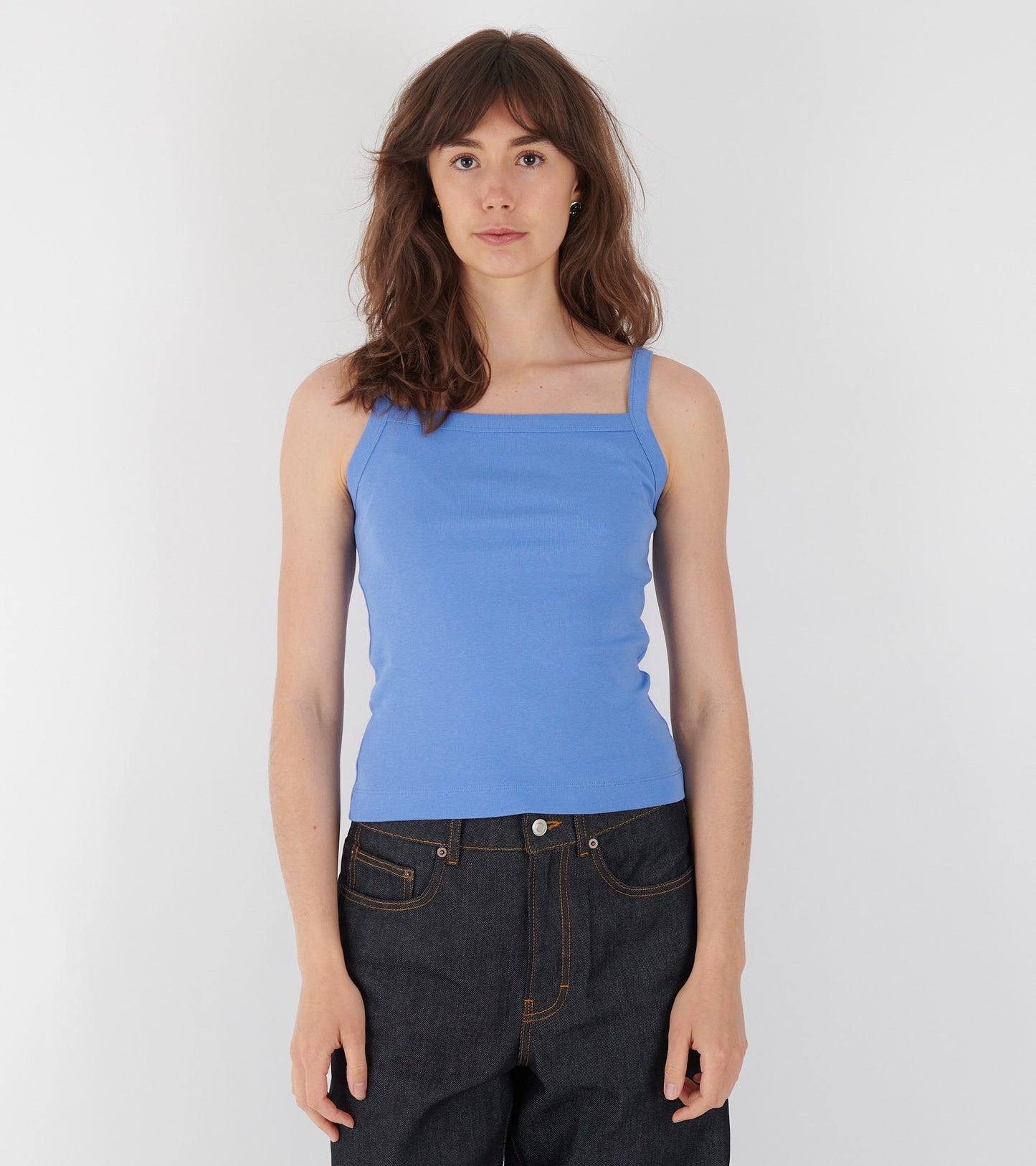 Blå top fra Flore Flore. May Cami er fremstillet i en 'medium weight' økologisk bomuldskvalitet og har en 'square neck' udskæring.