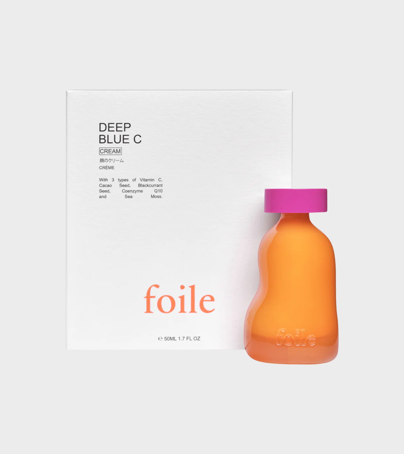 Fugtighedscreme med C-vitamin fra Foile. Deep Blue C Cream indeholder kakao, CoQ10 og solbærkerner og efterlader huden med en 'bouncy' følelse. Cremen indeholder fire forskellige typer C-vitamin, som alle hjælper med at lysne og ensarte huden samt øge kollagenproduktionen.