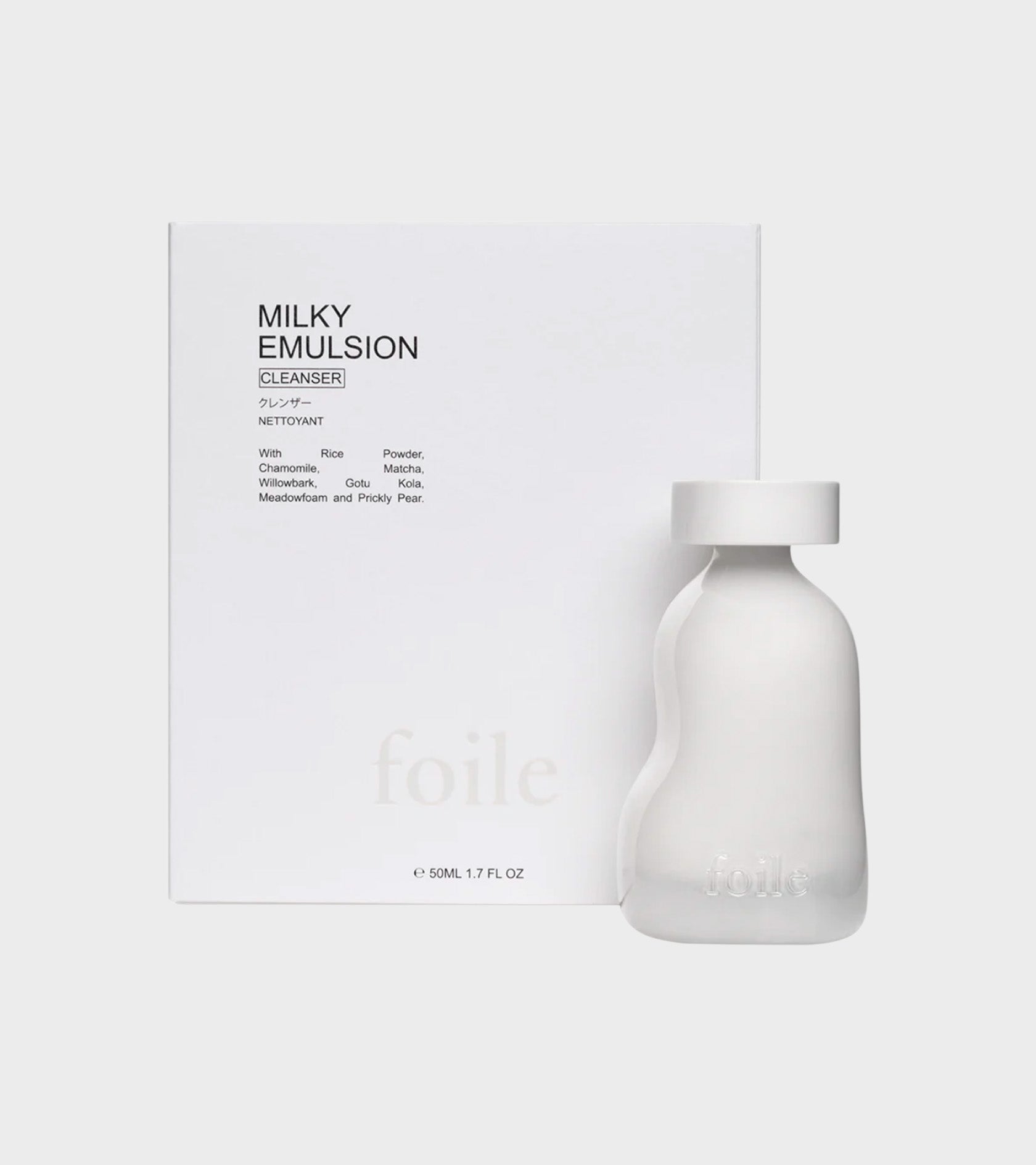 Rens fra Foile. Milky Emulsion Cleanser renser og regenerere huden samt efterlader den blød og strålende. Den botanisk-baserede formel vasker blidt urenheder væk og eksfolierer huden ved hjælp af rispulver. 'Meadowfoam' hjælper med at balancere hudens olier, 'Gotu Kola' hjælper med kollagenproduktionen og matchaen tilføjer antioxidanter til rensen.