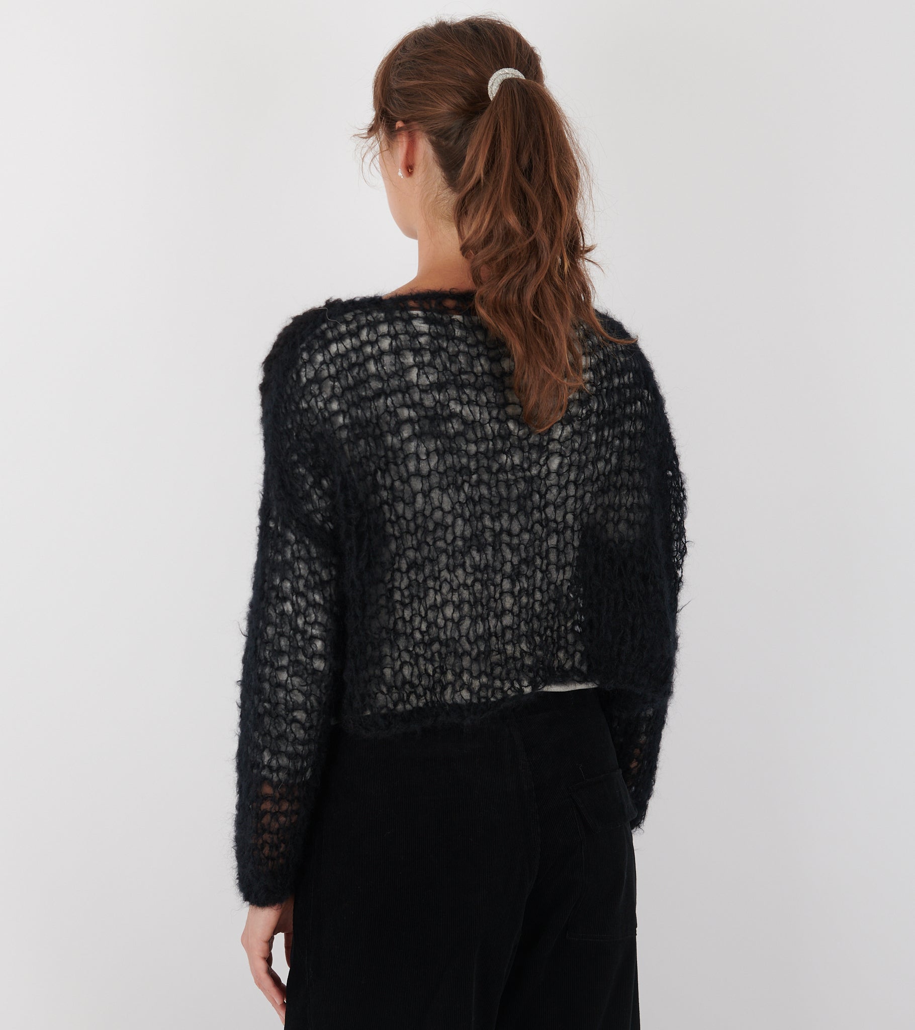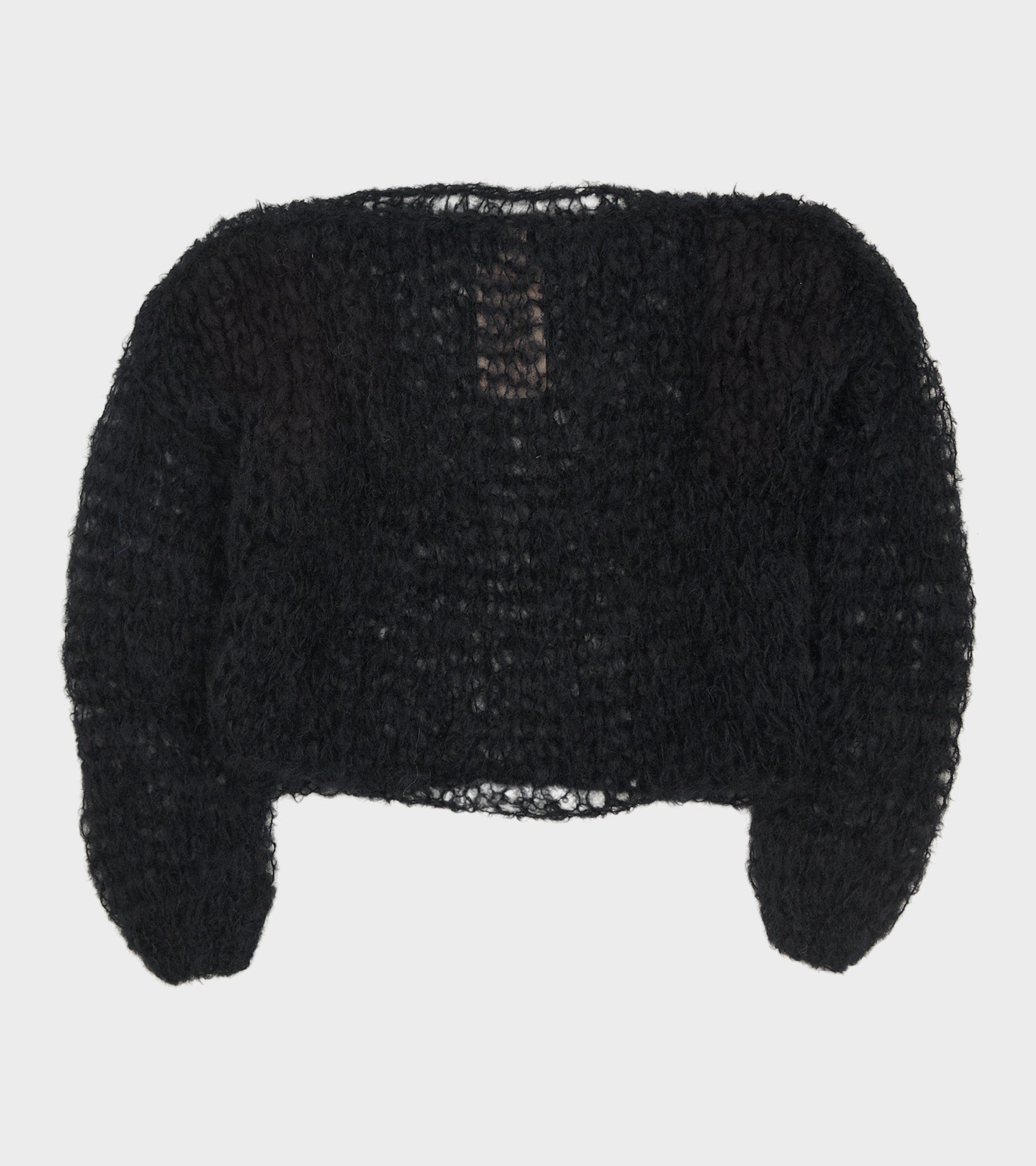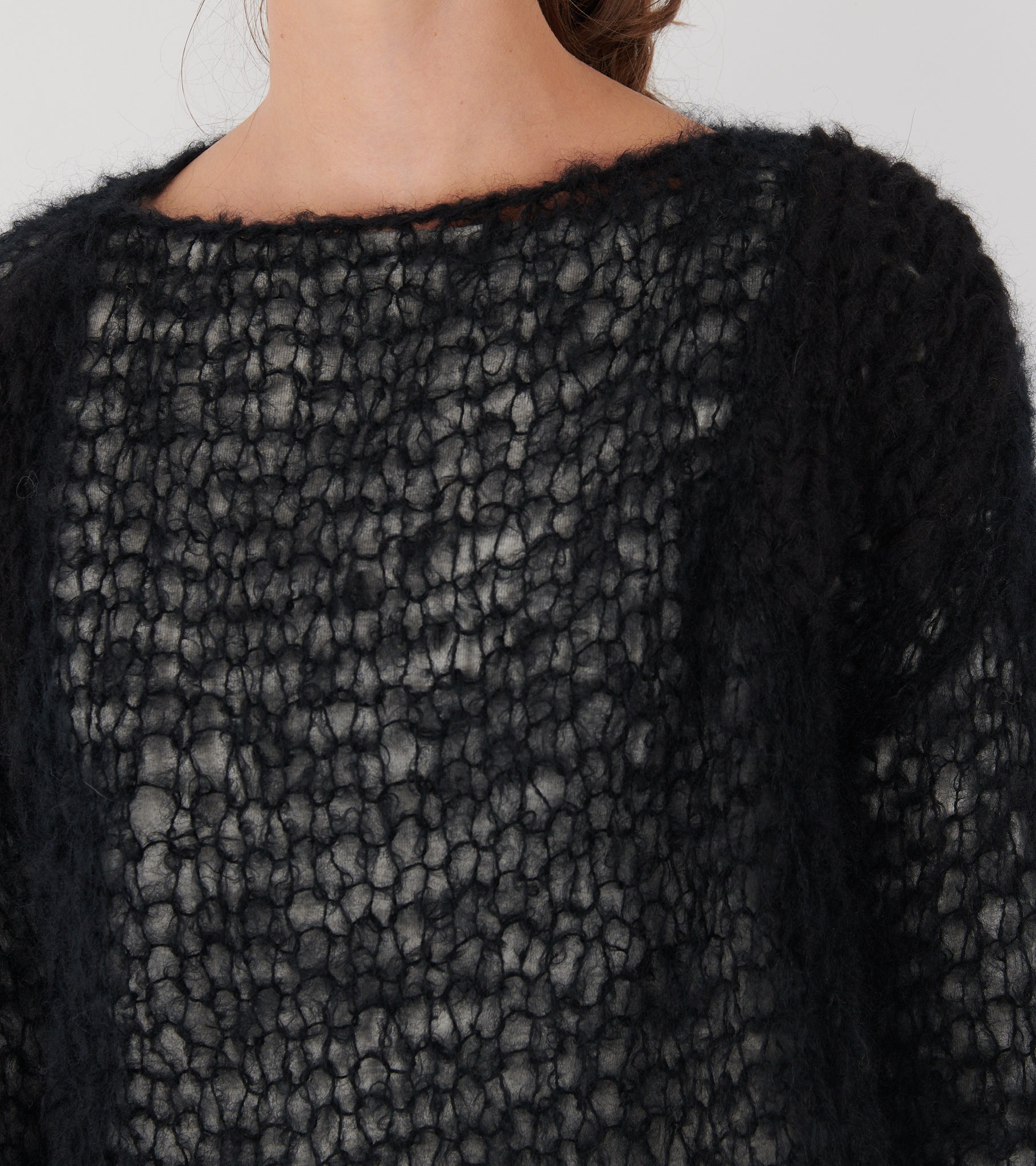 Sort håndstrikket strik fra Gudrun & Gudrun. Bohema Sweater er løst strikket i en mohair- og alpaka uldblanding.