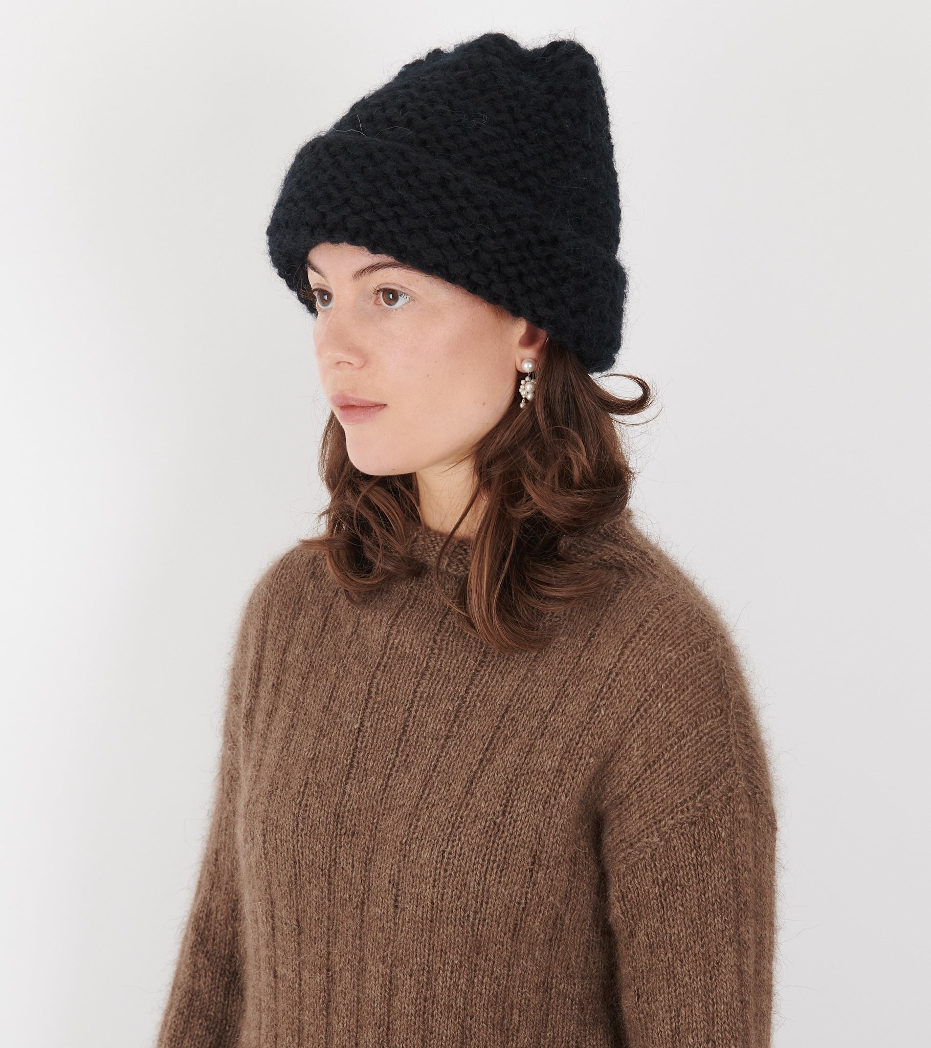 Oversize hue i chunky strikket uld fra Gudrun & Gudrun.