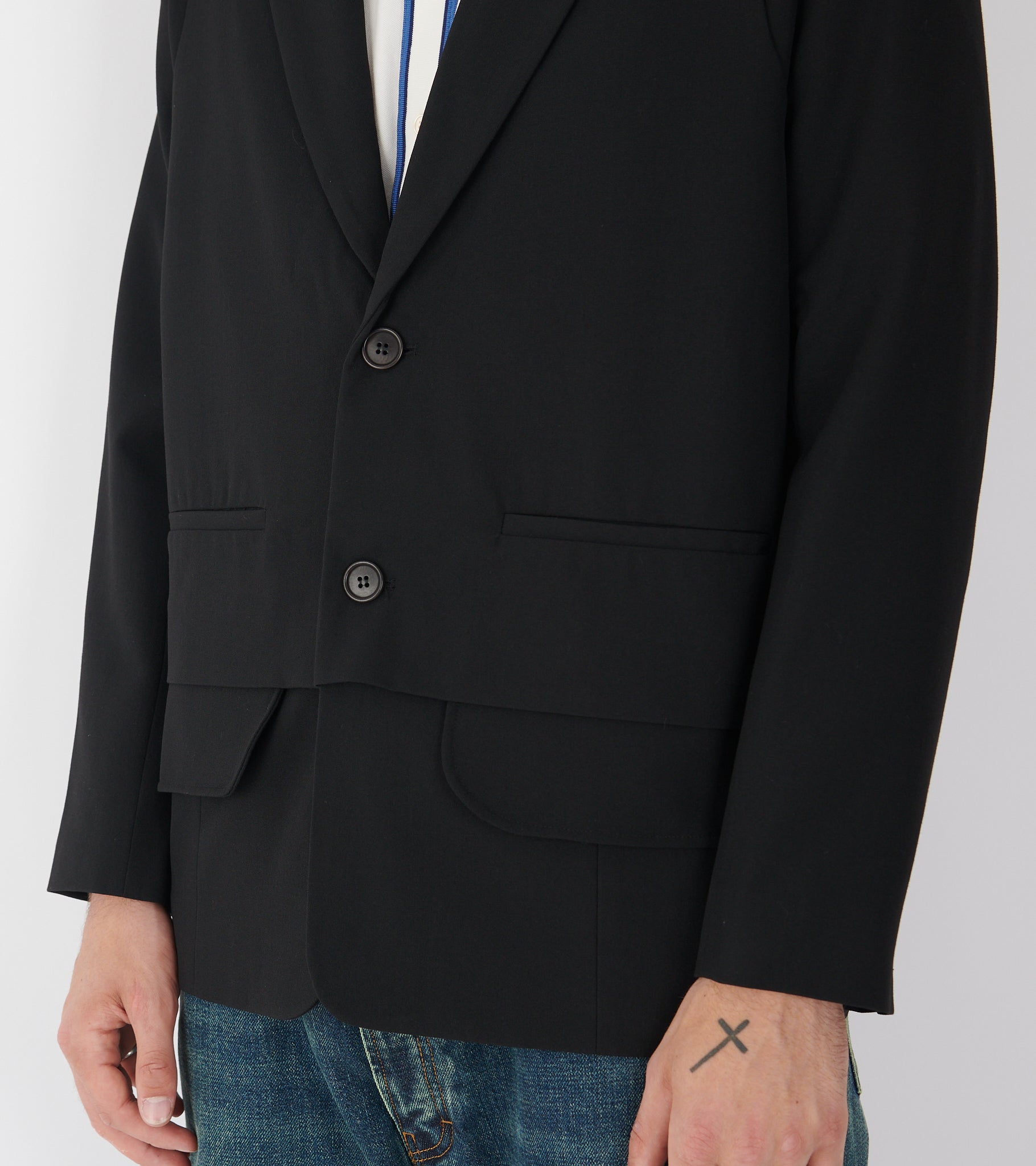 Sort blazer med et 'layered' vest-design fra Henrik Vibskov.