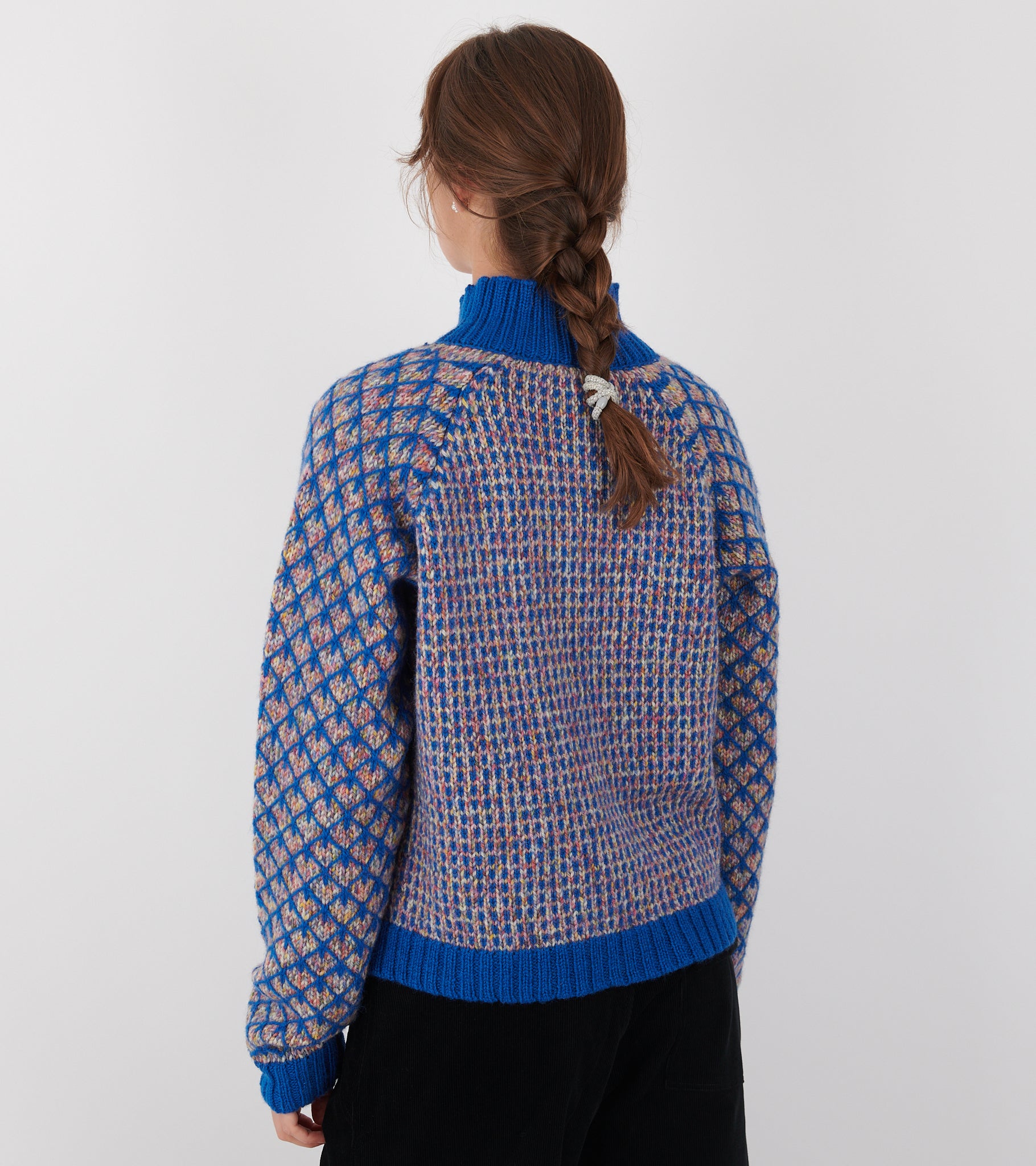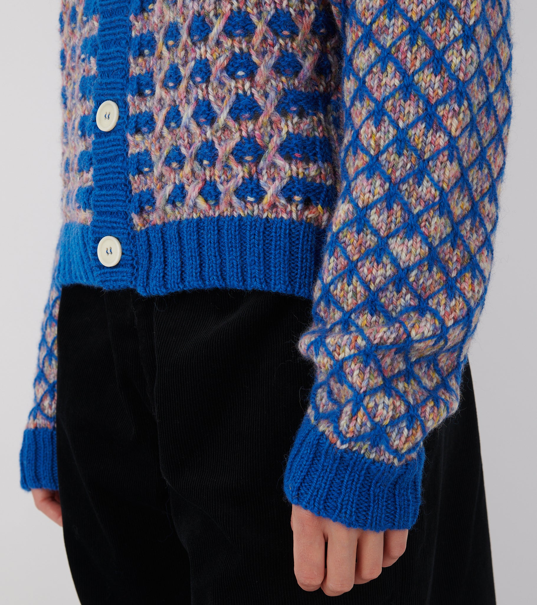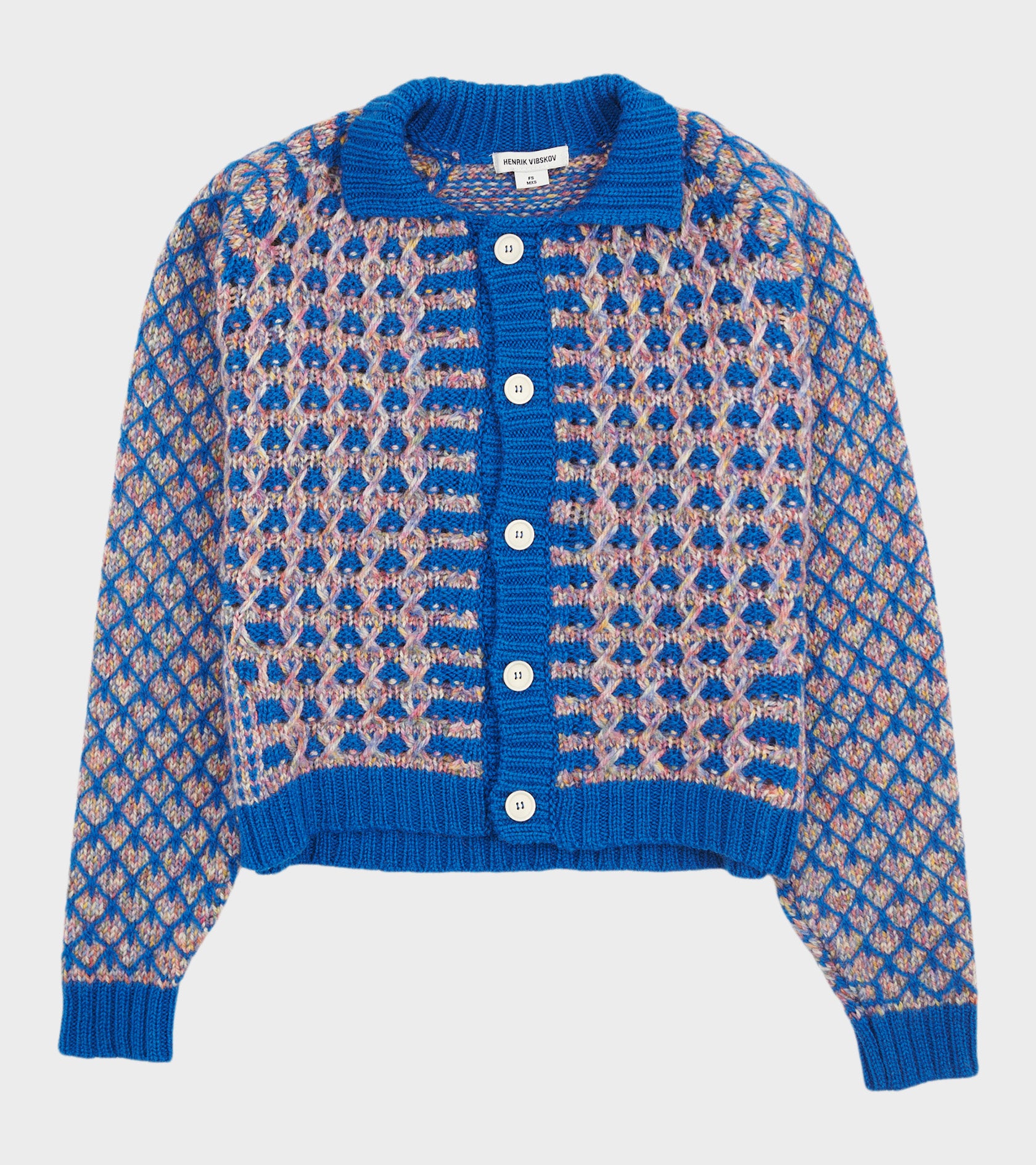 Blå og multifarvet cardigan fra Henrik Vibskov.
