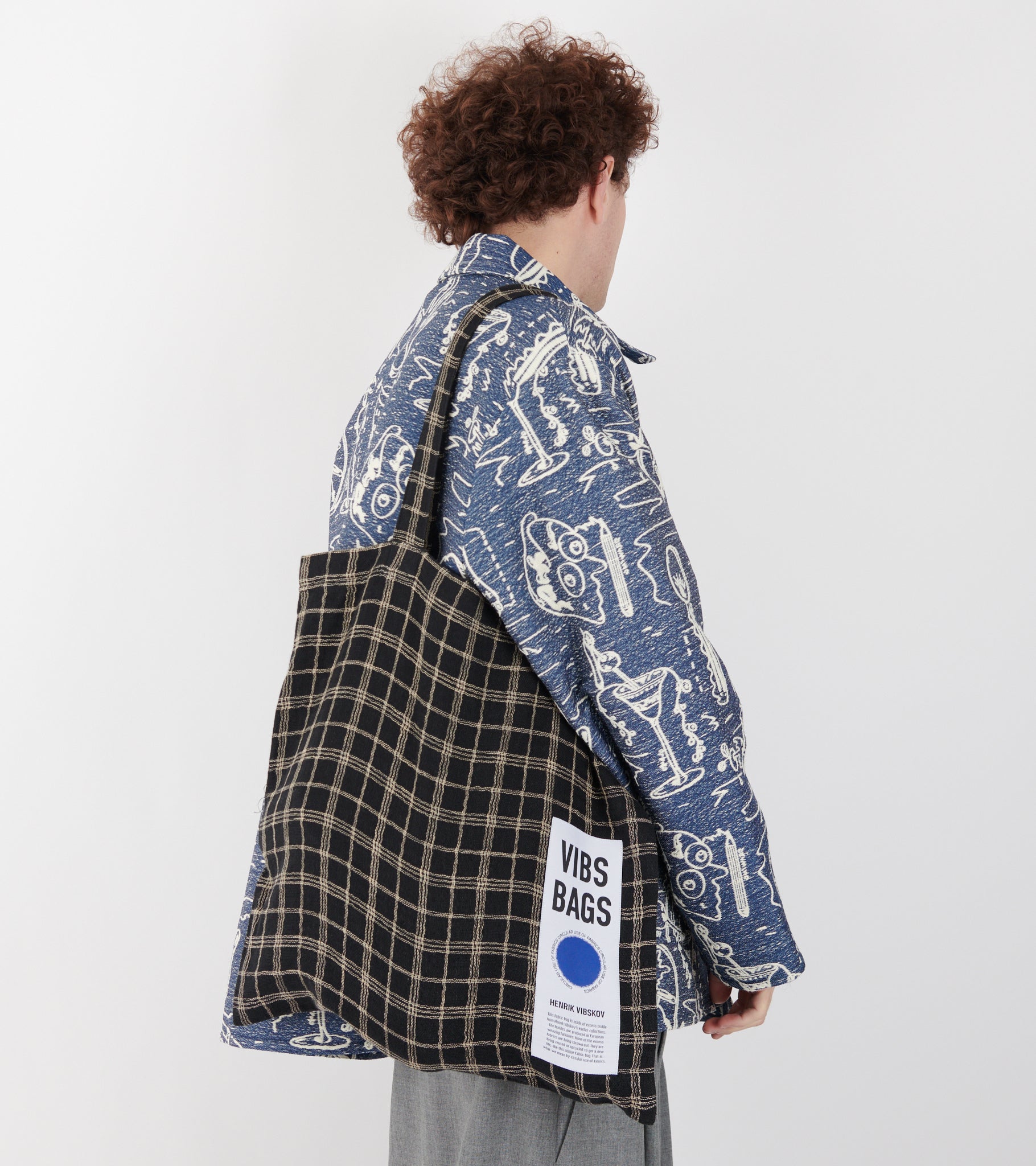 Vibs Upcycled Tote Bag Black Curvy Grid
