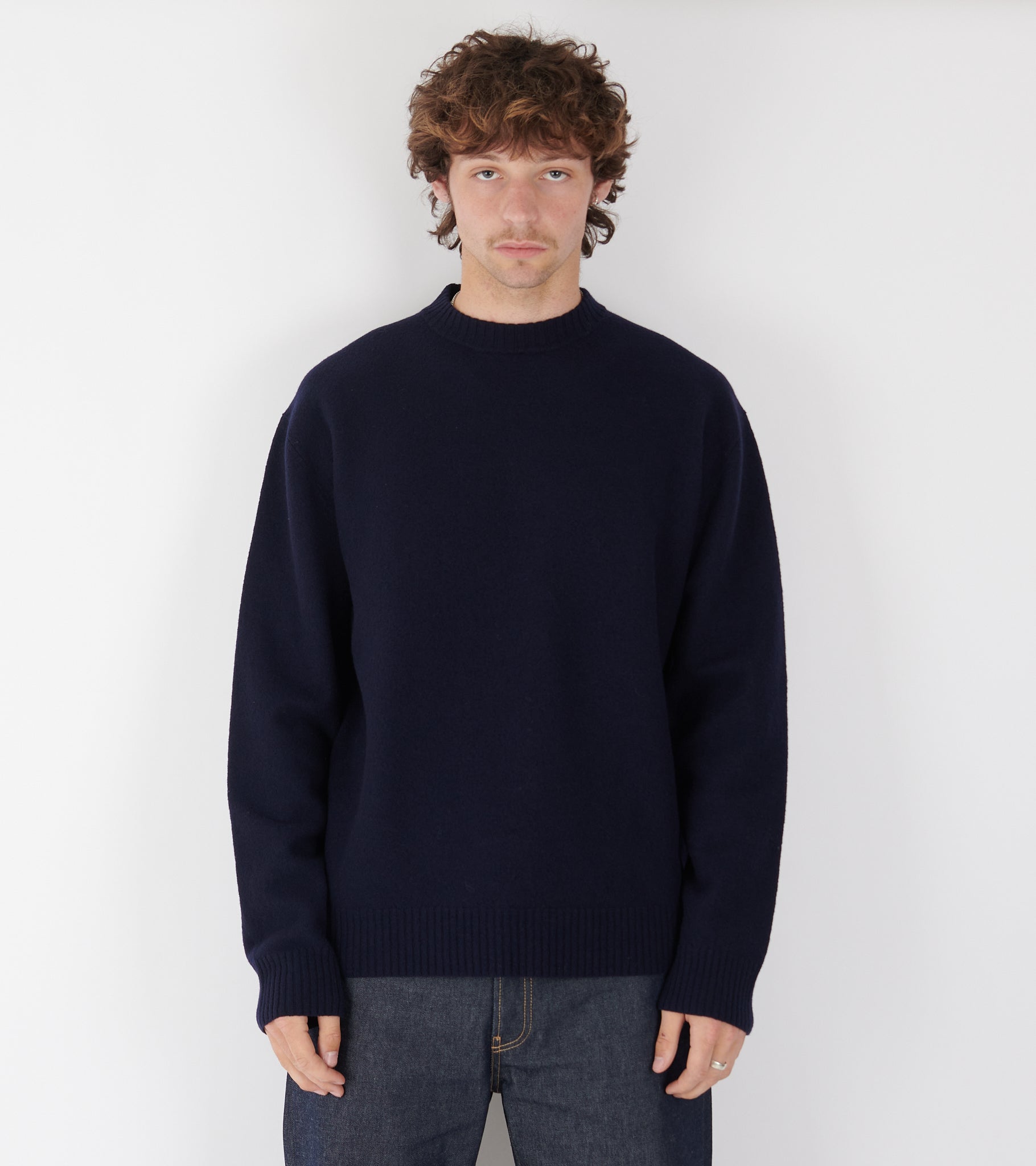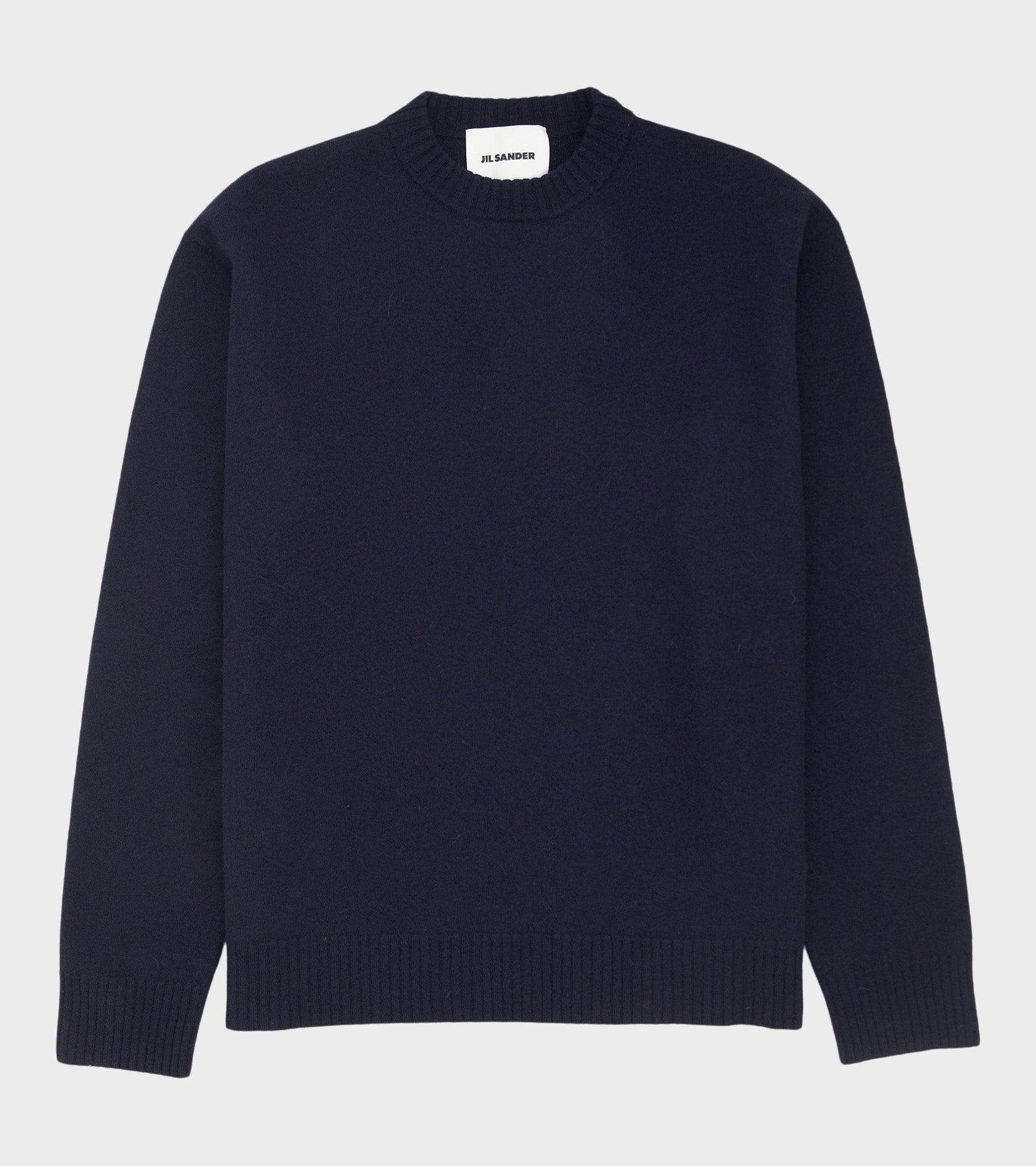 Navy strik i uld med rund halsudskæring fra Jil Sander.