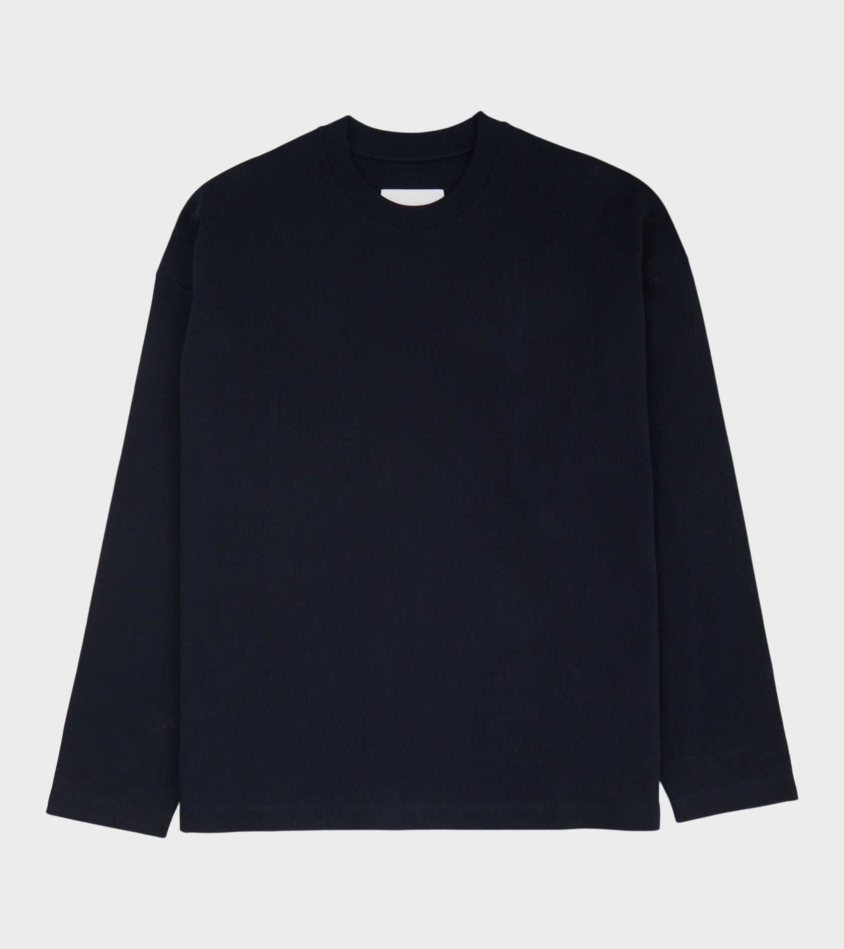 Langærmet navy t-shirt i en kraftig samt let stiv bomuldskvalitet fra Jil Sander.