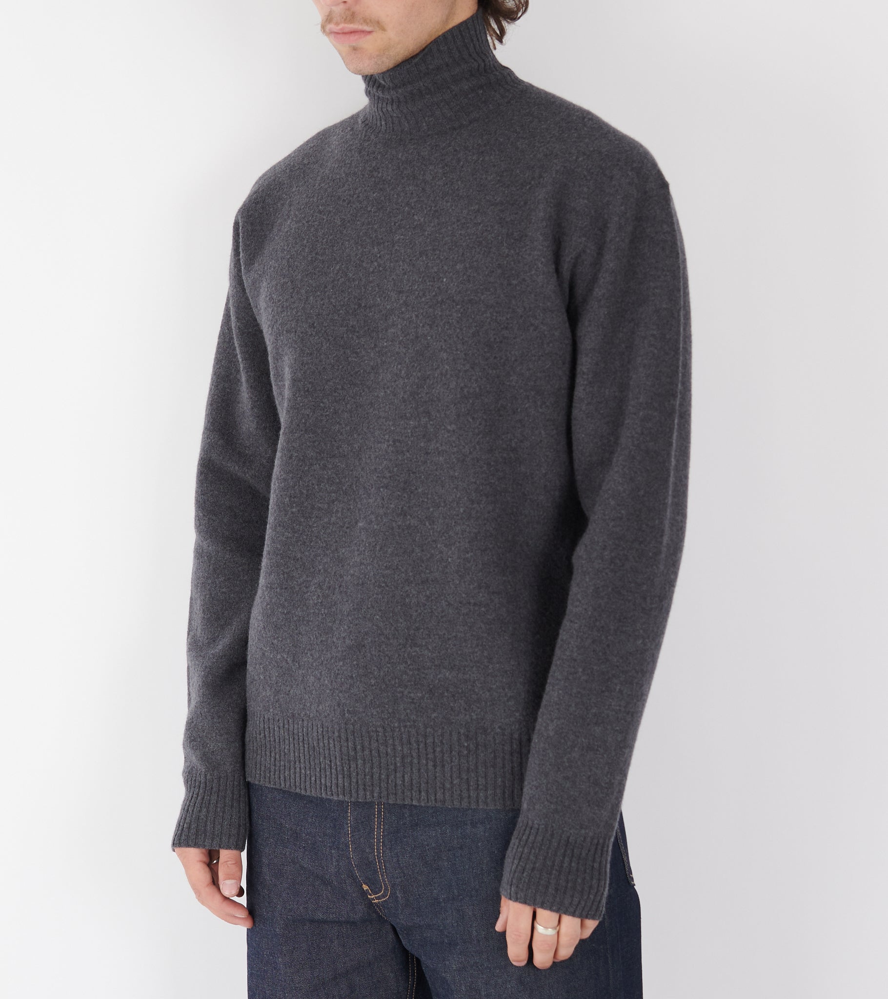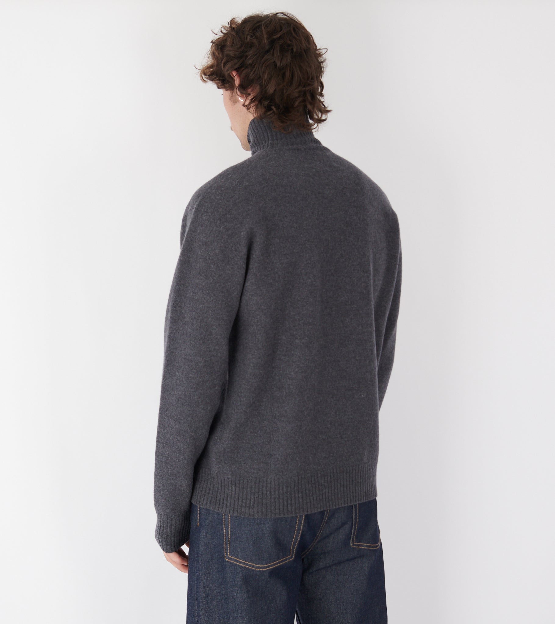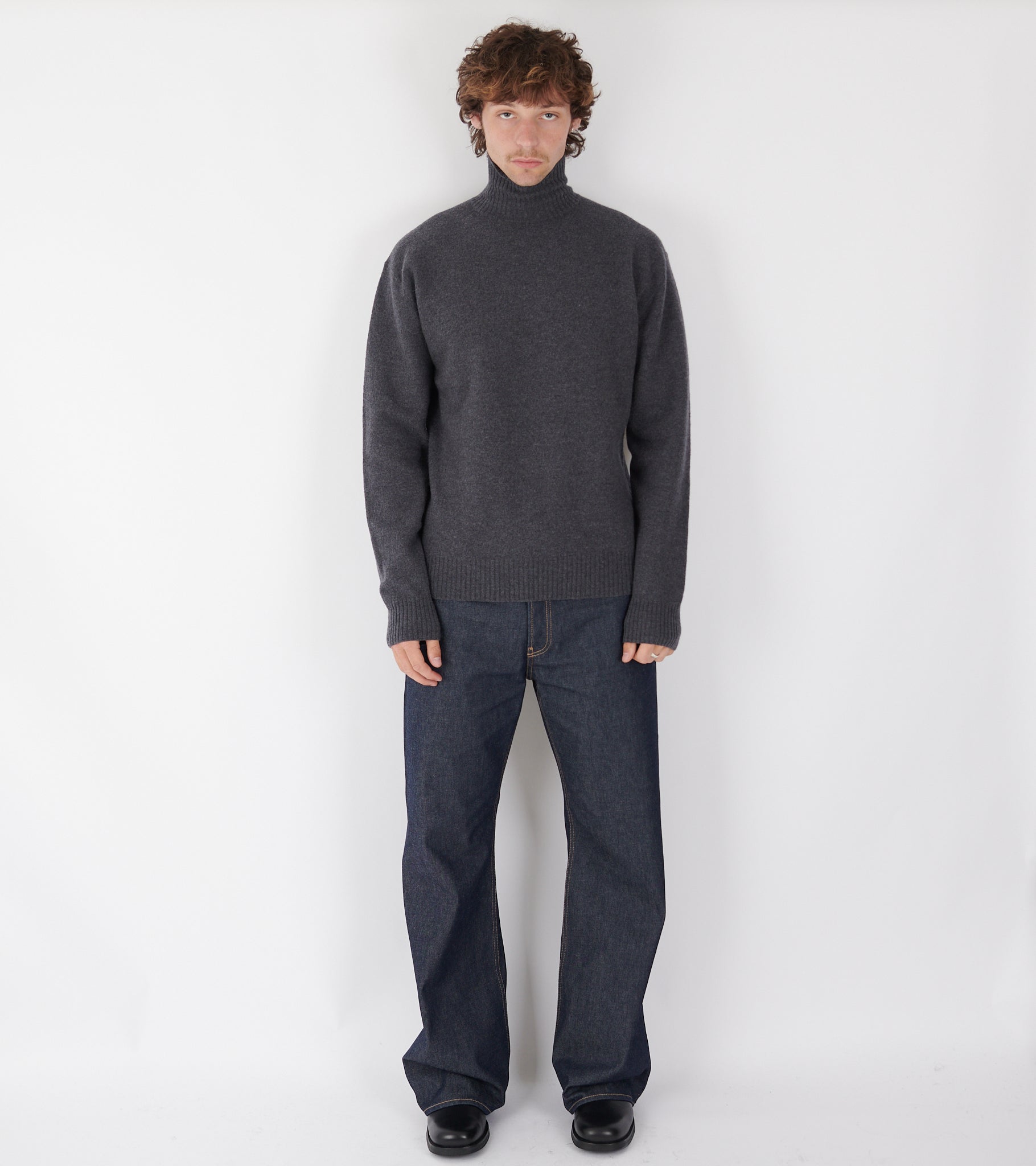 Grå strik med høj hals fremstillet i uld fra Jil Sander.