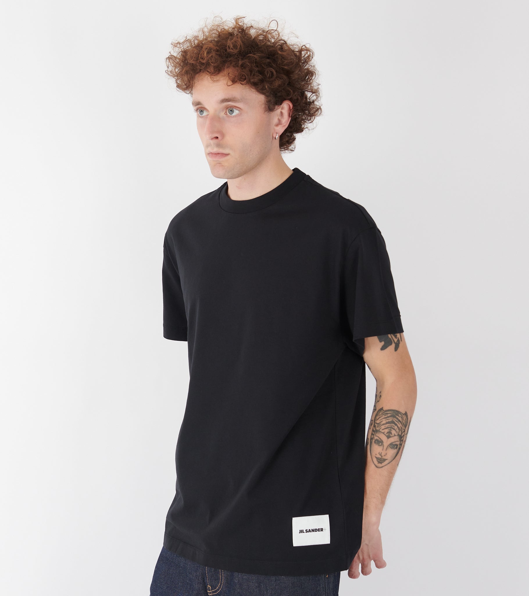 3 x sorte t-shirts i økologisk bomuld fra Jil Sander. Disse t-shirts er fremstillet i økologisk bomuld.