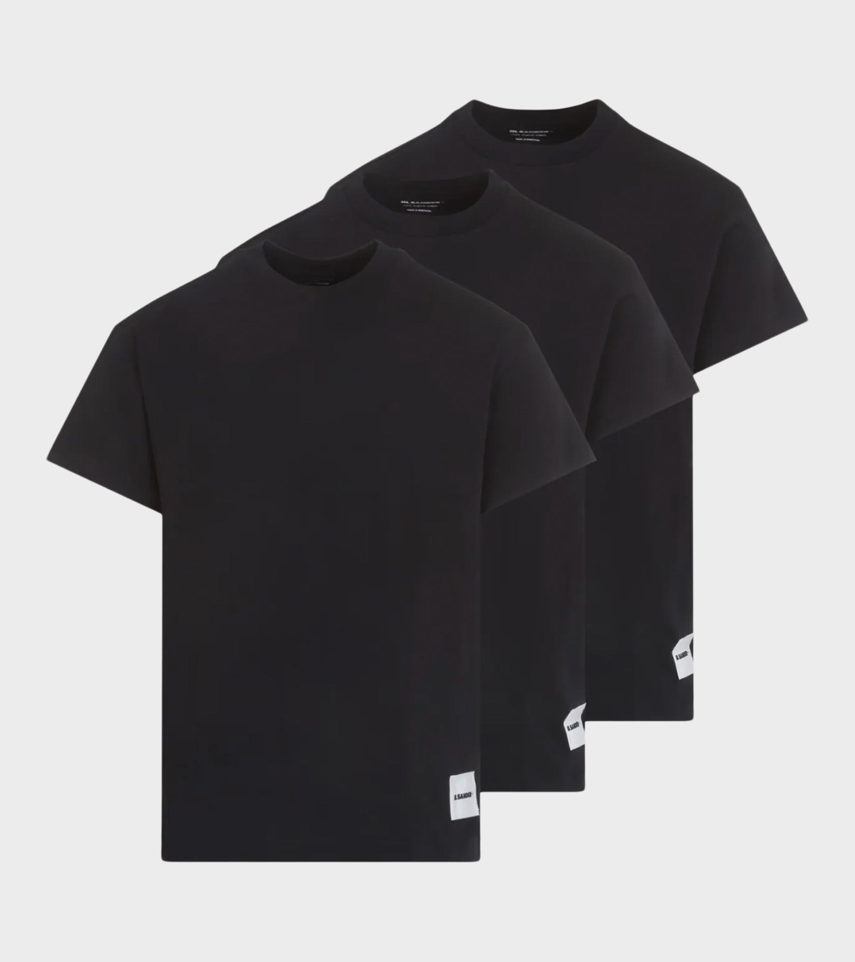 3 x sorte t-shirts i økologisk bomuld fra Jil Sander.