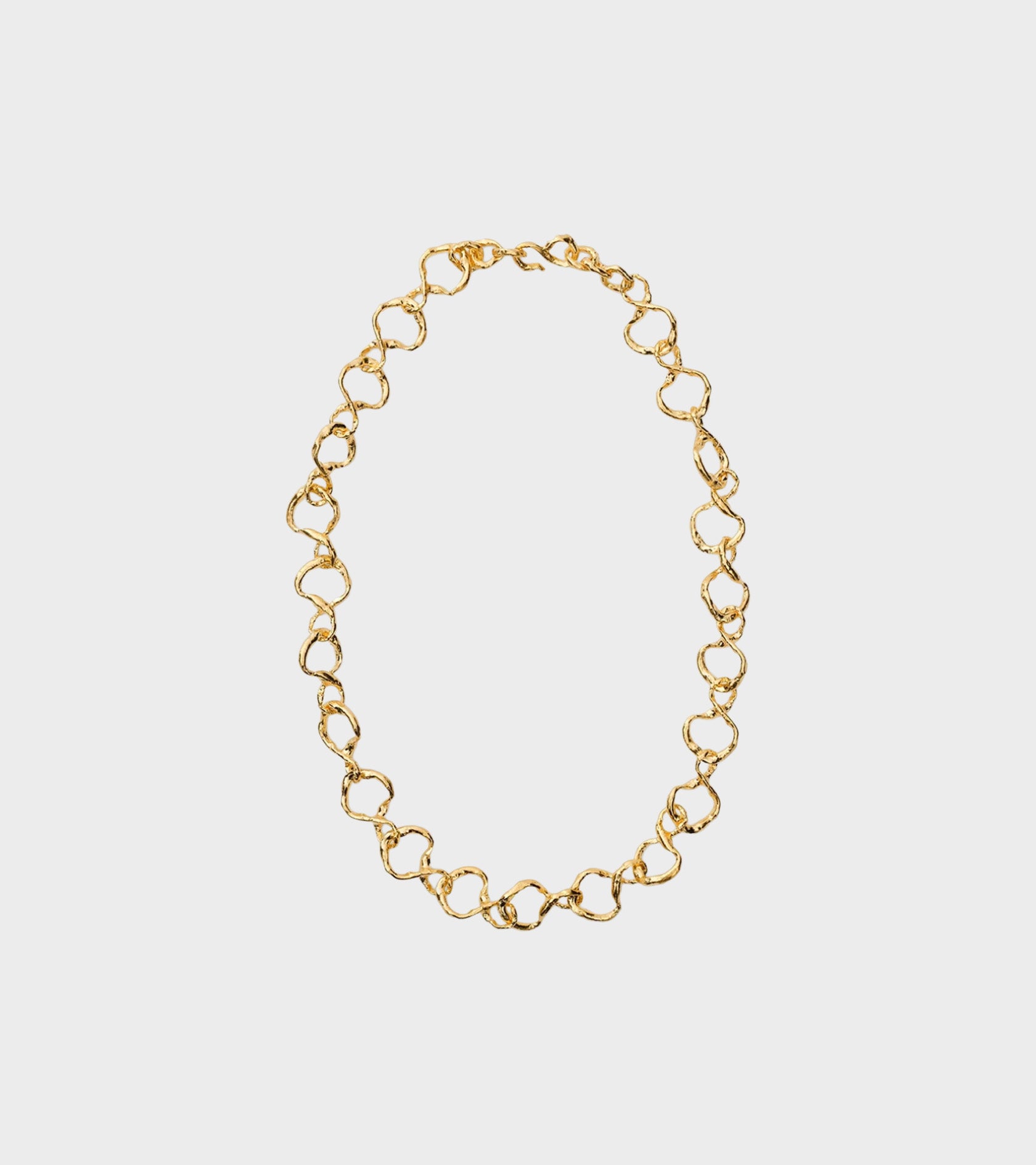 Statement halskæde med store vandstøbte cirkler i guldbelagt sølv fra Lea Hoyer.