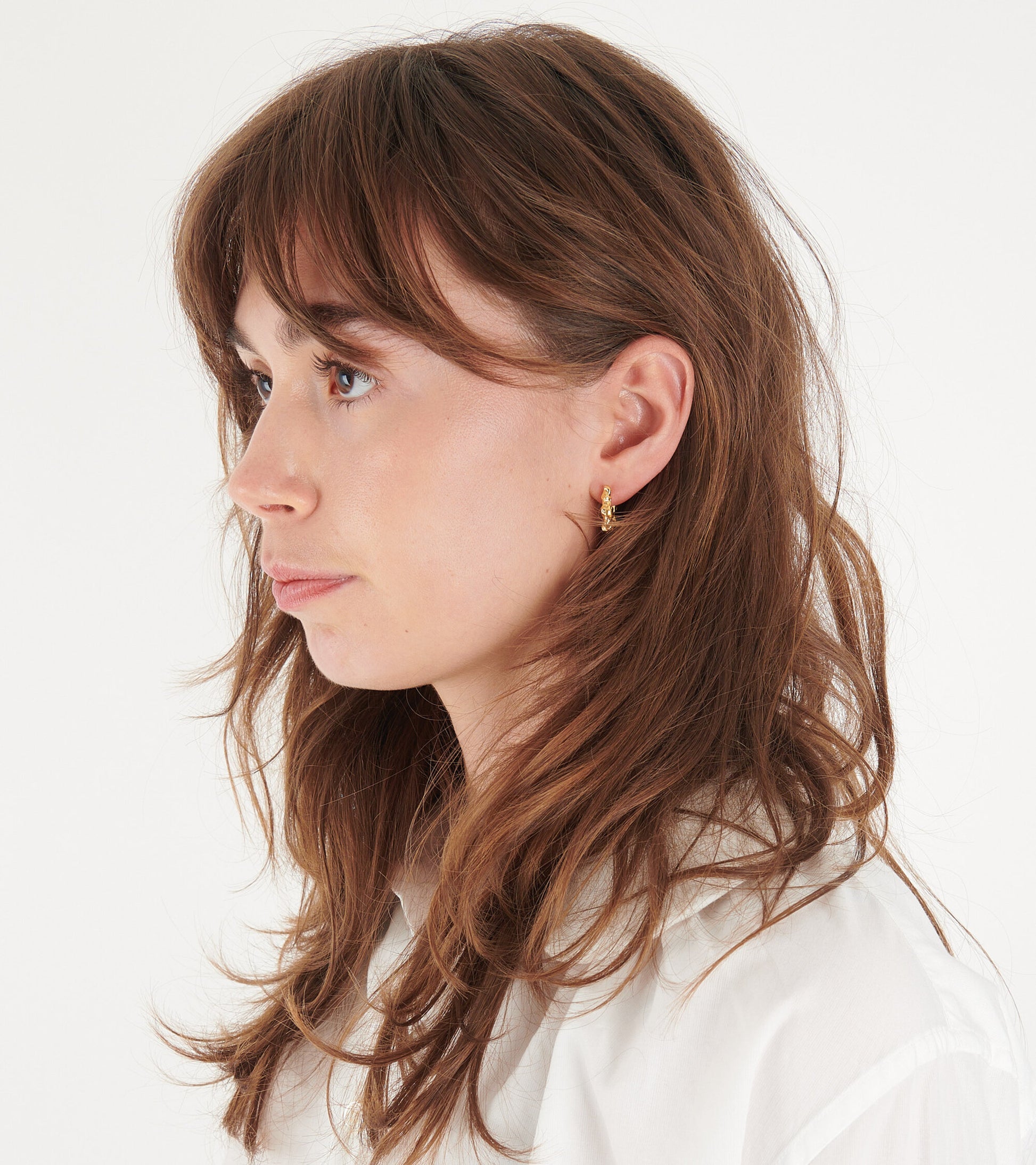 Lea Hoyer har skabt hoops formet med en vandstøbeteknik i tre forskellige størrelser - Lulu Earring er den største størrelse. Denne ørering er fremstillet i guldbelagt sterling sølv og sælges enkeltvis.