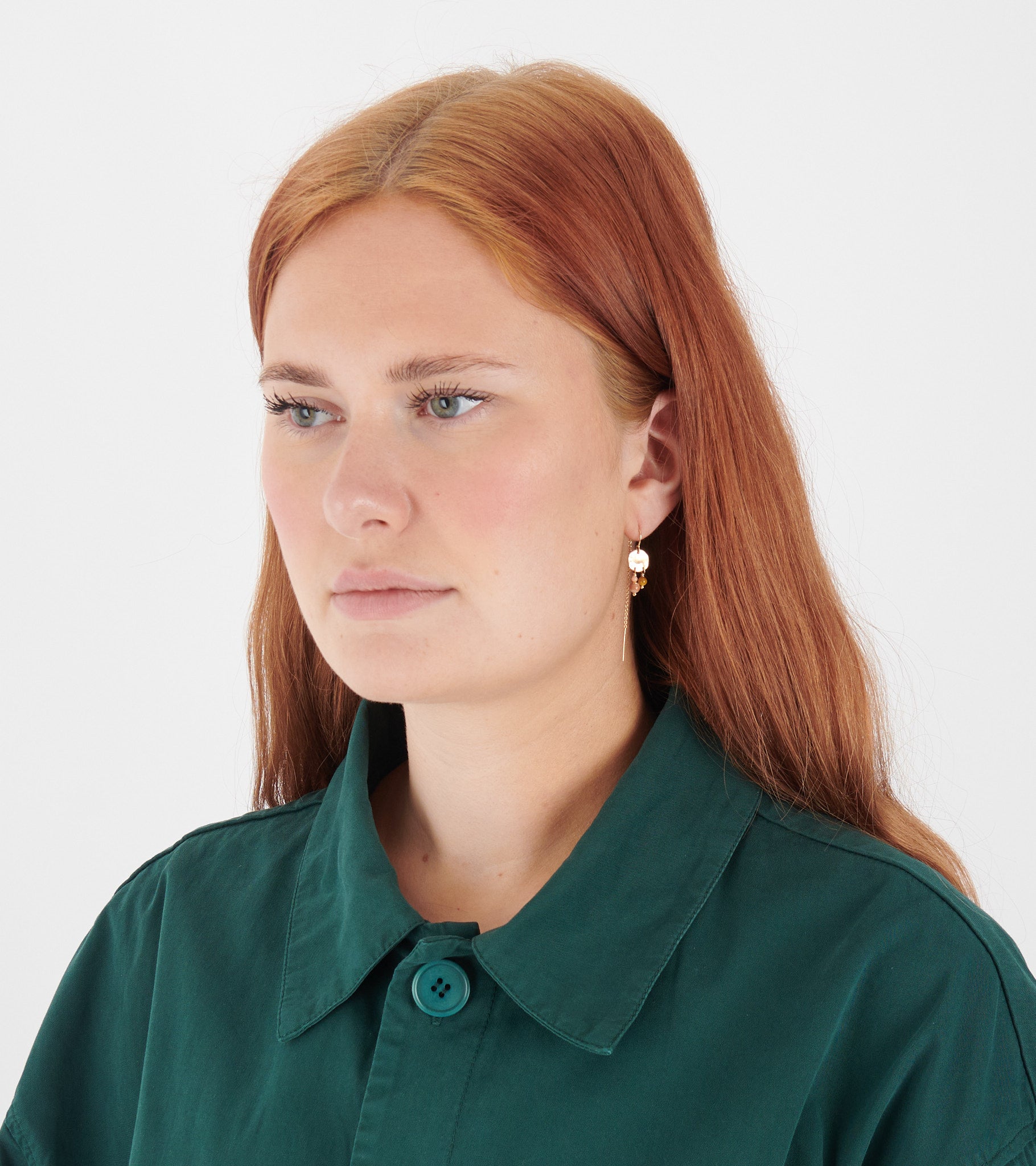 Guldbelagt ørering med banket plade og perle fra Leleah.