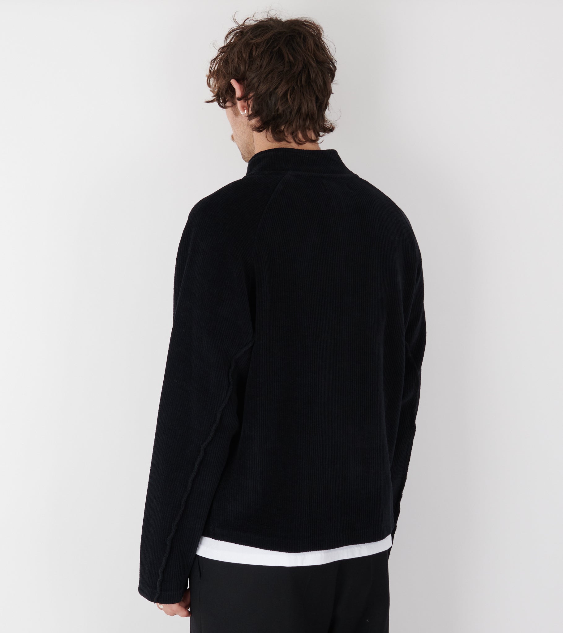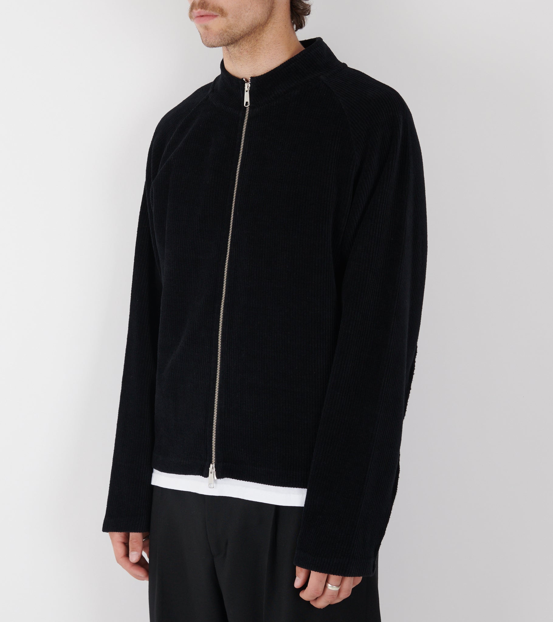 Sort cardigan i bomuldsfløjl med en dobbeltgående lynlåslukning fra Mfpen.