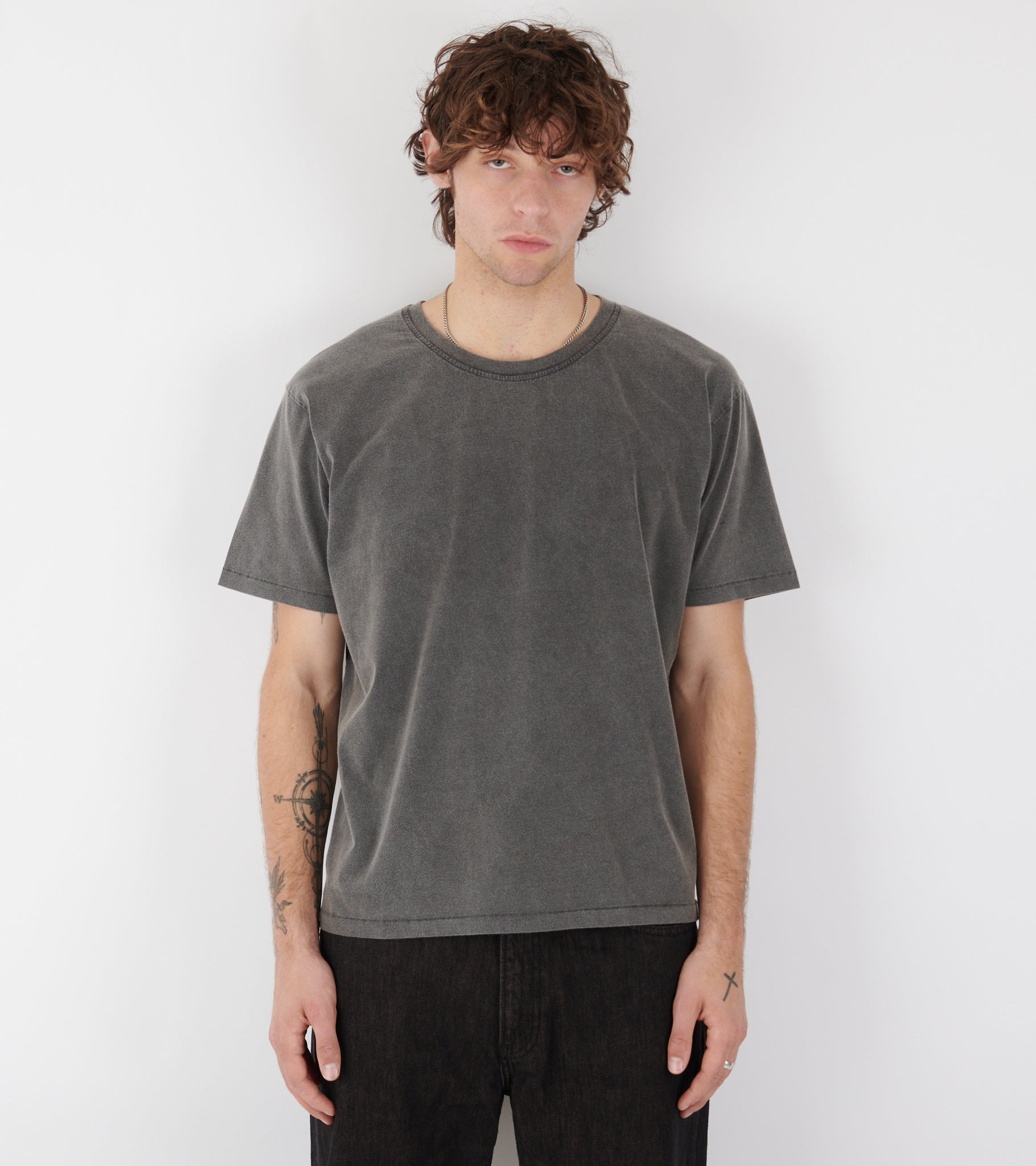 Mørkegrå garment dyed t-shirt i økologisk bomuld fra Mfpen.