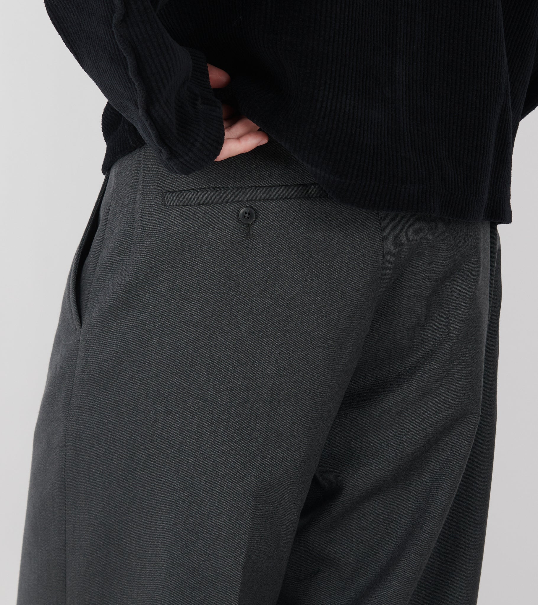 Grå bukser i uld fra Mfpen. Service Trousers er en klassisk style med lige ben og læg foran. Den har lynlåslukning, en skrålomme i hver side samt to baglommer.