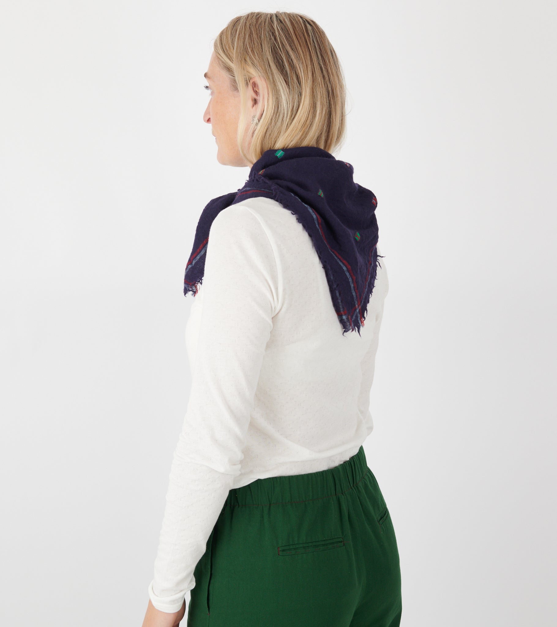 Navy tørklæde med små vævede firkanter fra Moismont.