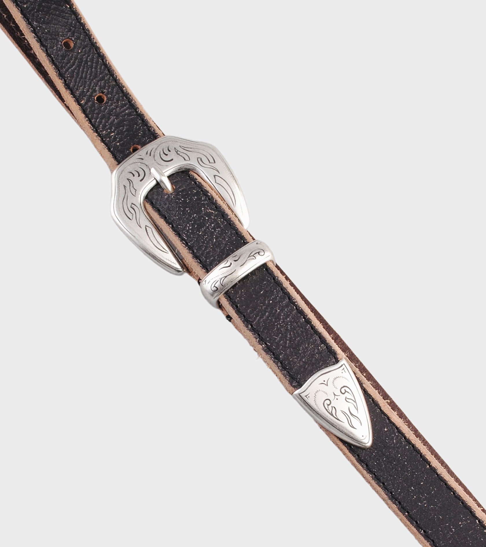 Sort krakeleret bælte med sølv hardware fra Molebo.