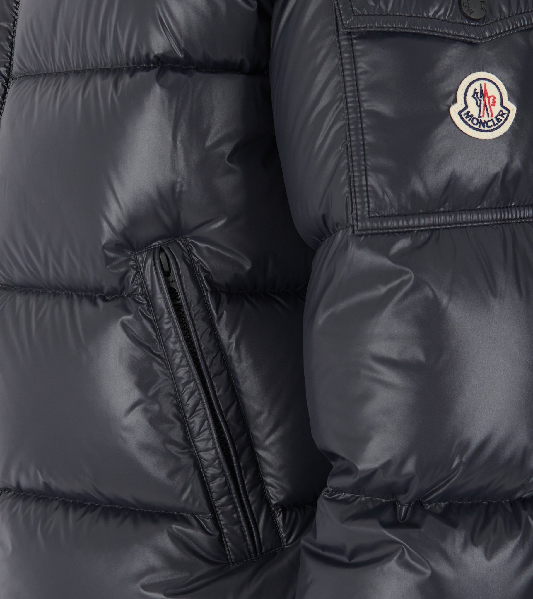 Sort dunjakke fra Moncler. Levitha Hooded Down Jacket Black er fremstillet i en 'glossy laqué' nylonkvalitet og er foret med bløde dun og fjer. Jakken har en mellemhøj hals, en dobbeltgående lynlåslukning, en lomme i hver side og en lomme på venstre ærme - på lommen er det ikoniske logo i filt.