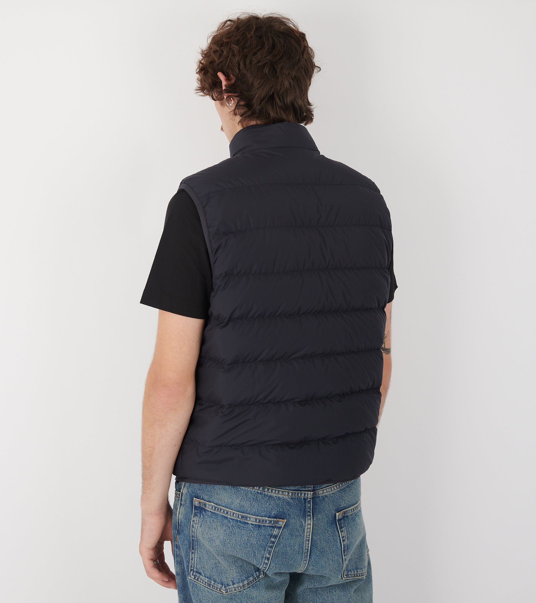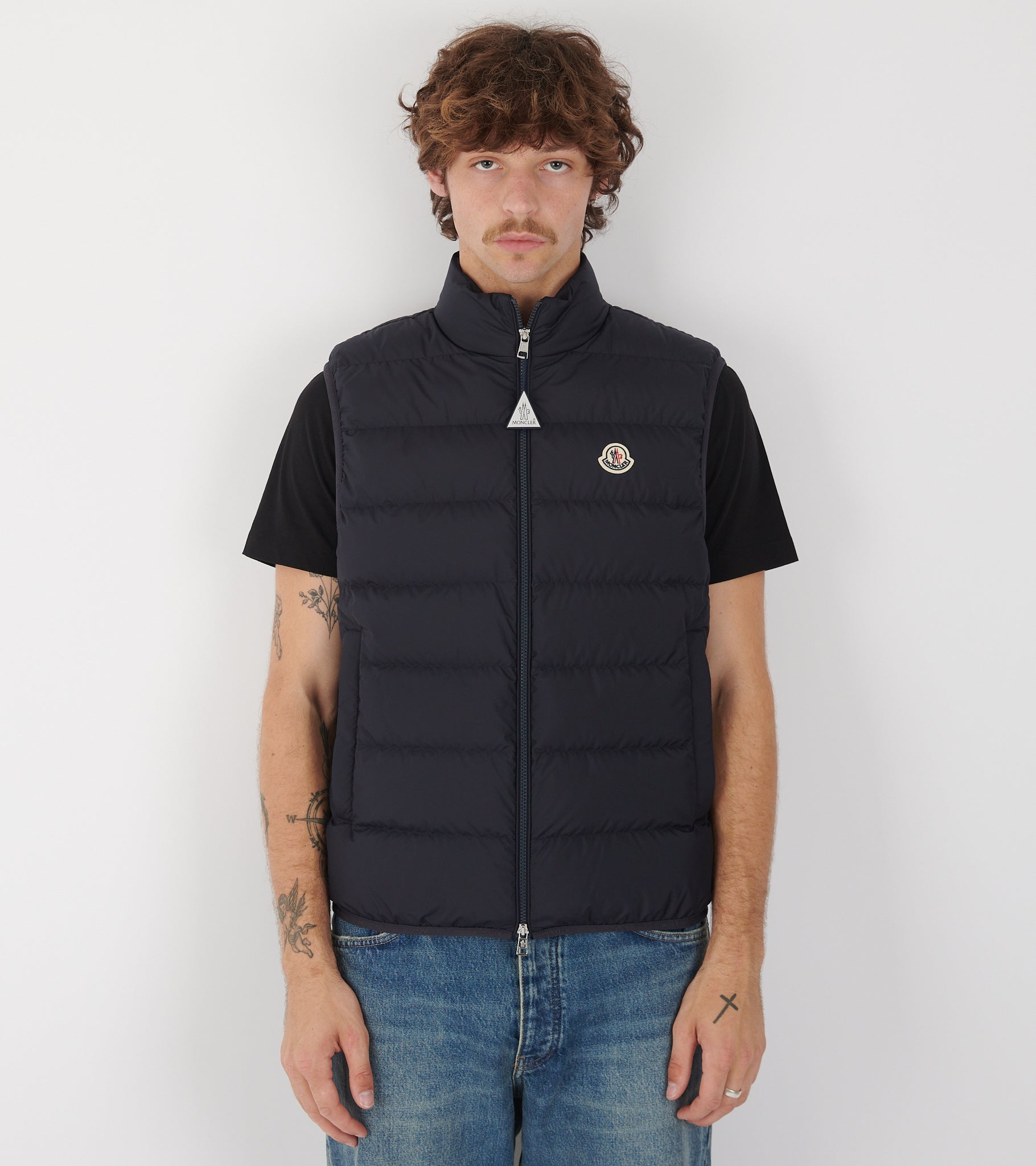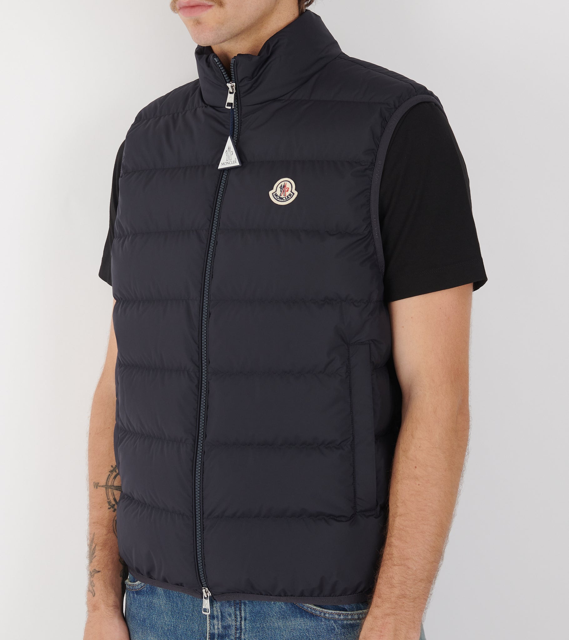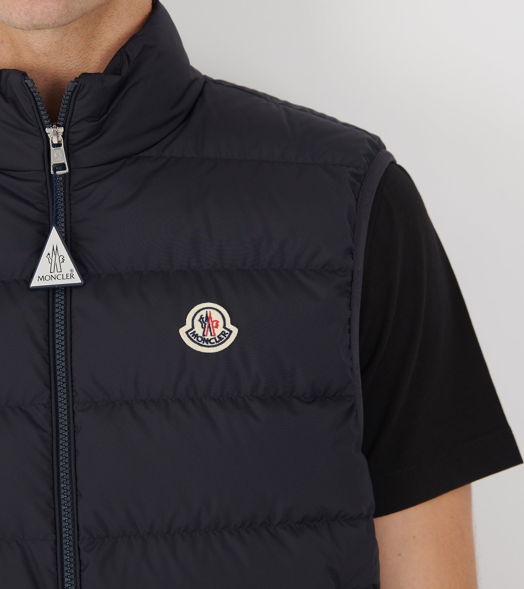 Mørk navy dunvest fra Moncler.