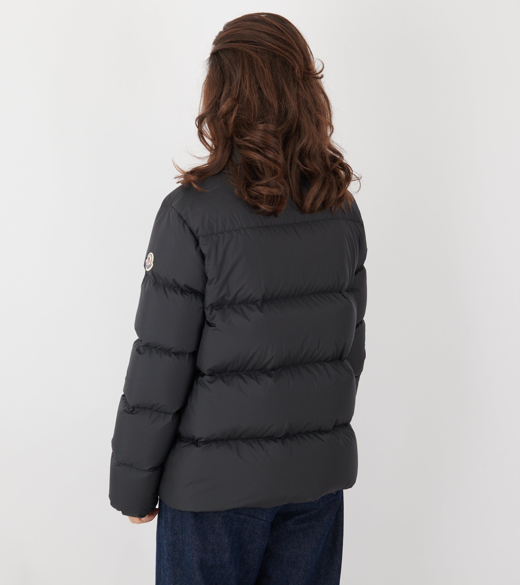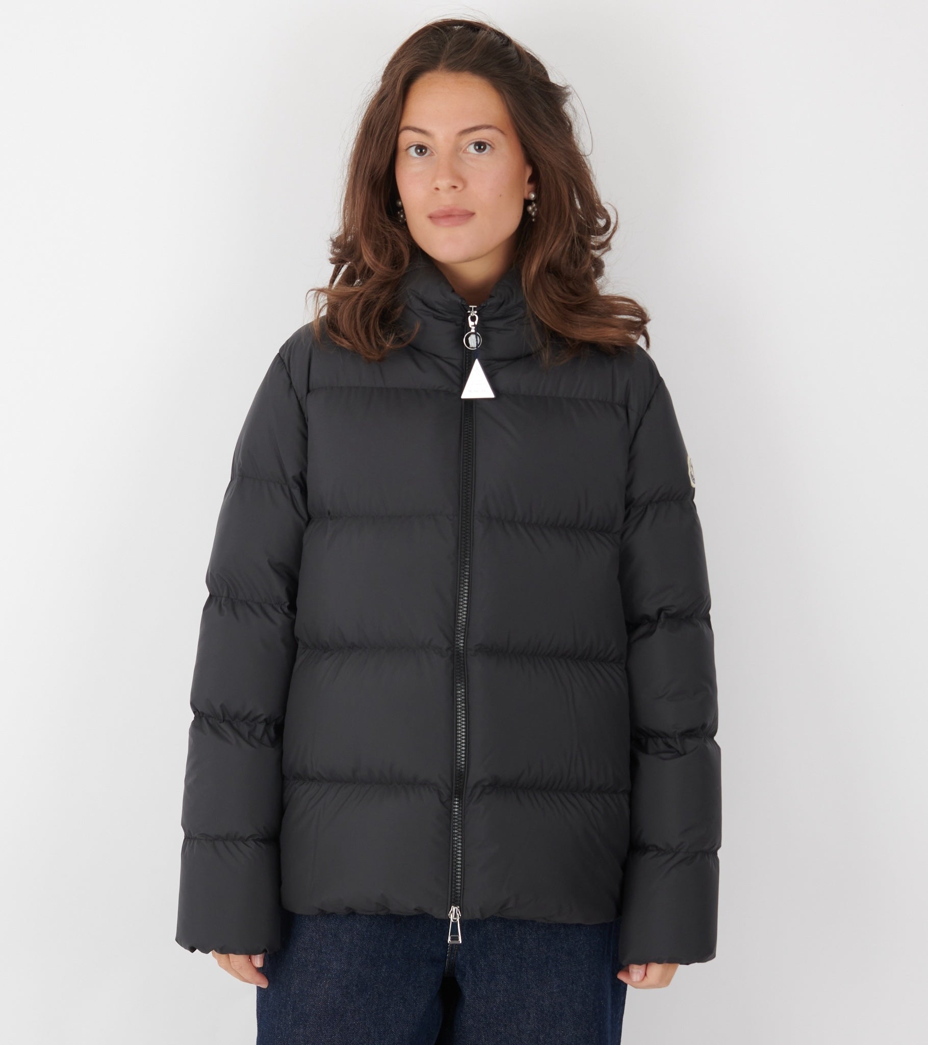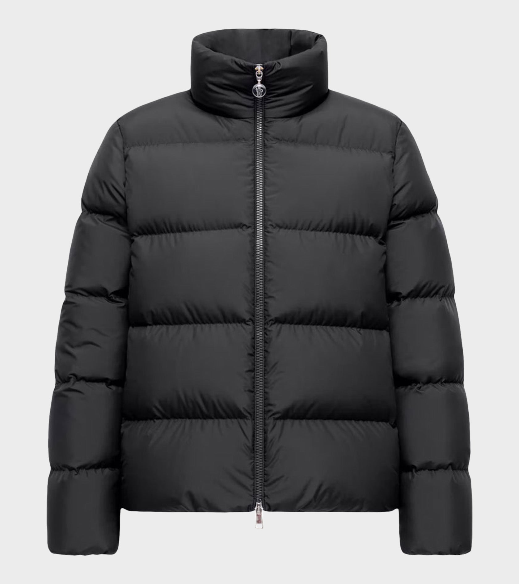 Sort dunjakke fra Moncler. Mauzun Down Jacket Black er fremstillet i genanvendt polyester med en mat finish og er foret med bløde dun og fjer. Jakken har en høj hals, en dobbeltgående lynlåslukning og en diskret lynlåslomme i hver side. På venstre ærme er det ikoniske logo i filt.