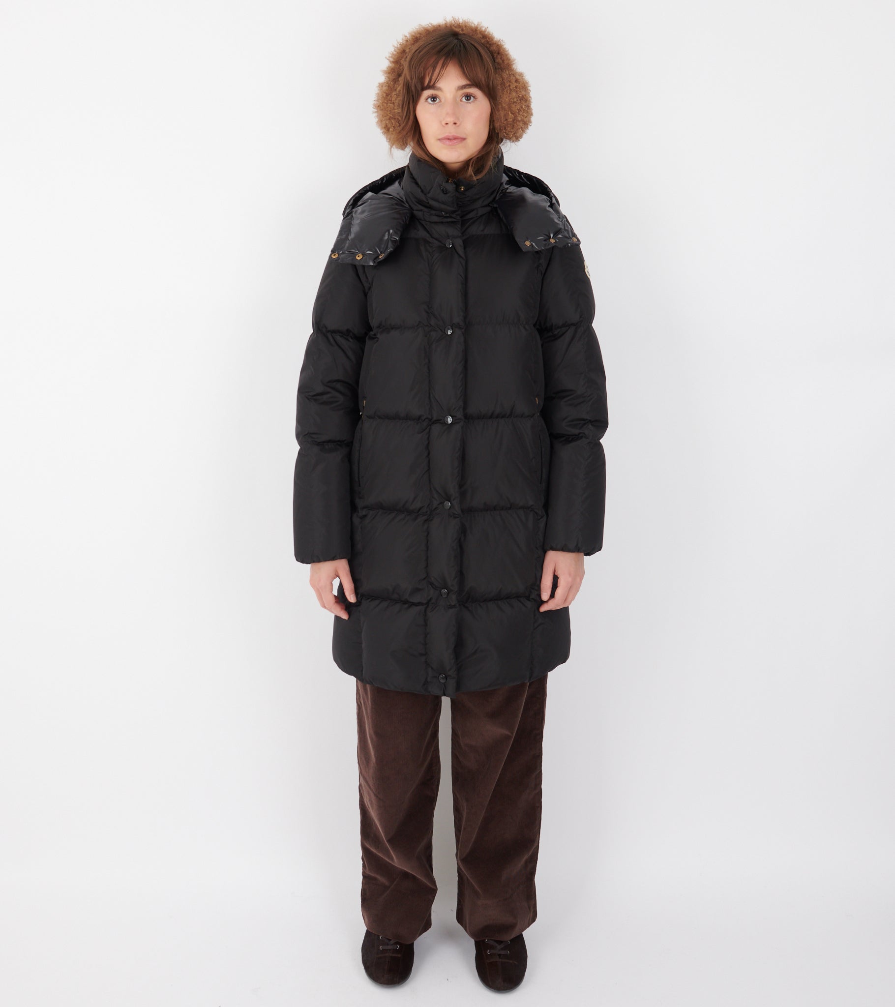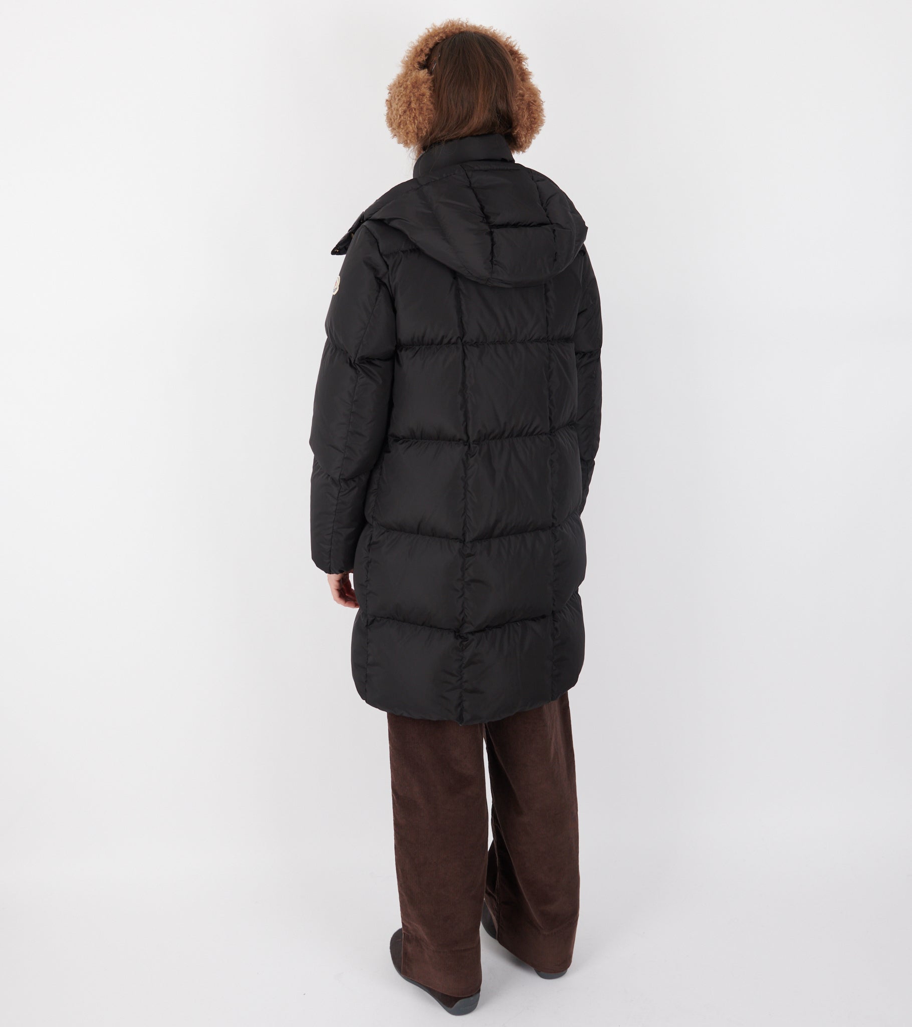 Mellemlang sort dunjakke fra Moncler.