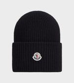Sort hue i uld fra Moncler. På fronten er det ikoniske logo i filt.