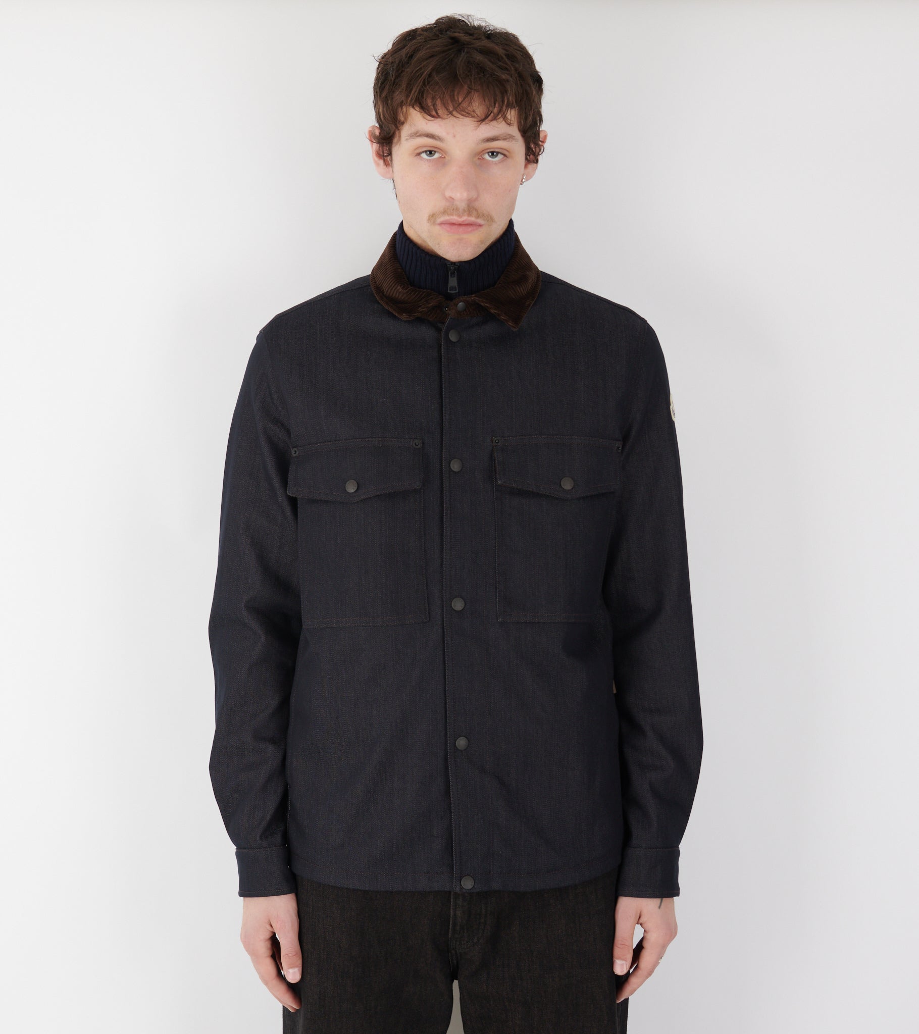 Denim Corduroy Trimmed Shirt Jacket Dark Blue