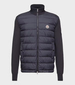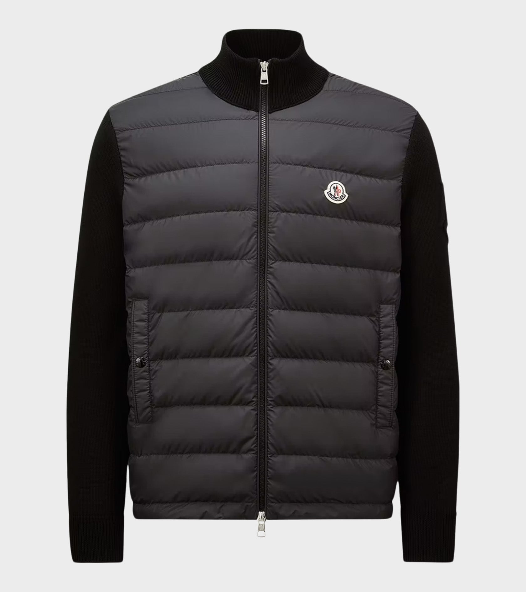 Sleeve Knit Logo Padded Zip-up Cardigan Black
