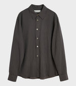 Pigment dyed skjorte i en burgundy/plum nuance fra Our Legacy. Skjorten er fremstillet i en let bomuldskvalitet og har en klassisk krave, let sænkede skuldre, læg på ryggen samt en knaplukning med brune perlemorsknapper på fronten. På fronten er et lille diskret broderet logo.