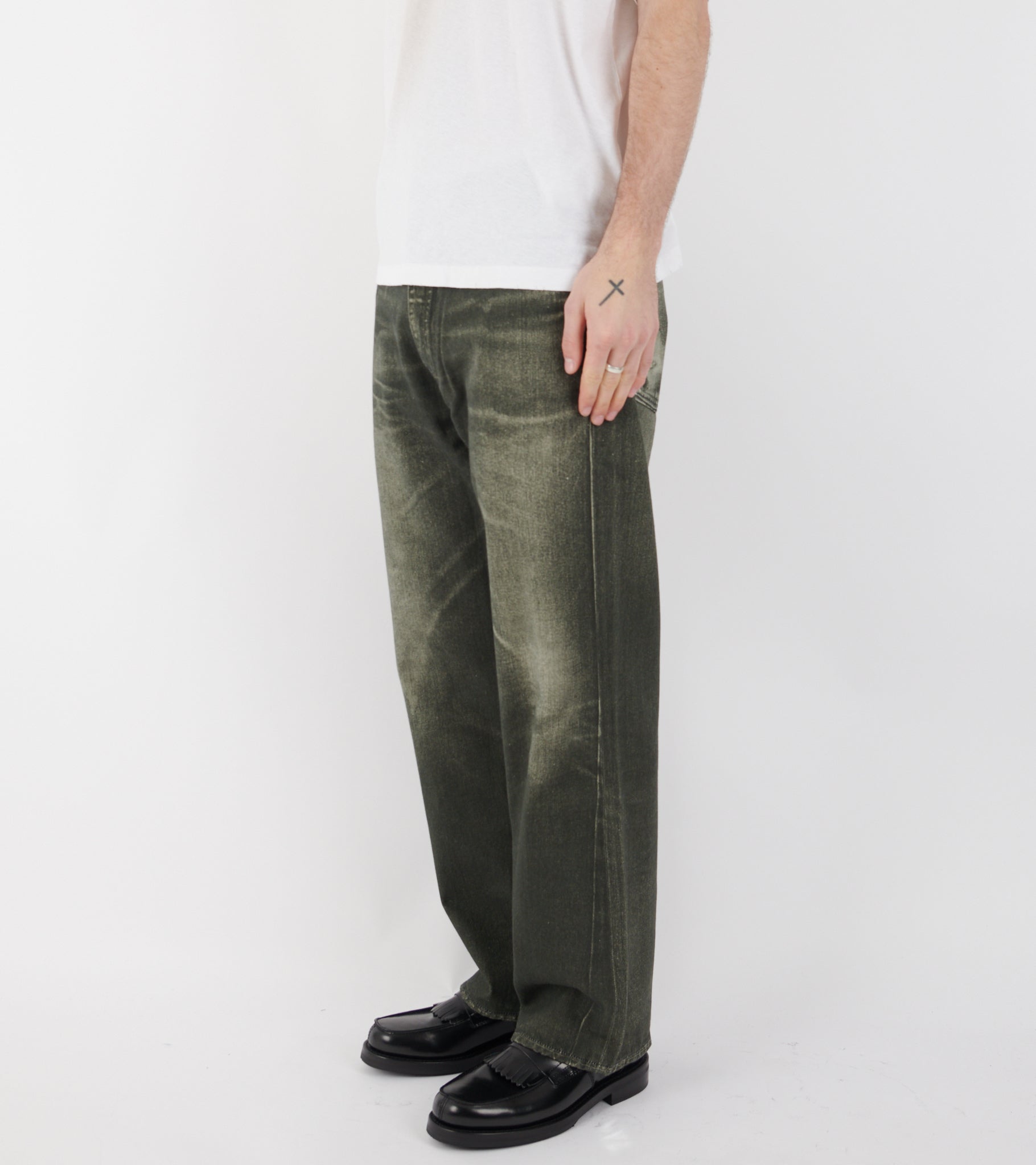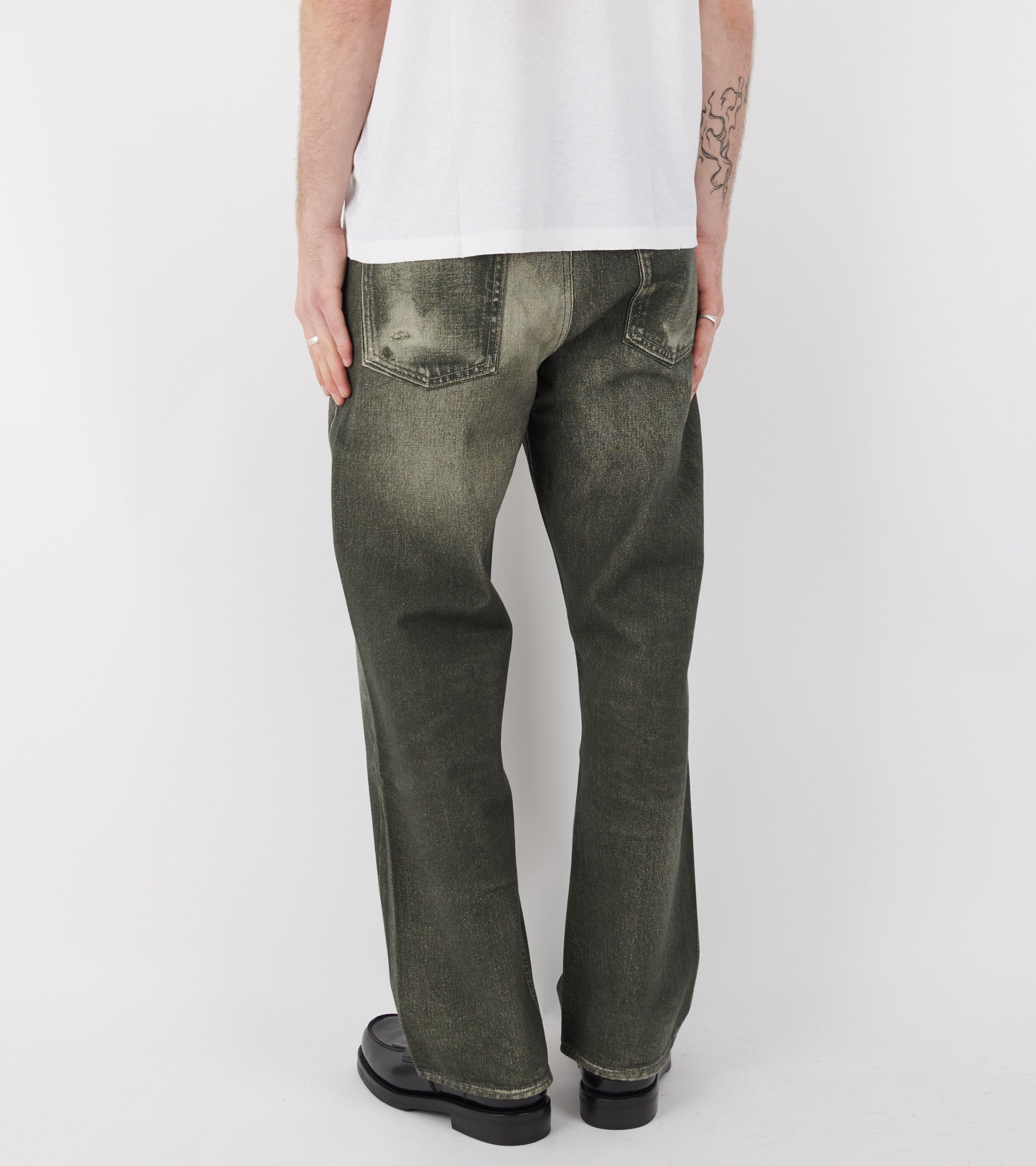 Jeans fra Our Legacy. Disse jeans har bæltestropper, tre skrålommer på fronten og to baglommer. Øverst bagpå er et logotag i gummi.