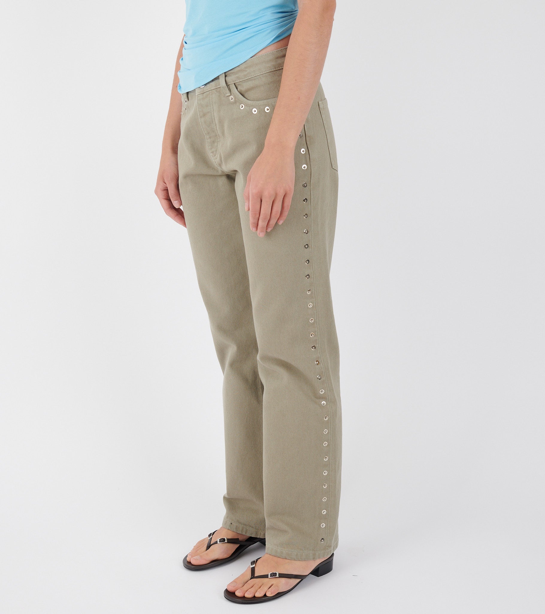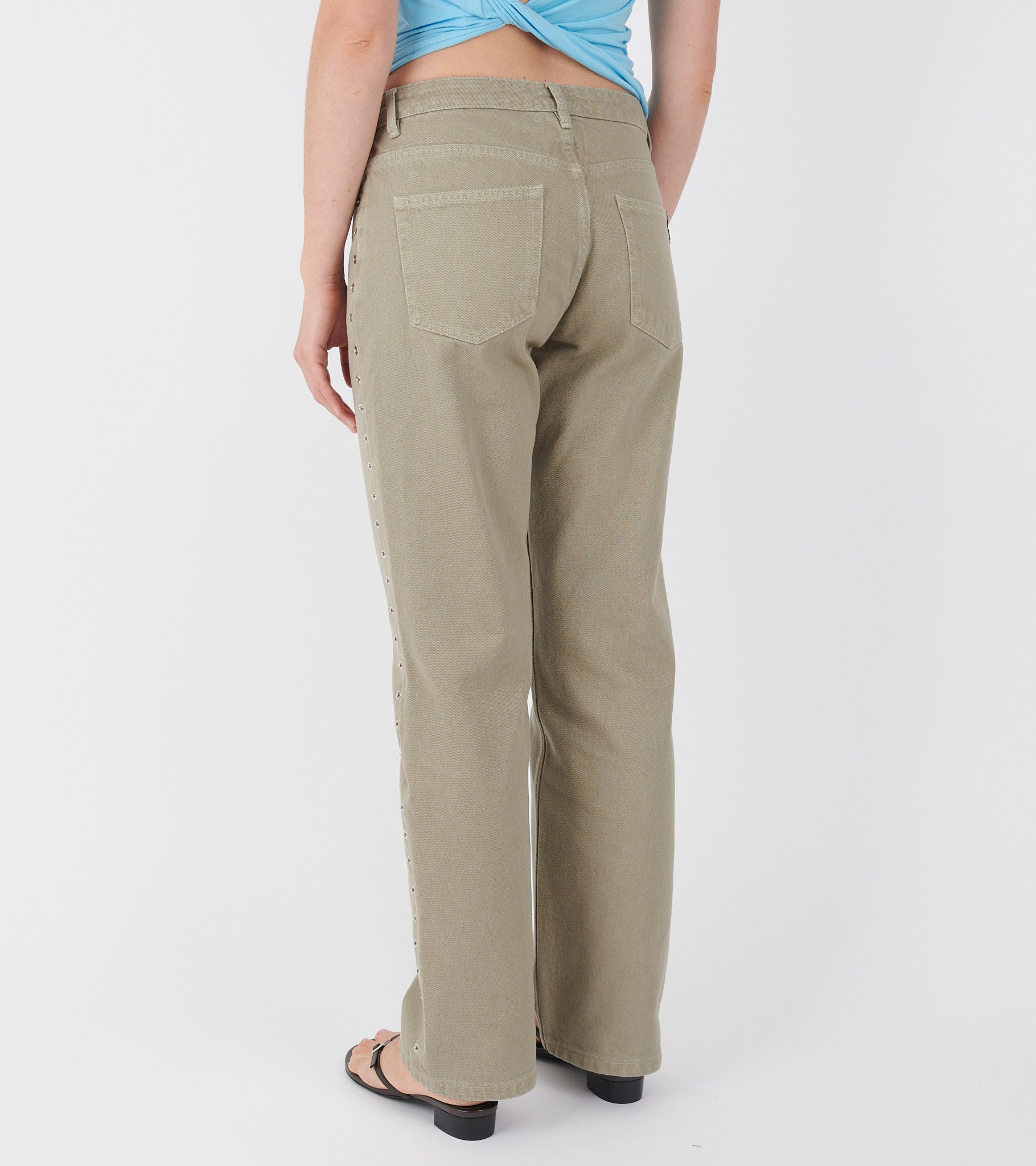 Grå denim jeans med nitter og lav talje fra Paloma Wool.