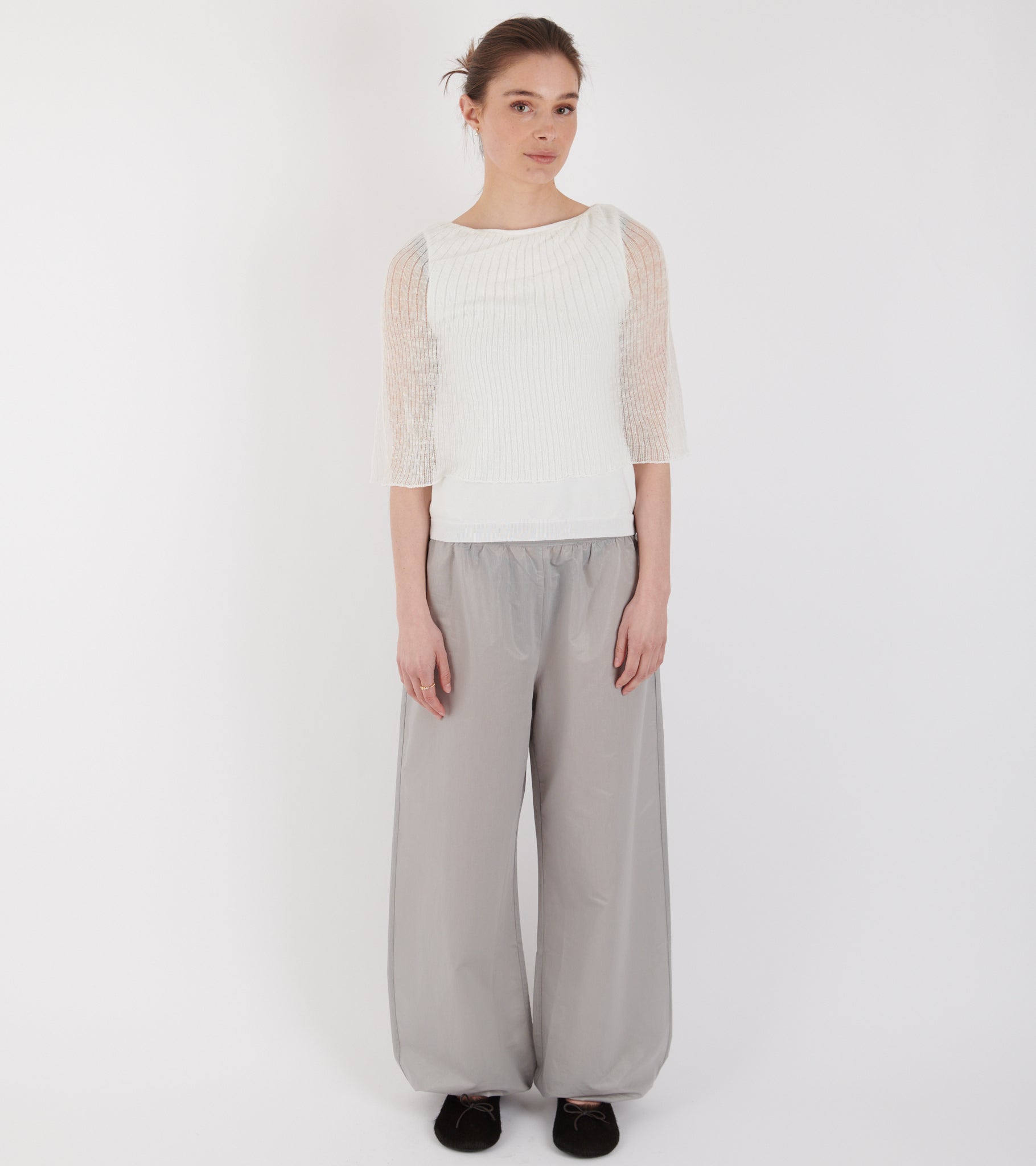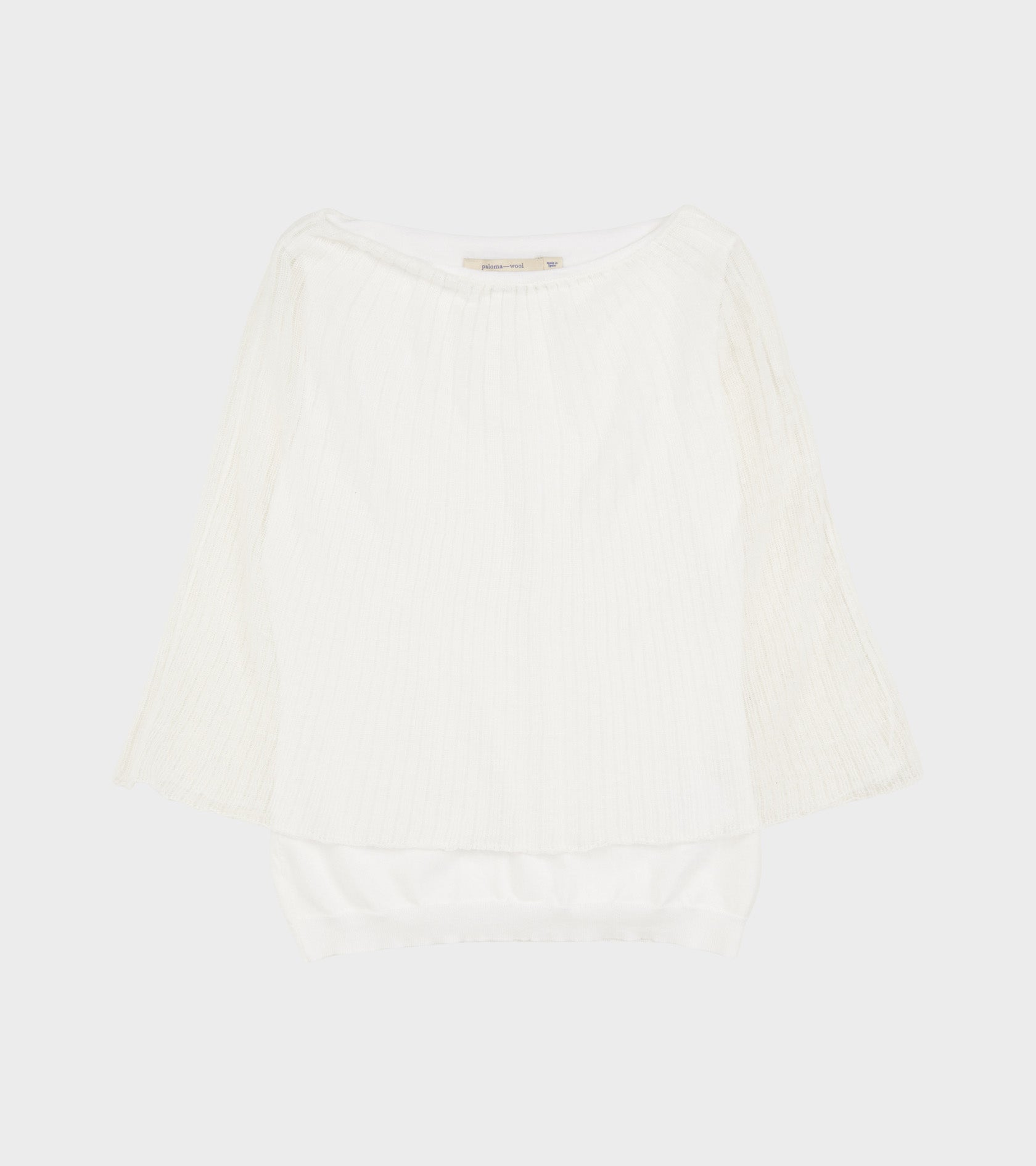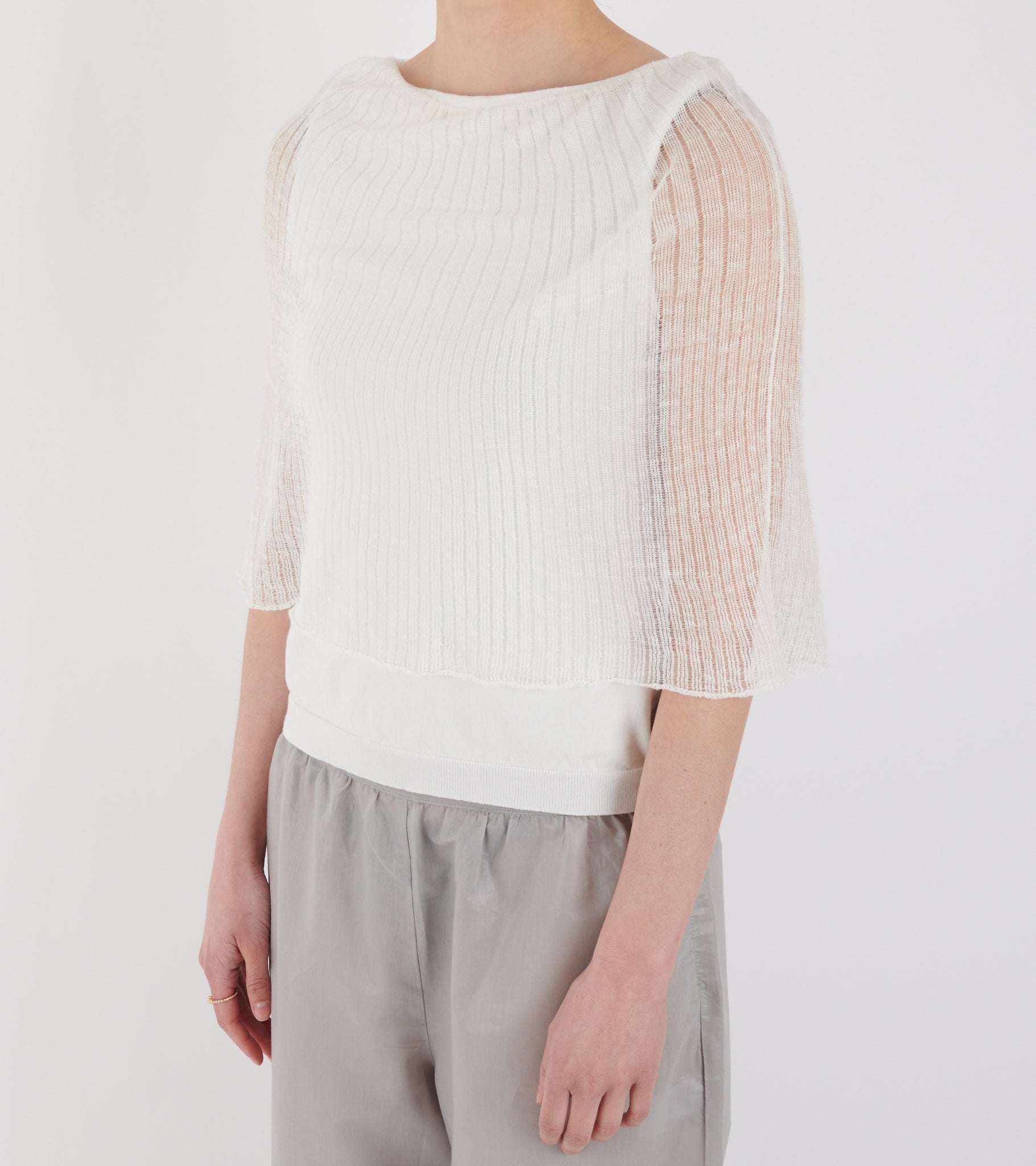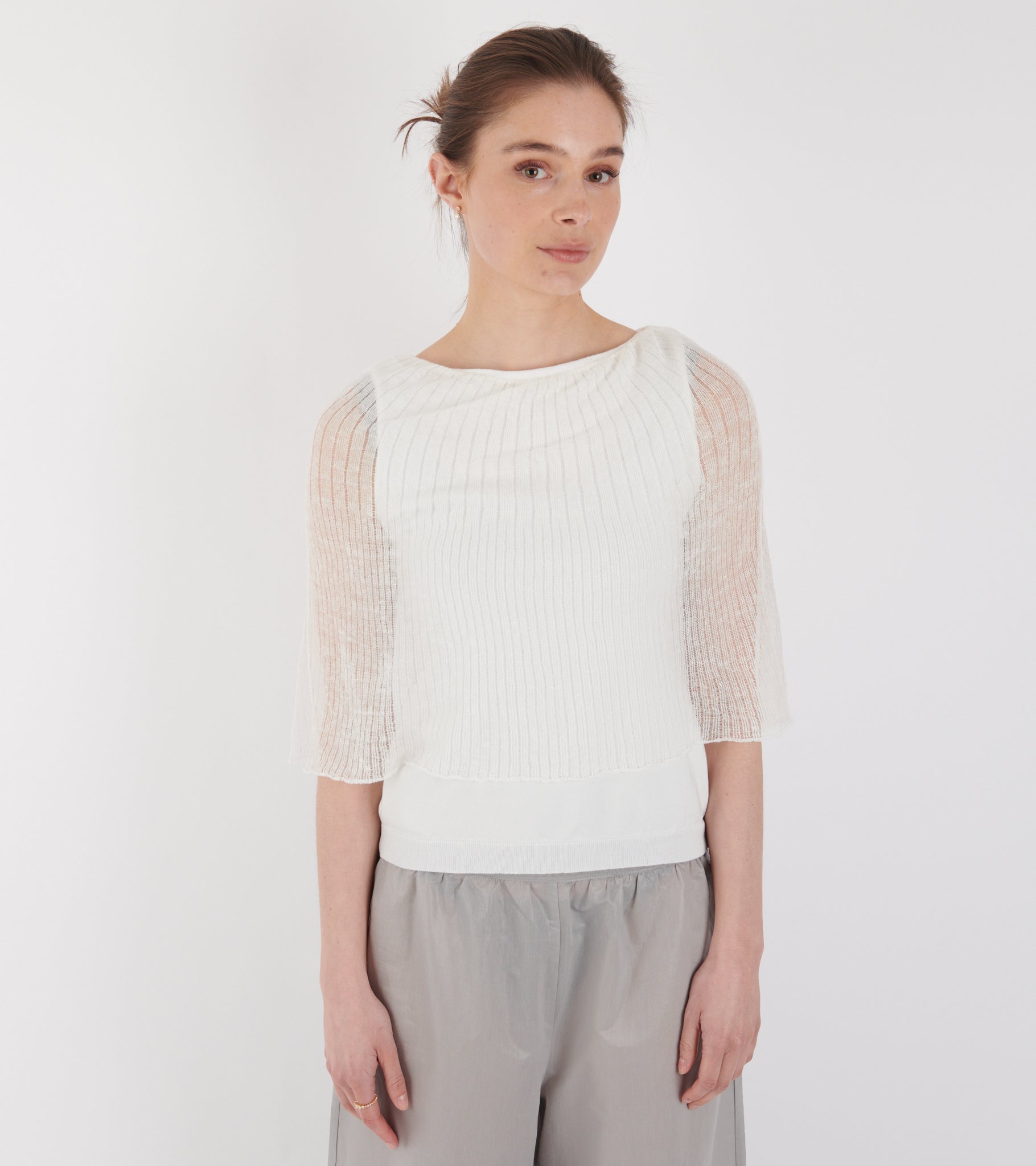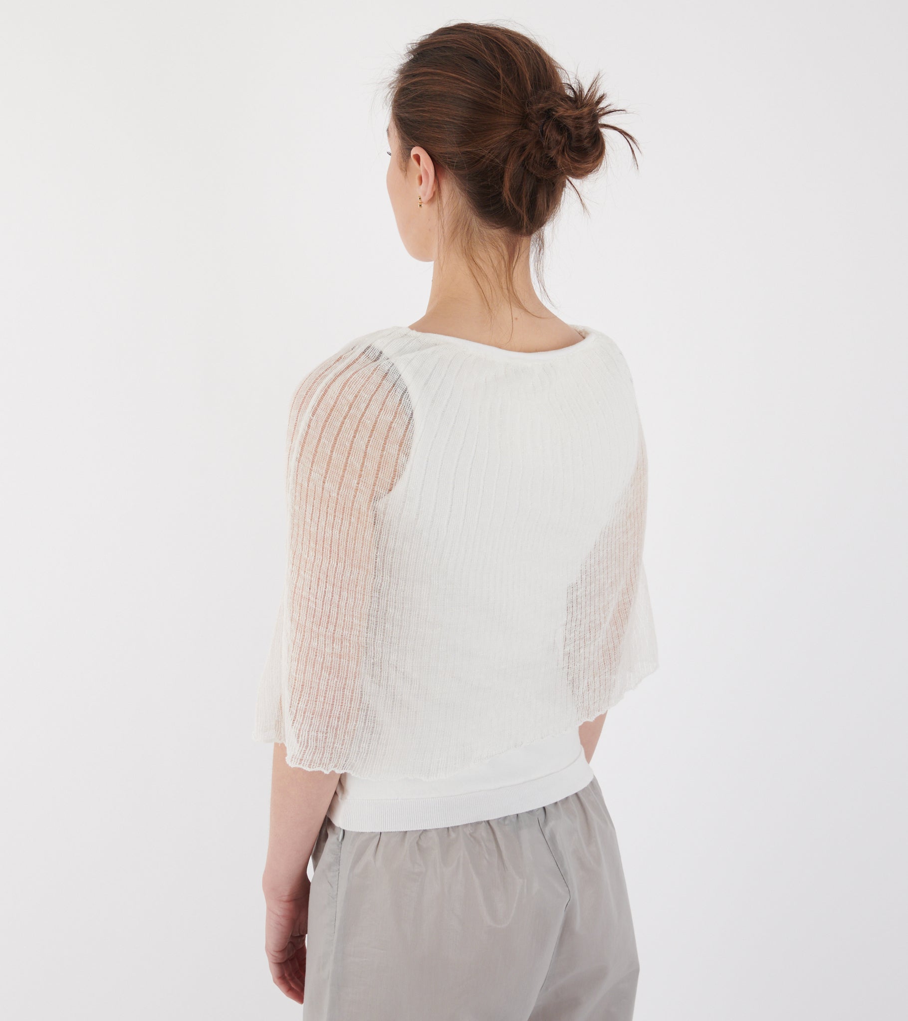 Råhvid top med sjal fra Paloma Wool. Toppen er fremstillet Mako-bomuldsgarn og sjalet er fremstillet i økologisk hamp.