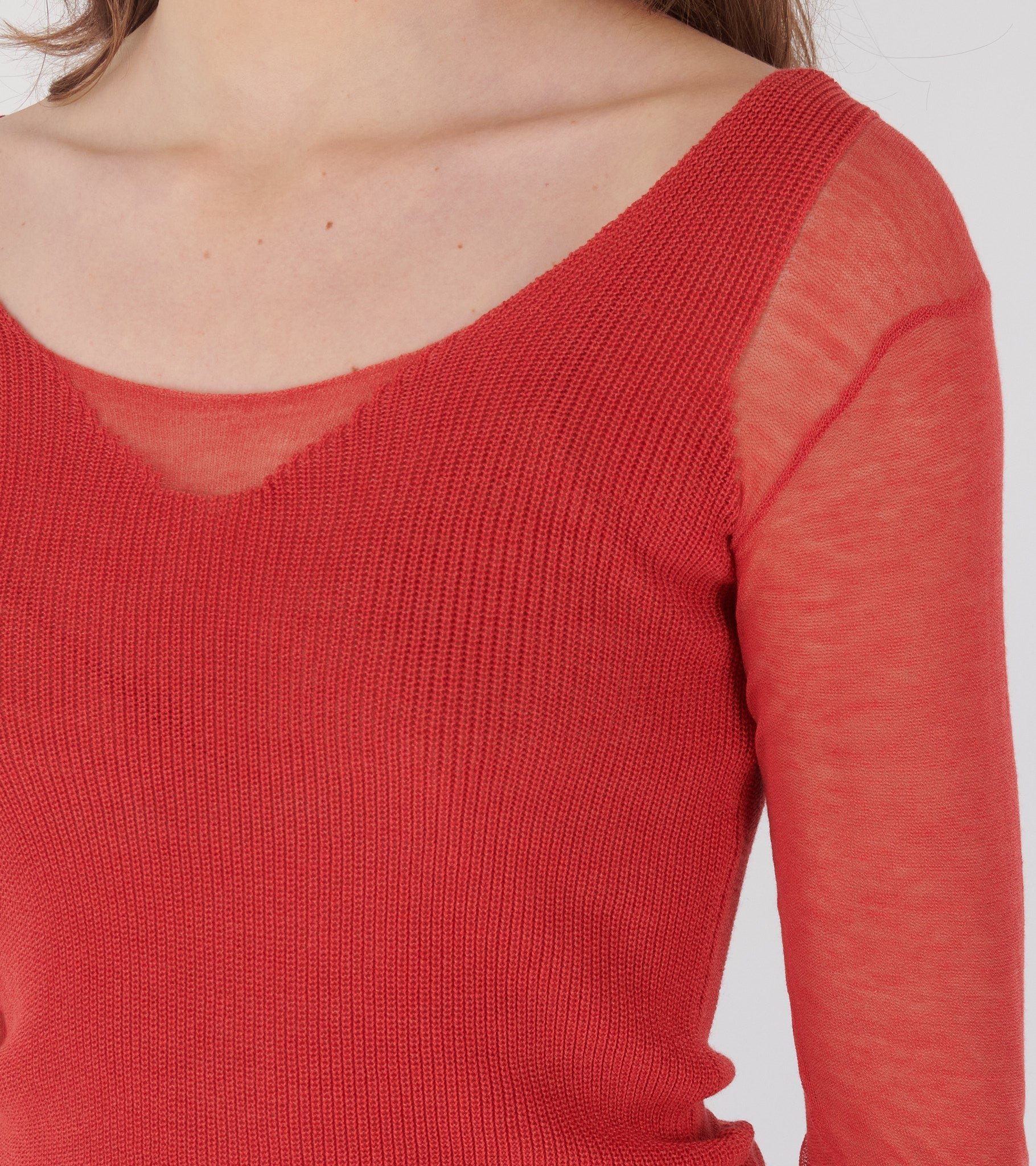 Rød bluse med dobbelt-lags effekt fra Paloma Wool.