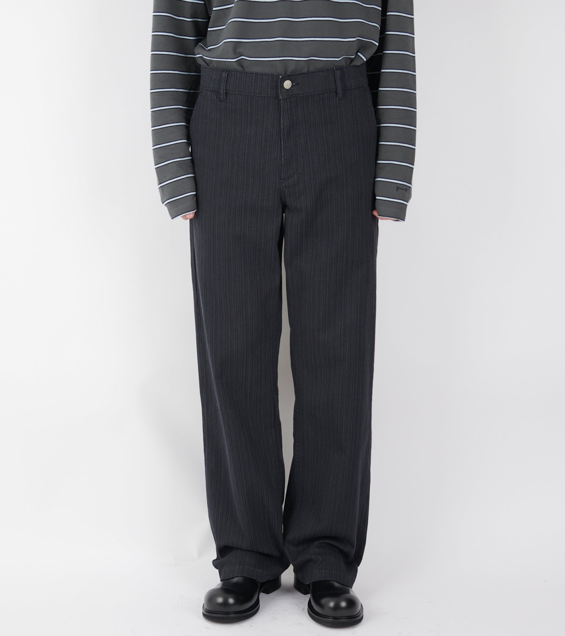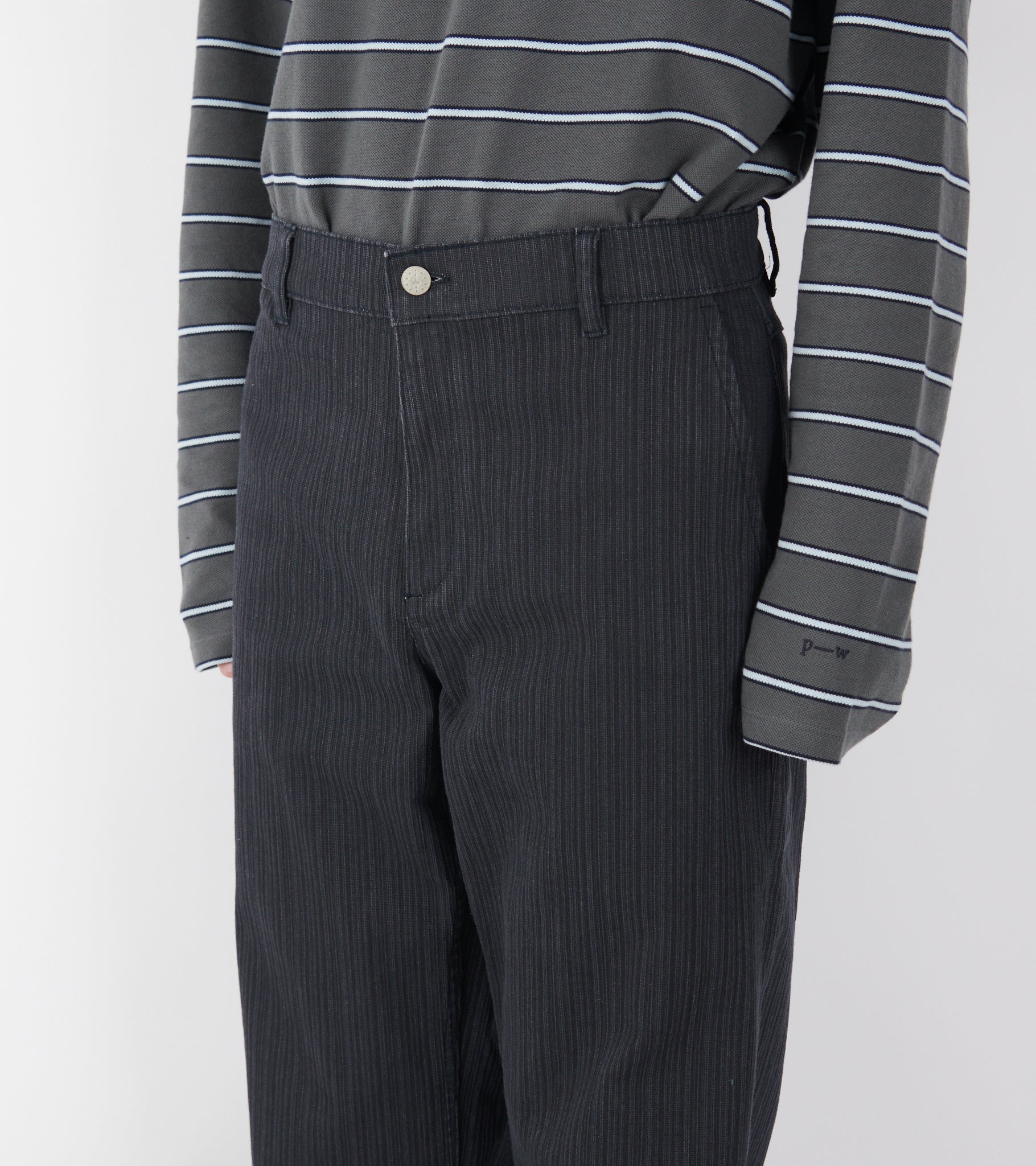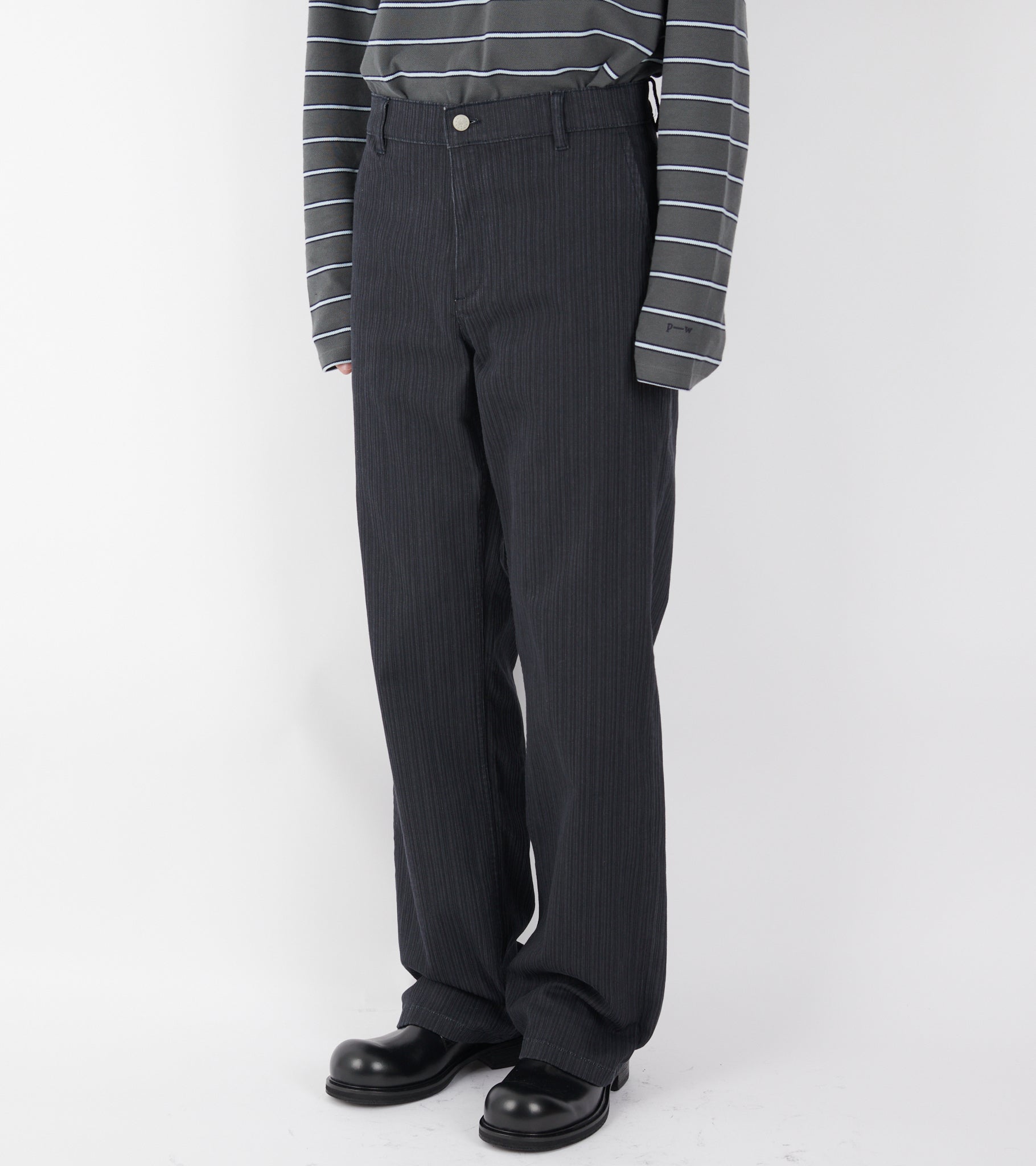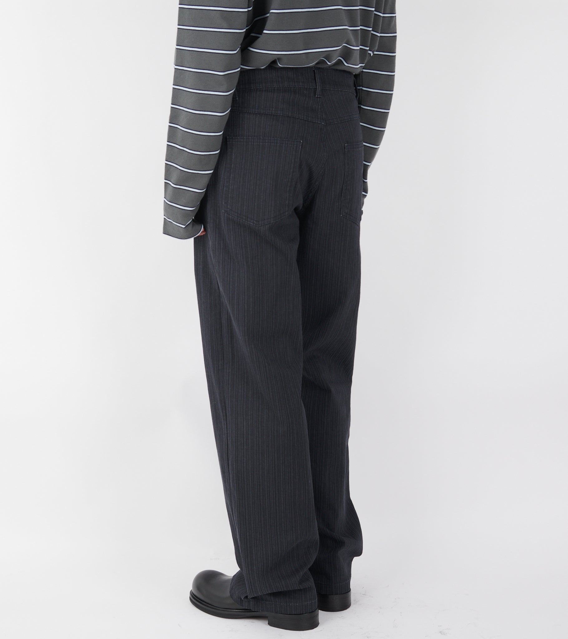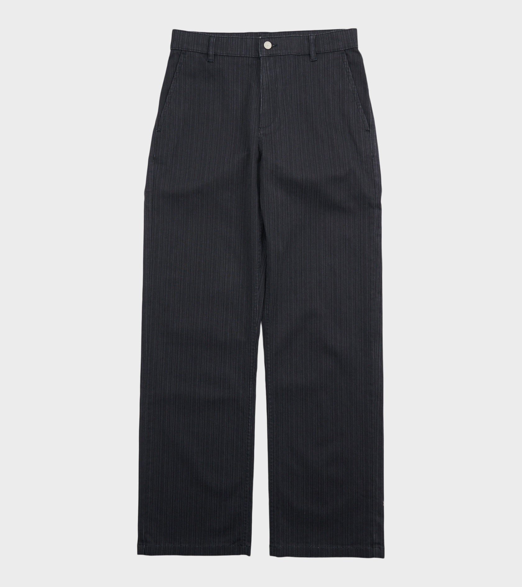 Mørkegrå stribede bukser fra Paloma Wool. Ensu Trousers har et klassisk five-pocket design, bæltestropper samt let brede lige ben.