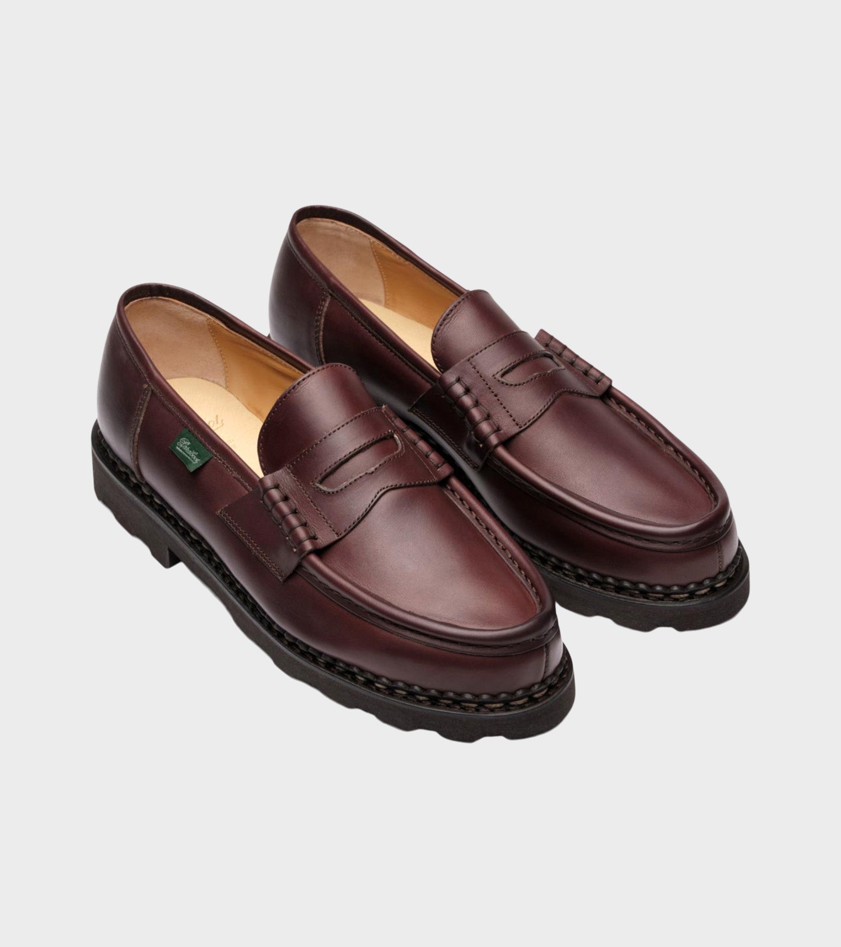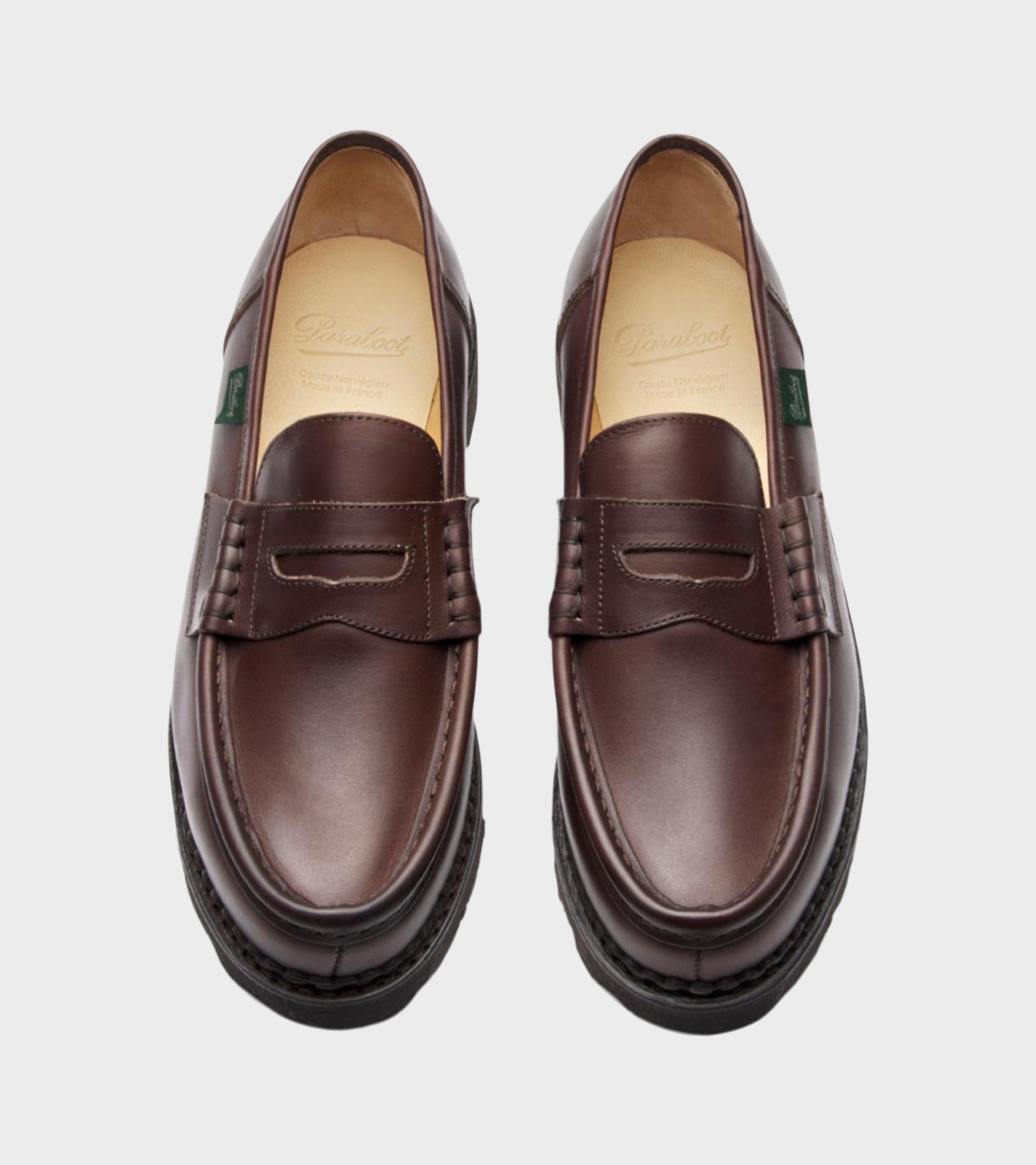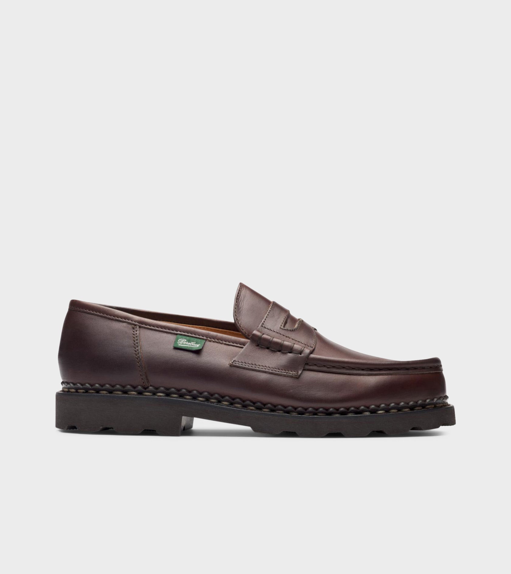 Reims Marche Marron Lis Café fra Paraboot. Disse sko er fremstillet i glat læder og har et lille grønt logotag på siden. Skoen er produceret i Frankrig og kommer med en dustbag.