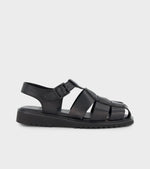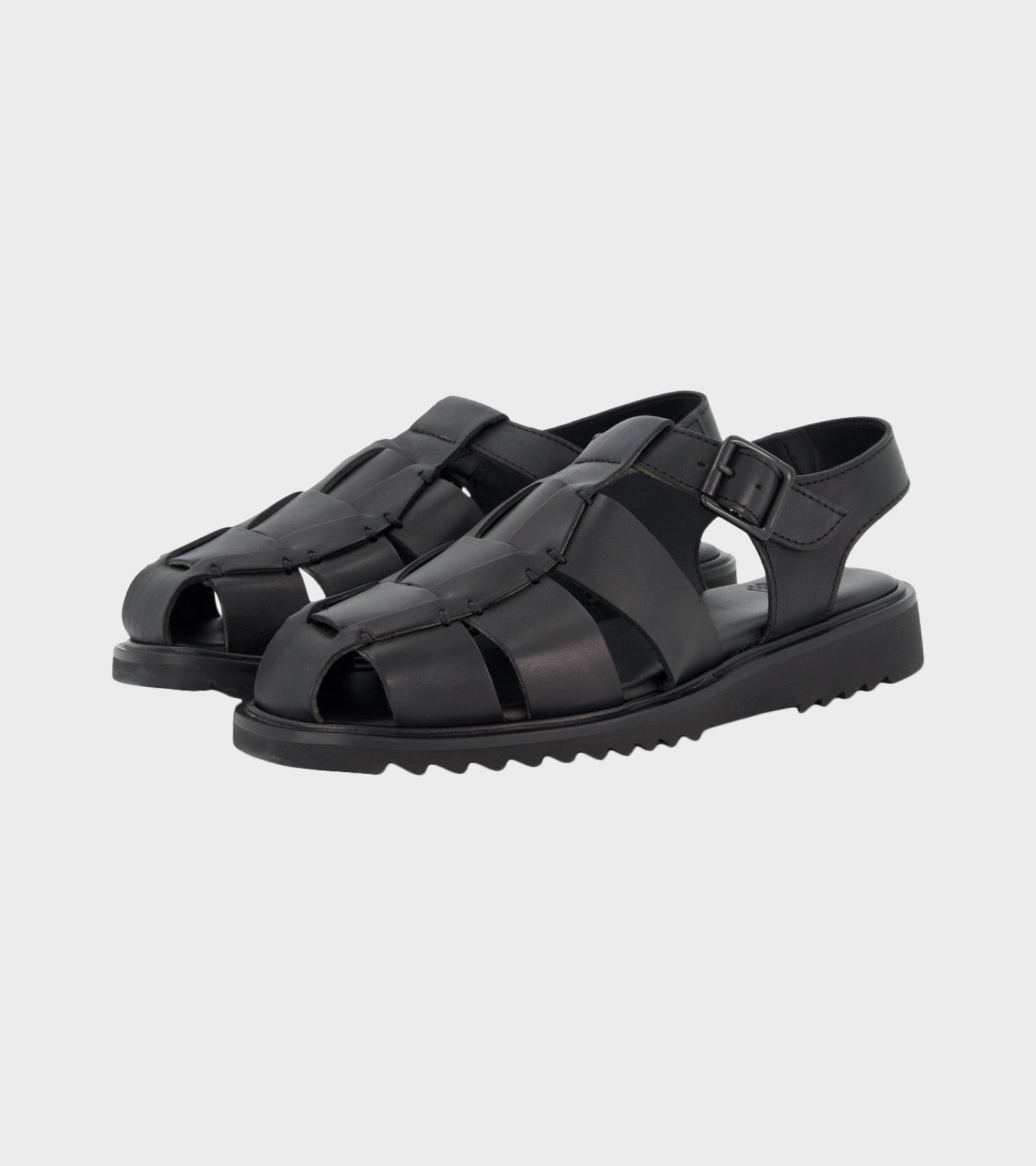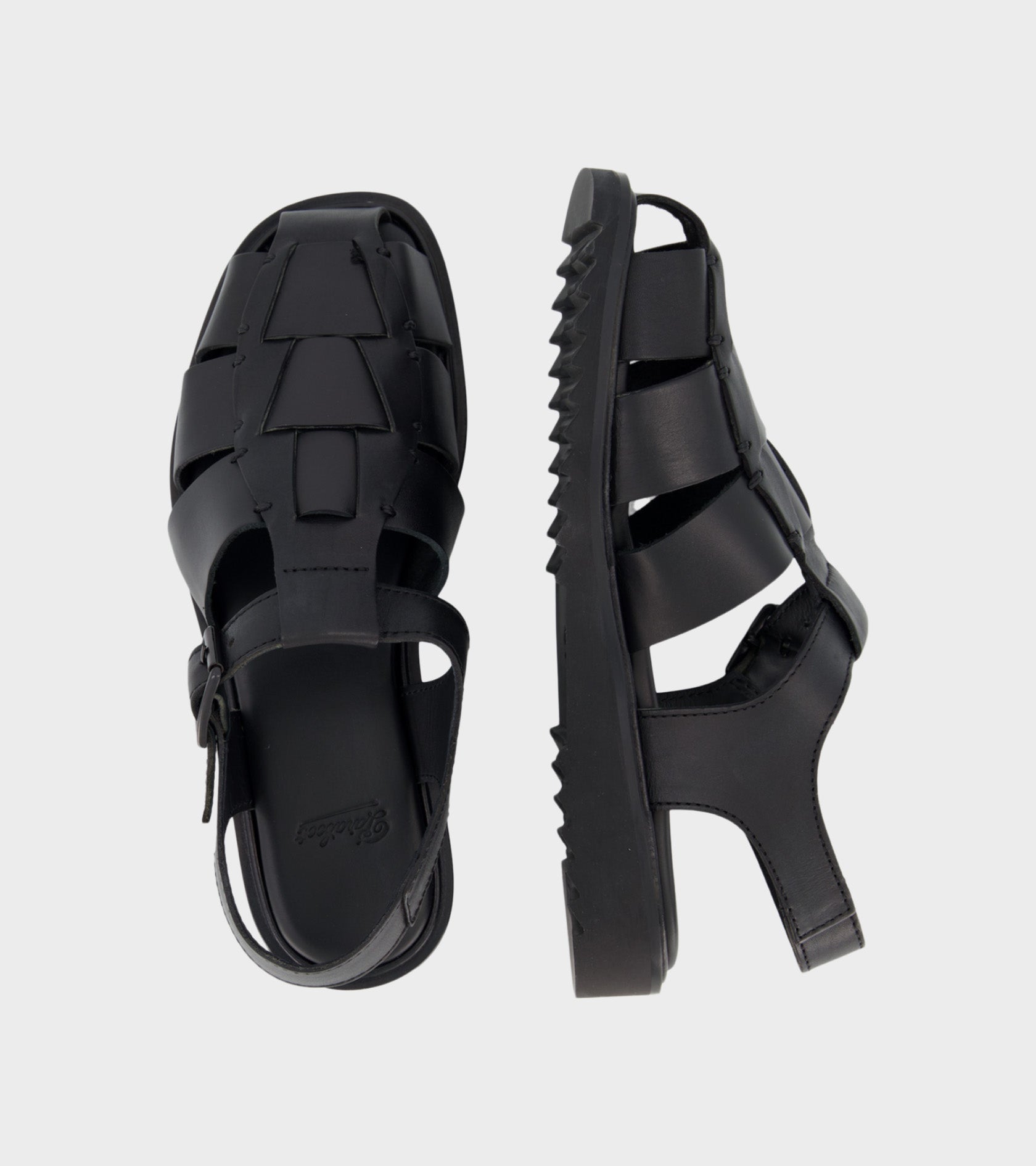 Santorin Sport Lis Noir fra Paraboot. Disse sandaler er fremstillet i glat læder og har en flettet overdel samt en spændelukning på siden. Skoen er produceret i Frankrig og kommer med en dustbag.