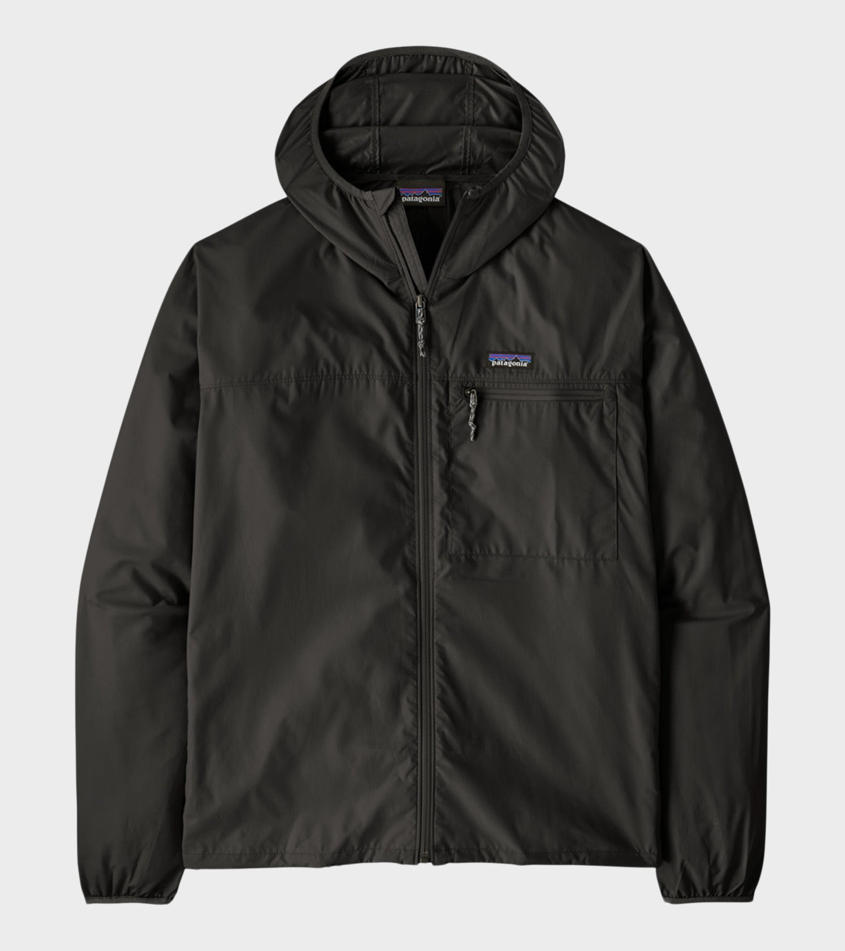 Vindtæt jakke i genanvendt polyester fra Patagonia. Jakken har en klassisk hætte, en lynlåslukning, en brystlomme samt en skrålomme i hver side. Over brystlommen er et logo.