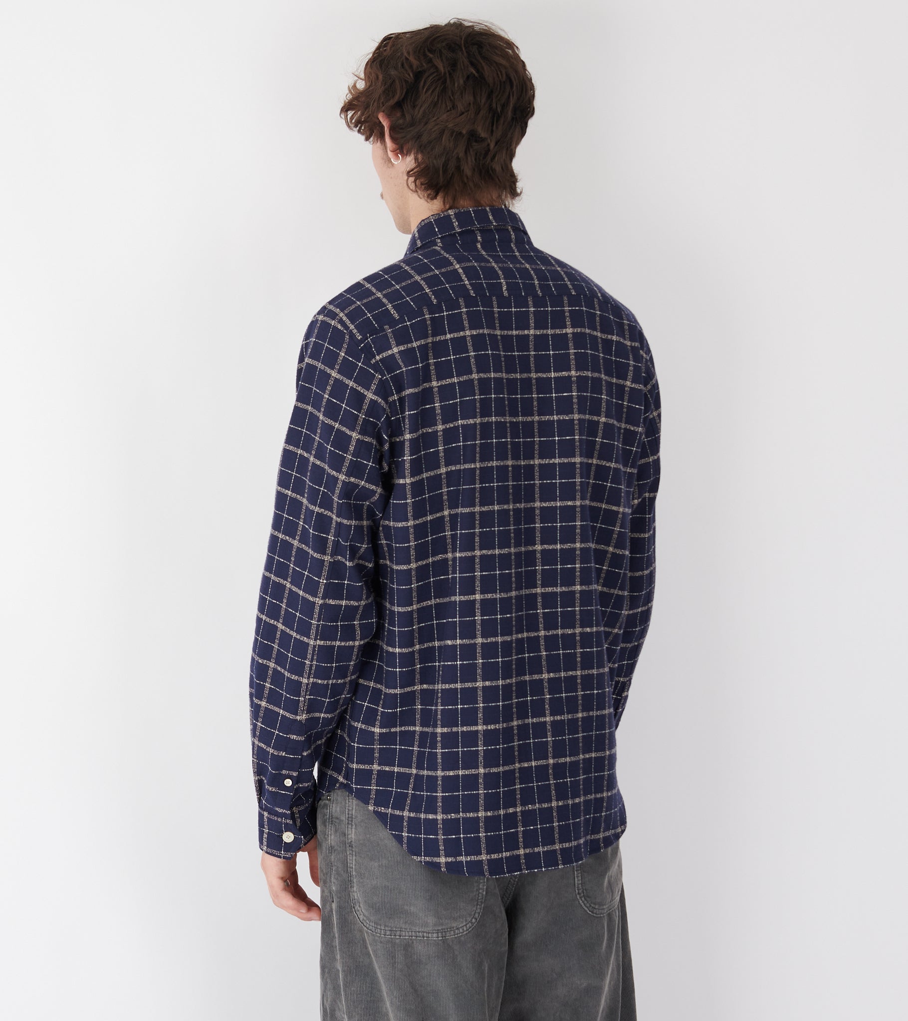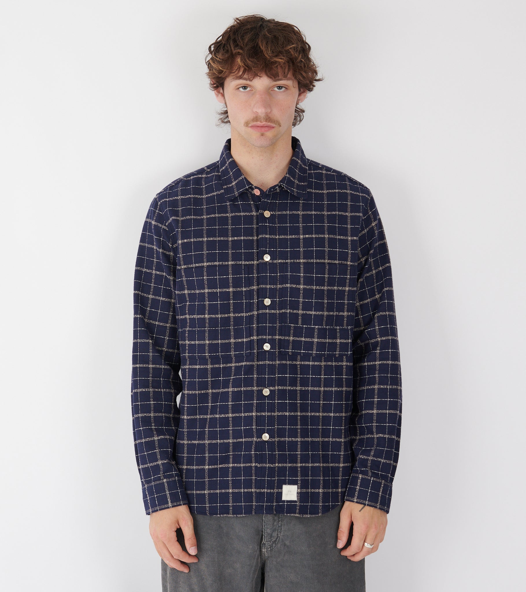Cotton Crepe Check Overshirt Navy