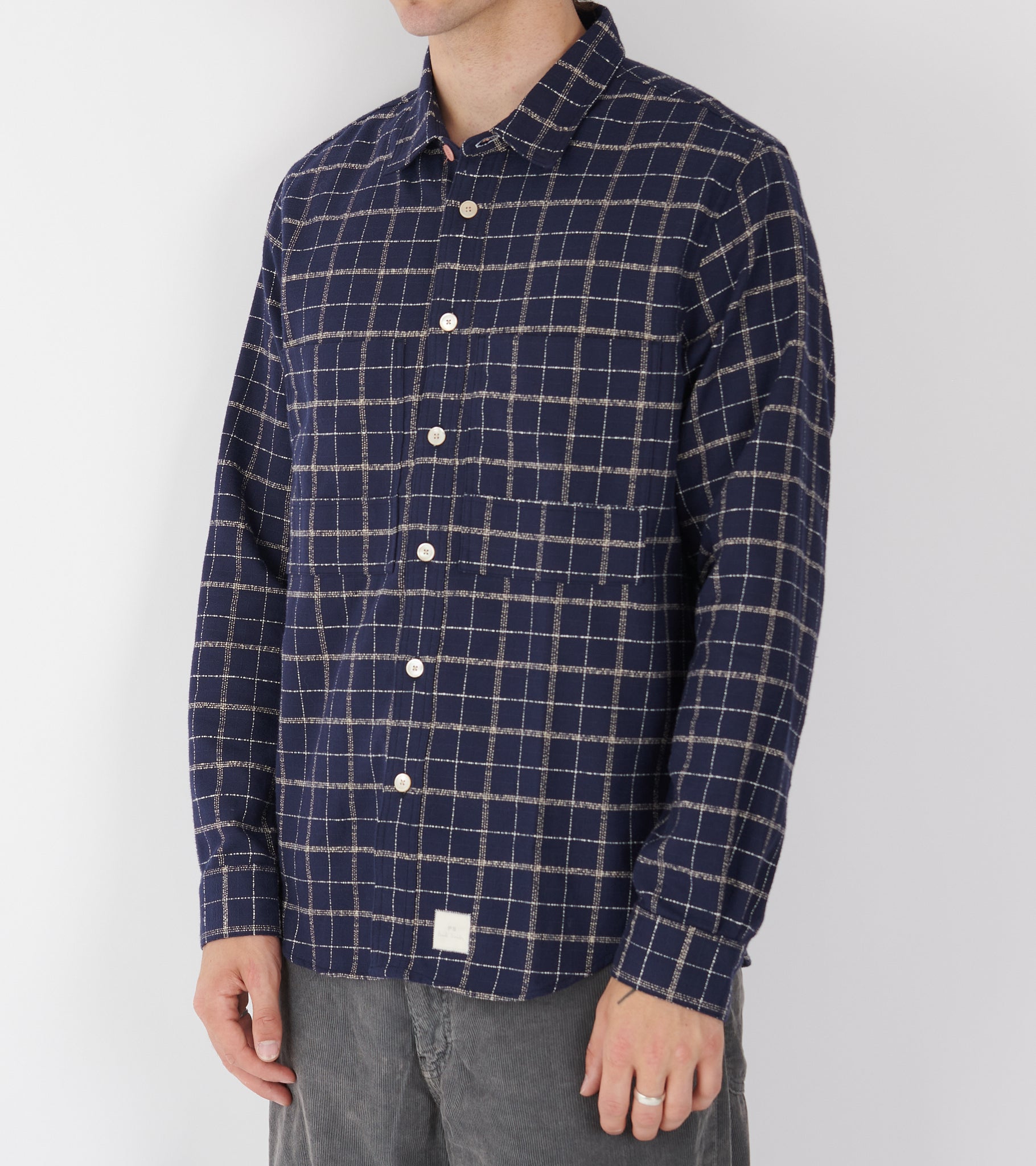 Navy ternet skjorte i bomuldscrepe fra Paul Smith.