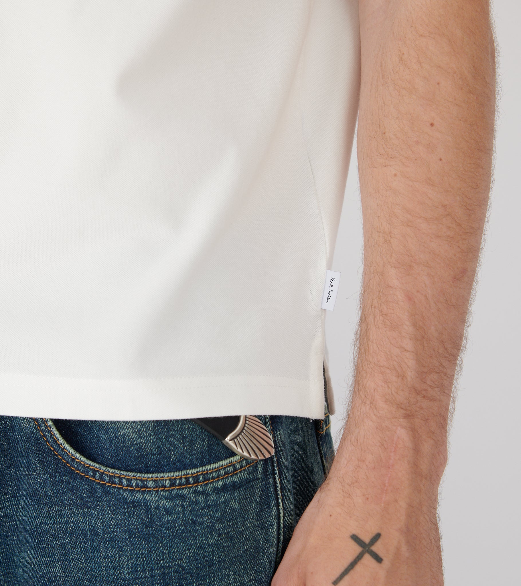 Hvid kortærmet polo i økologisk bomuldspiqué fra Paul Smith.