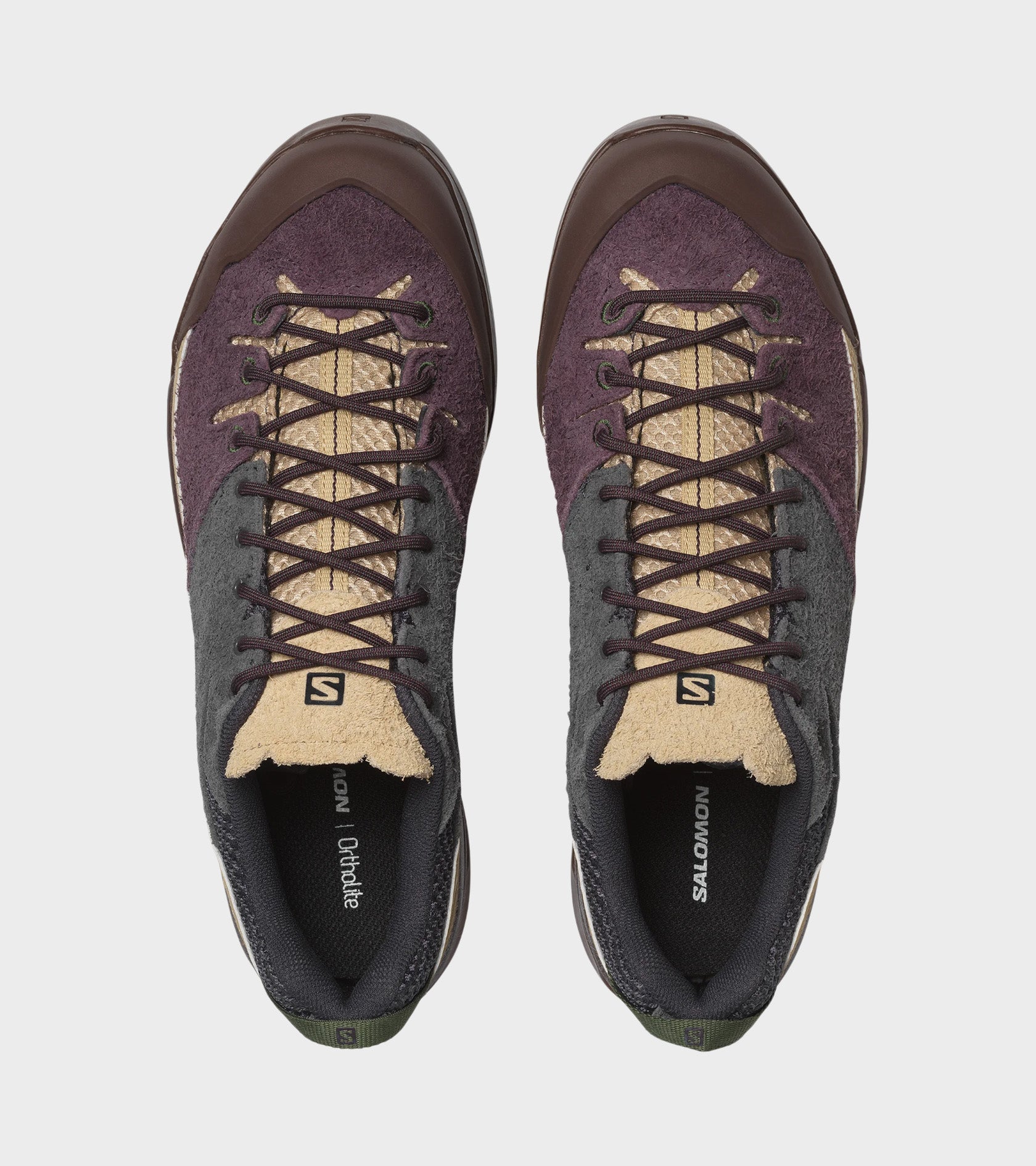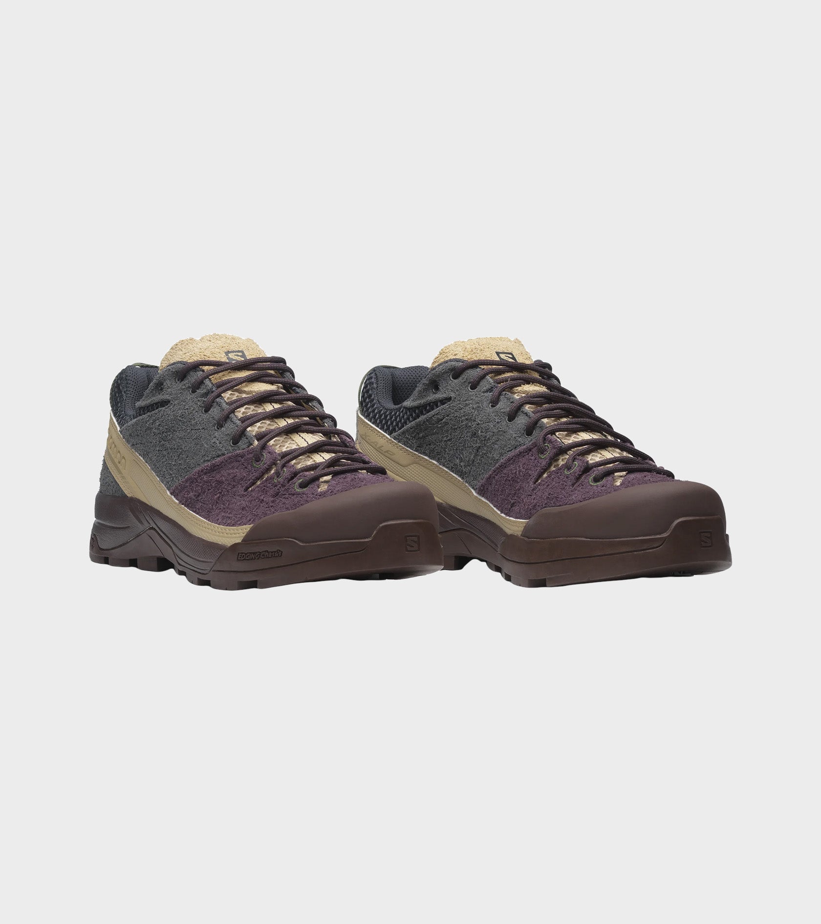 X-ALP Suede fra Salomon i en plum-lilla, mørkegrå, beige og mørkebrun farvekombination.